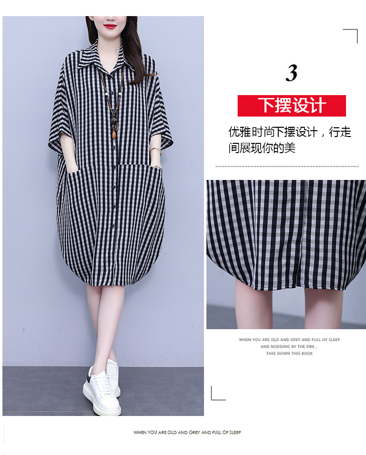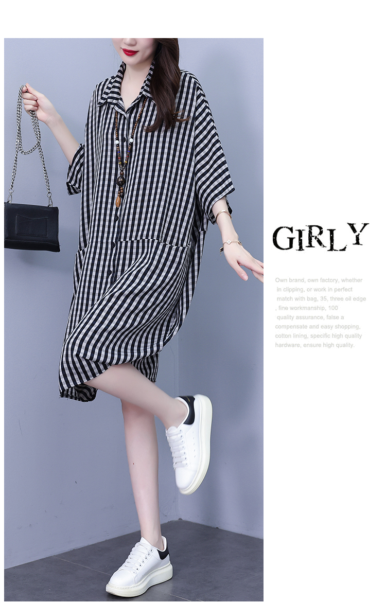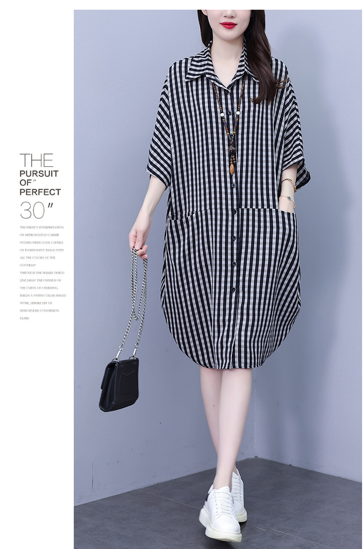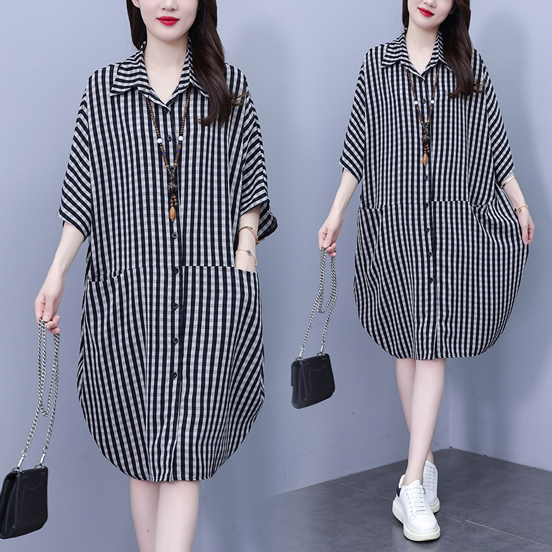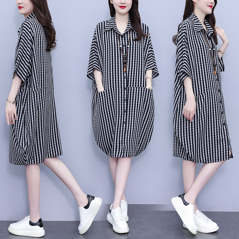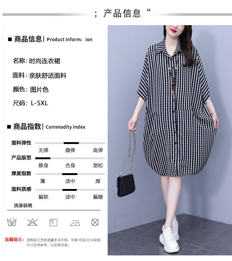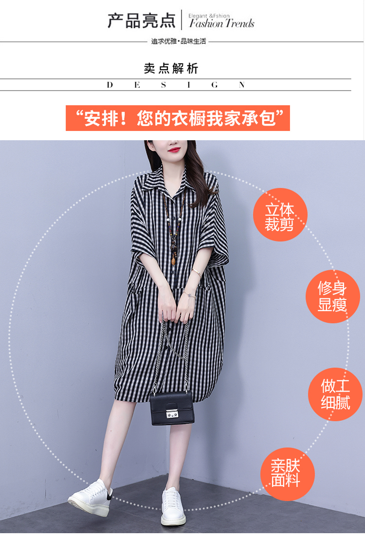 MY14114#夏季新款韩版胖MM大码POLO领遮肉衬衫中长休闲宽松连衣裙