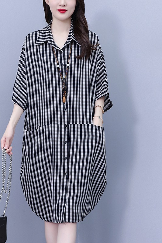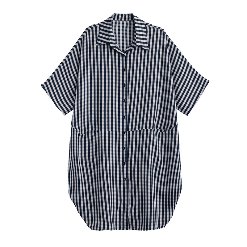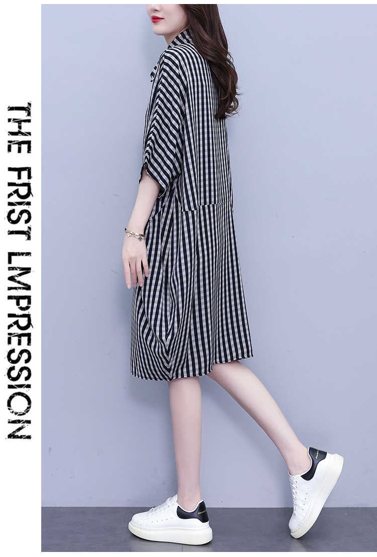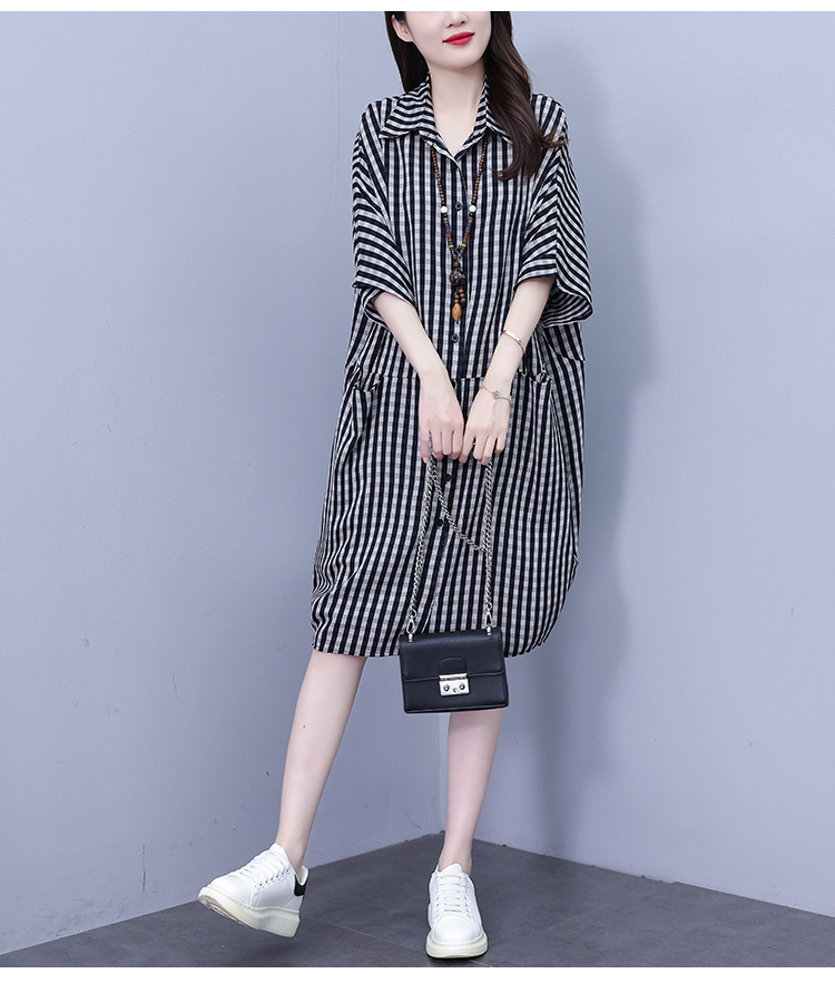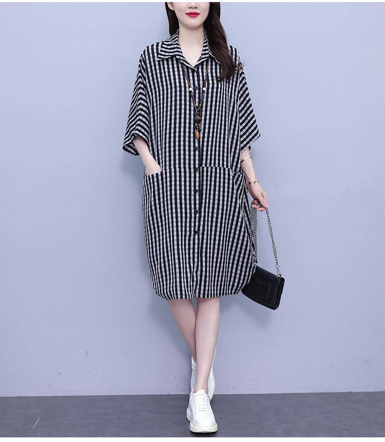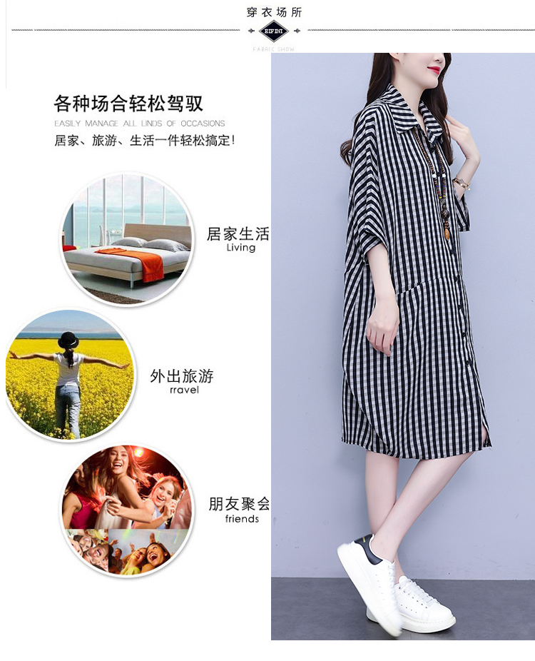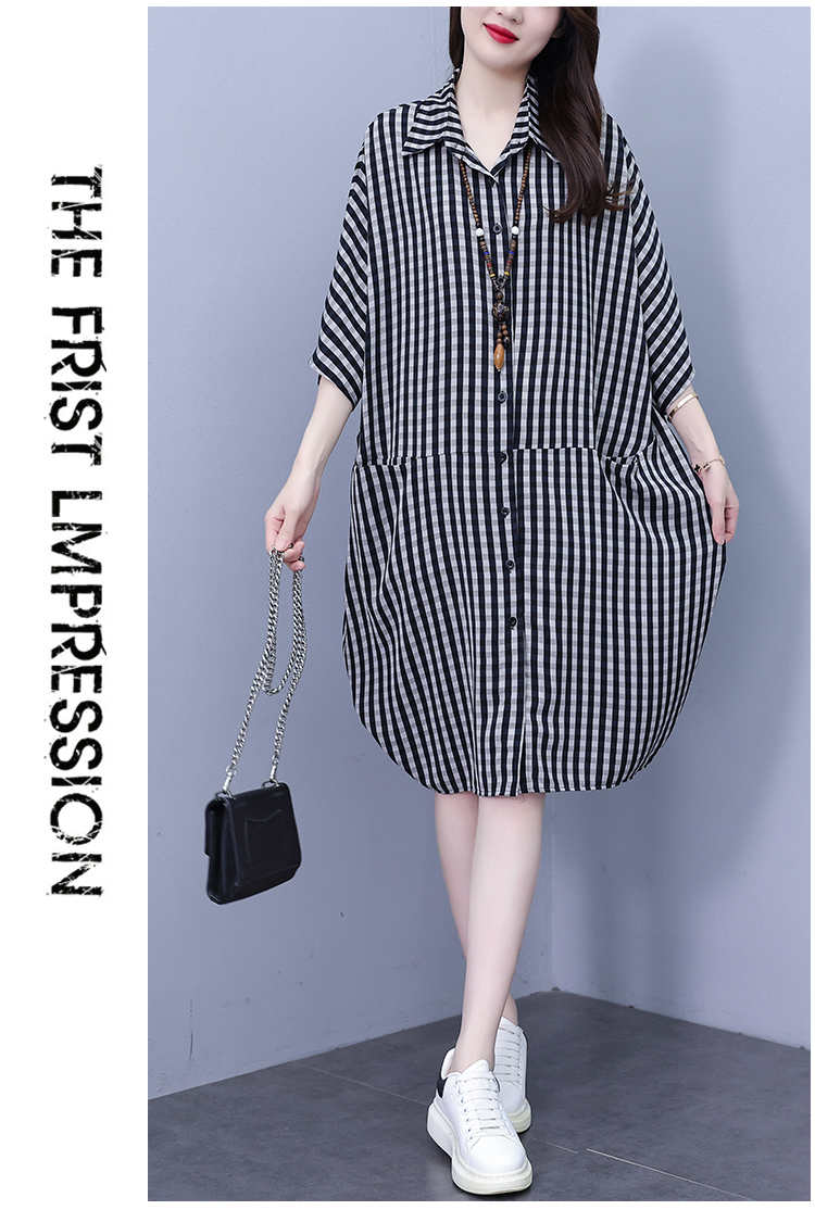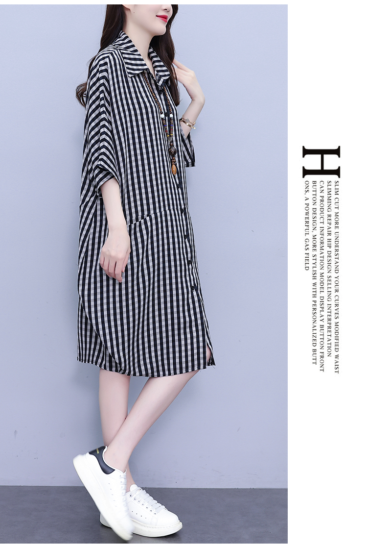 MY14114#夏季新款韩版胖MM大码POLO领遮肉衬衫中长休闲宽松连衣裙