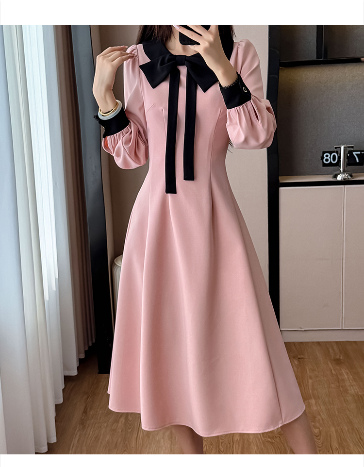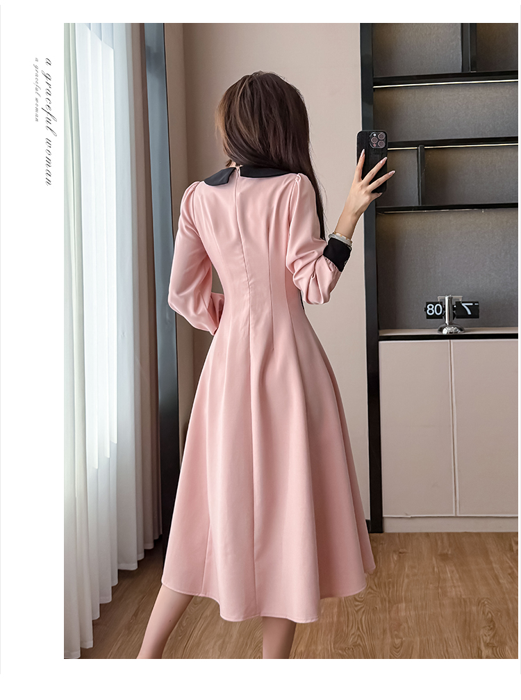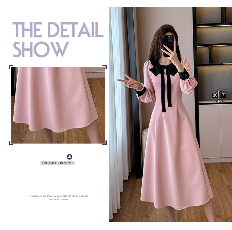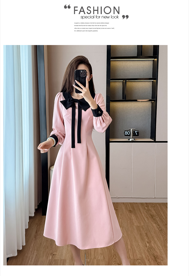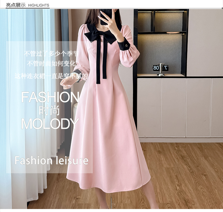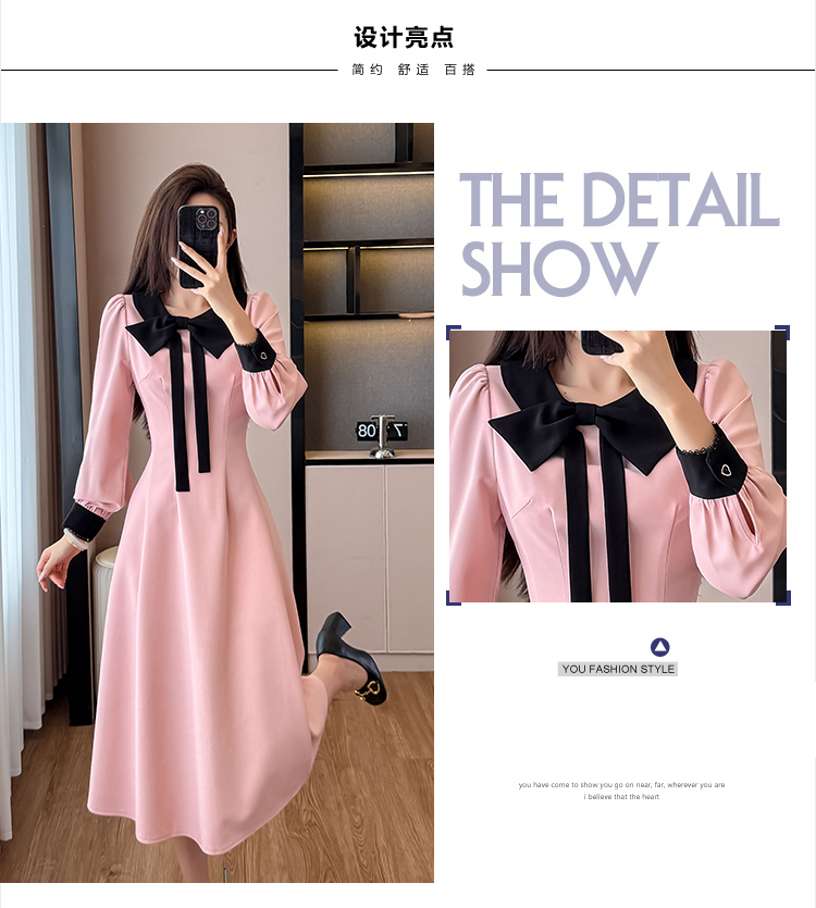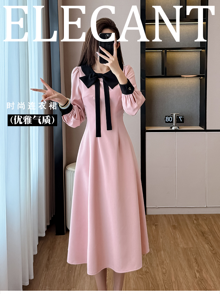 MY14139# 法式富家千金粉色长袖连衣裙设计感小众收腰甜美裙子女裝貨源服裝批發