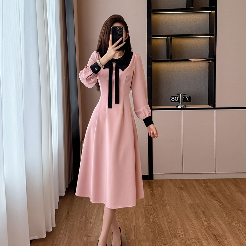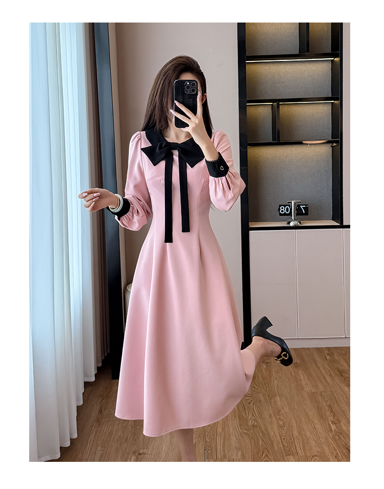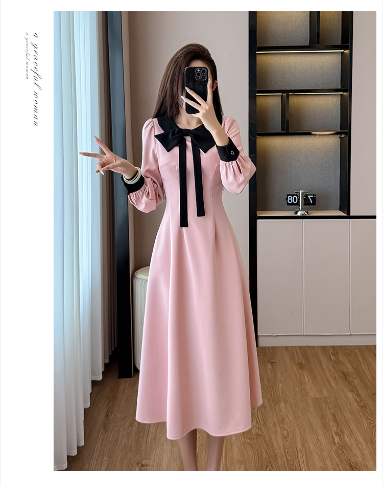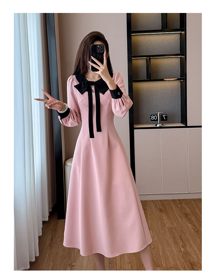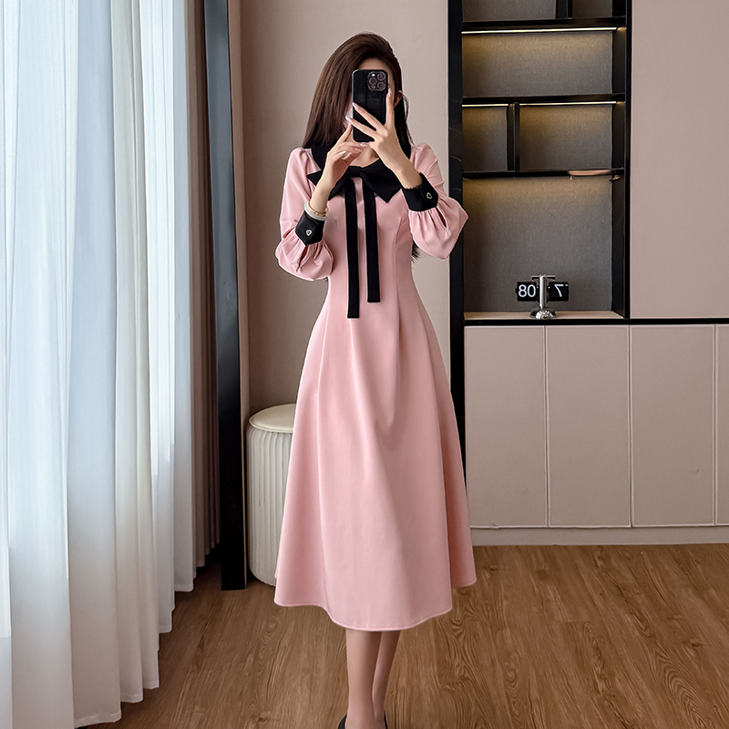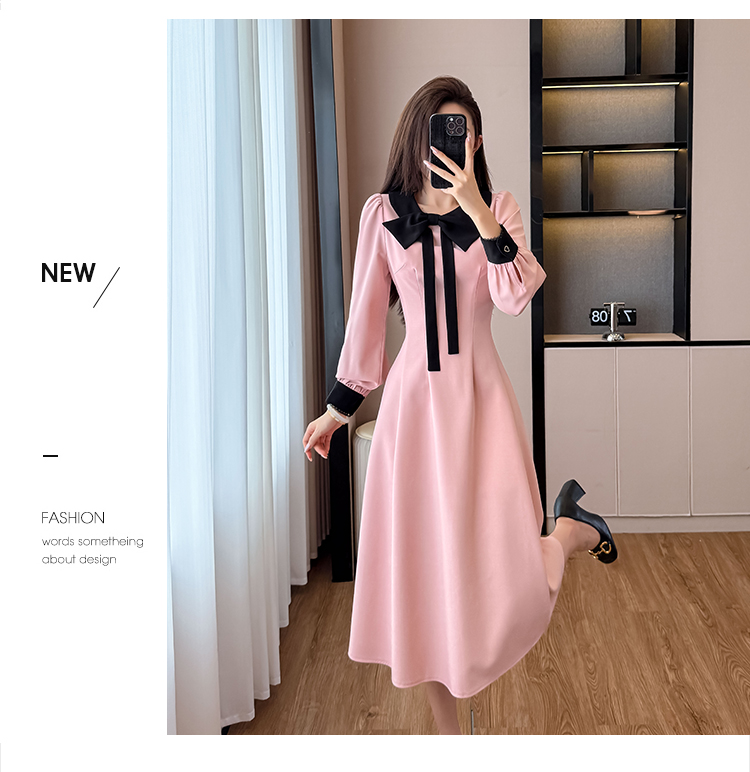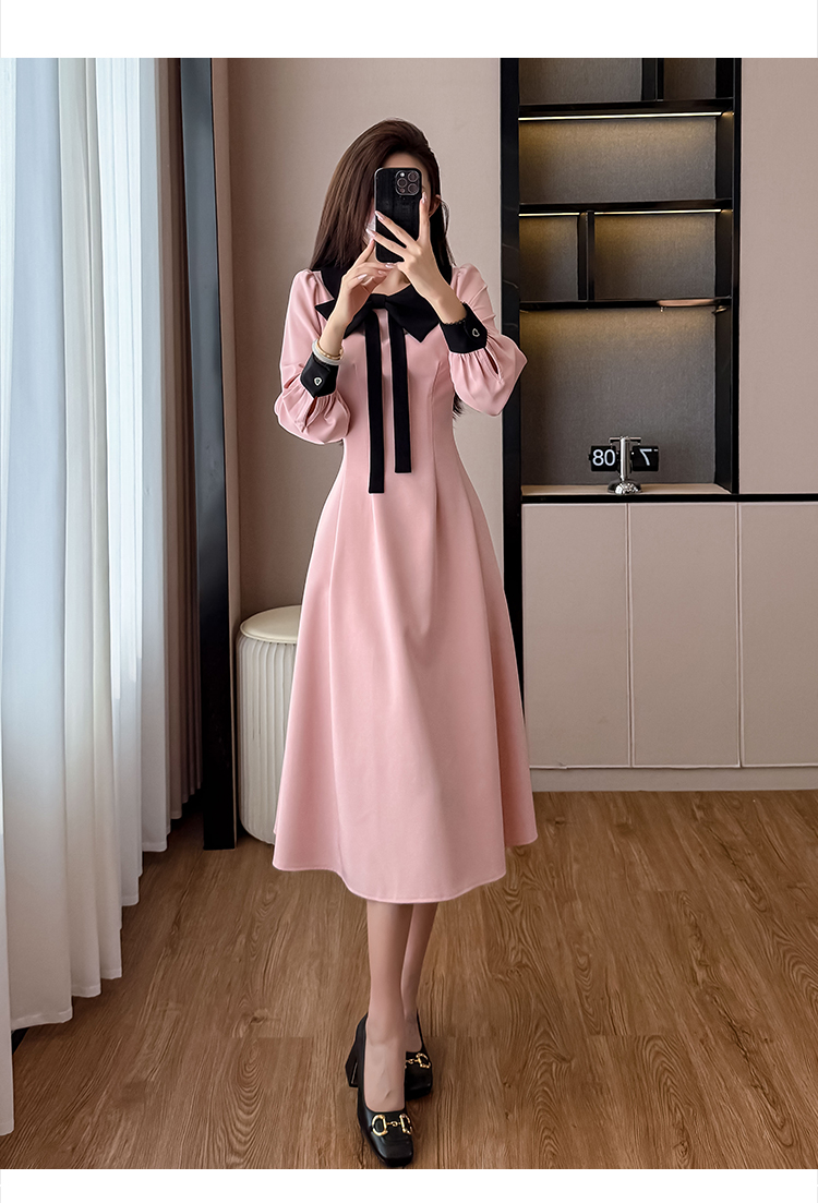 MY14139# 法式富家千金粉色长袖连衣裙设计感小众收腰甜美裙子女裝貨源服裝批發