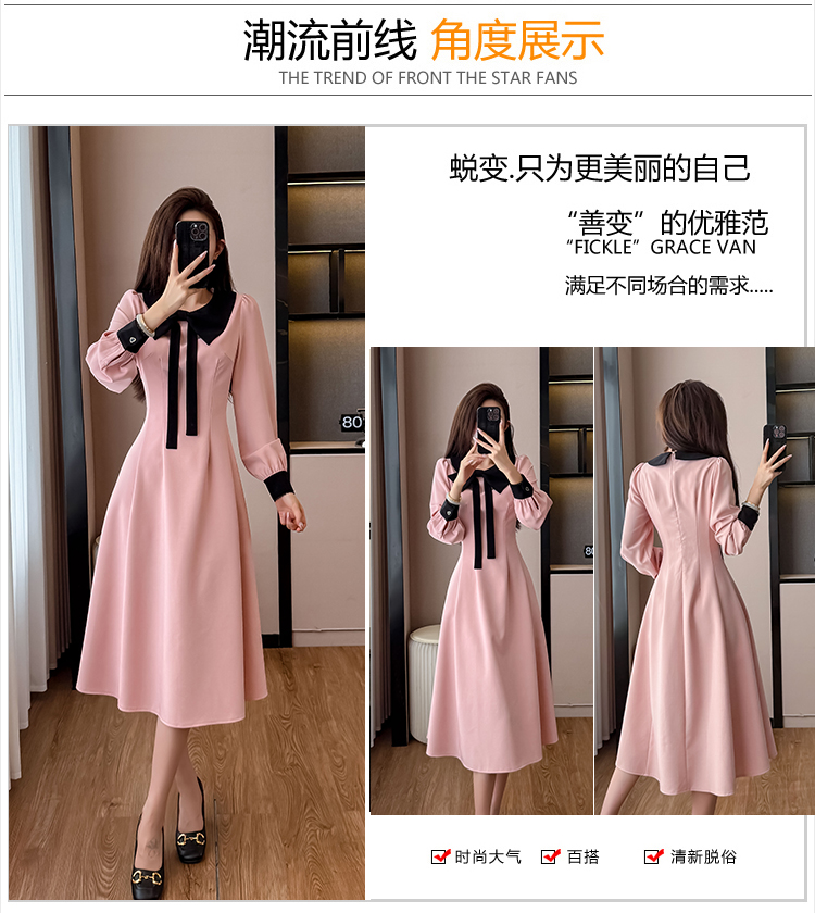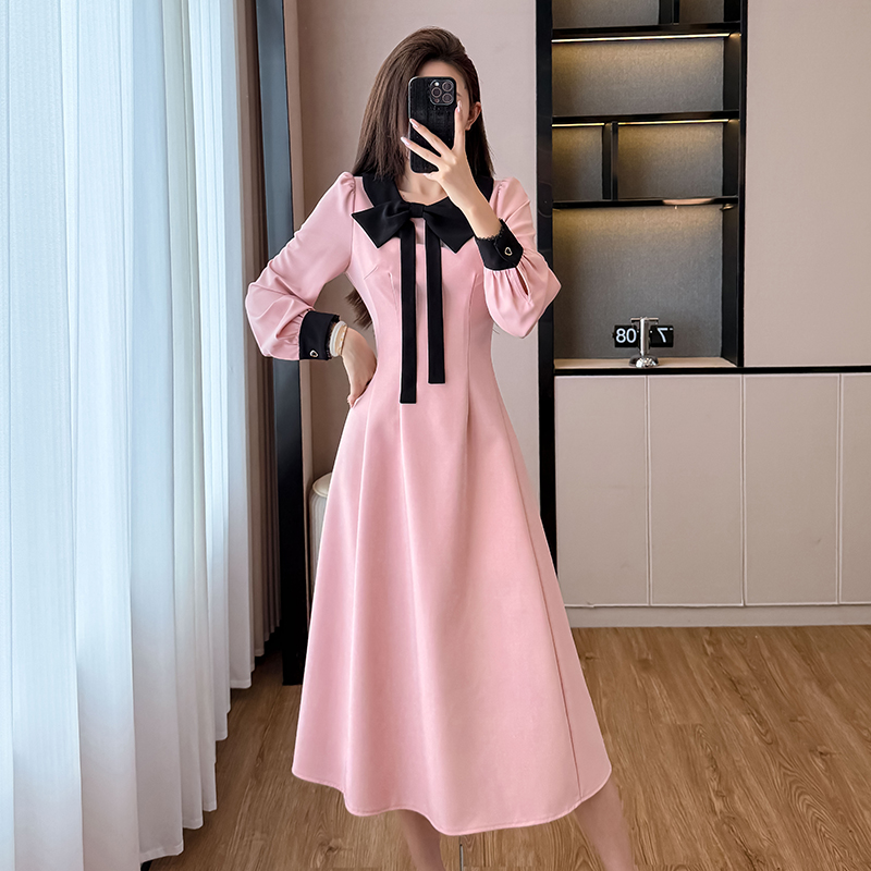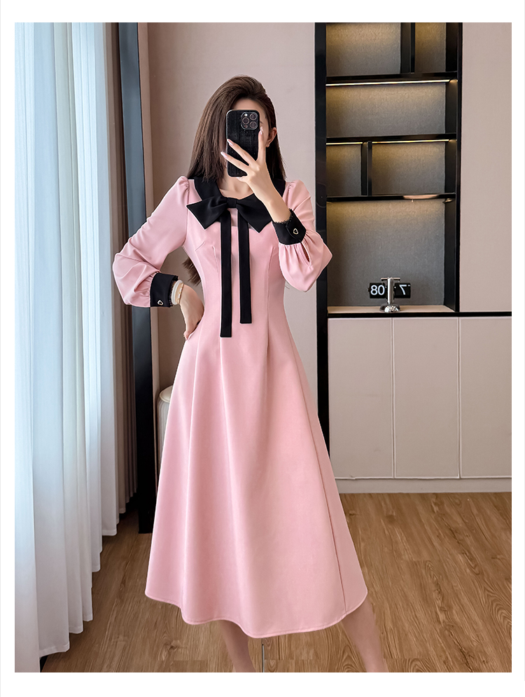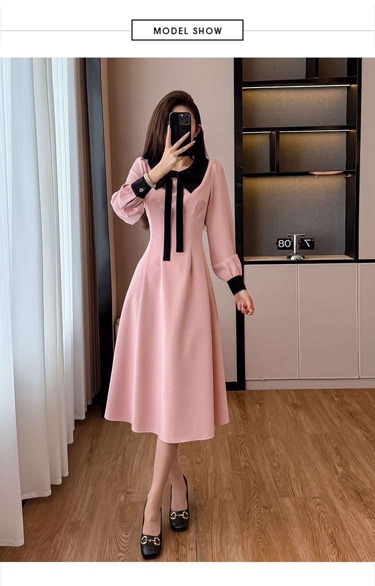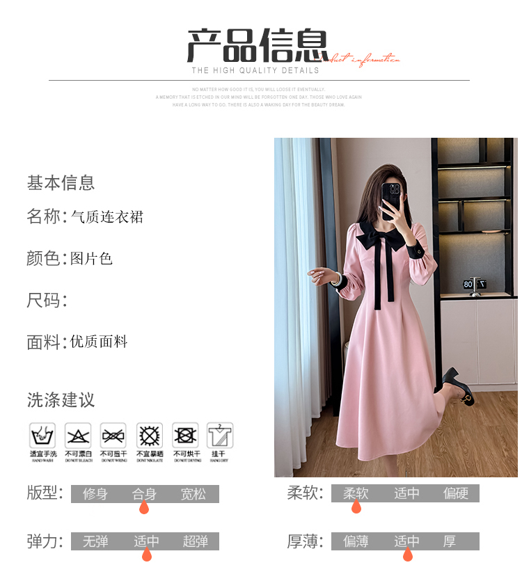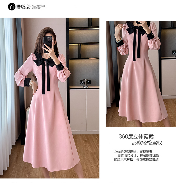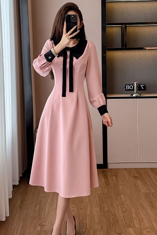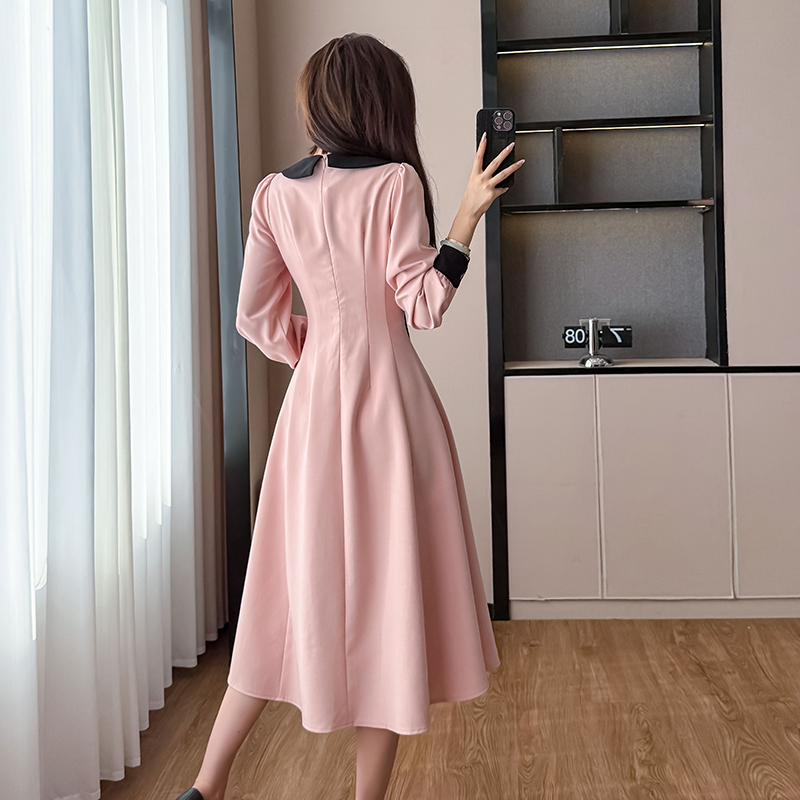 MY14139# 法式富家千金粉色长袖连衣裙设计感小众收腰甜美裙子女裝貨源服裝批發