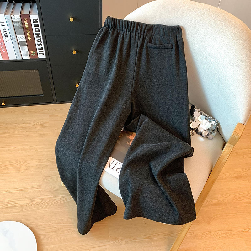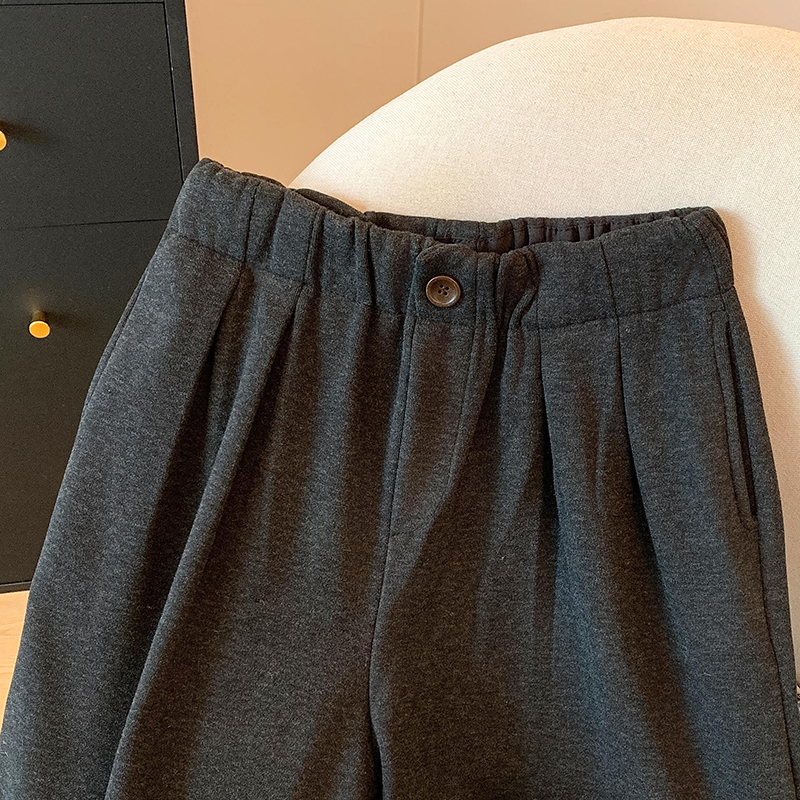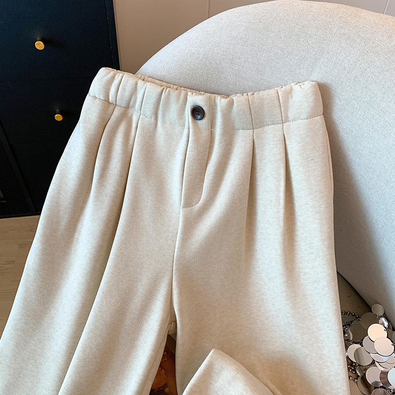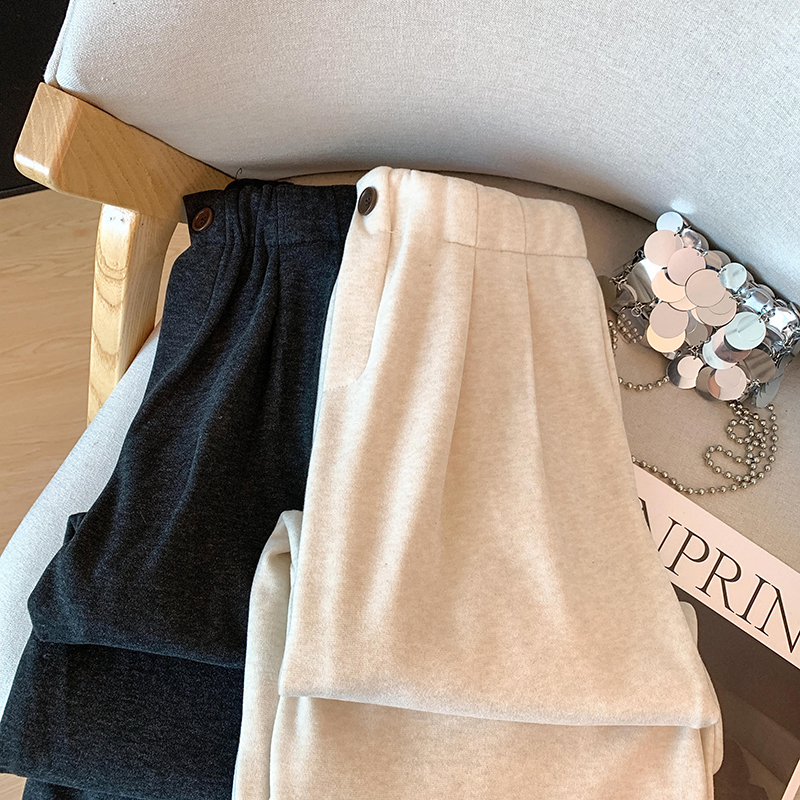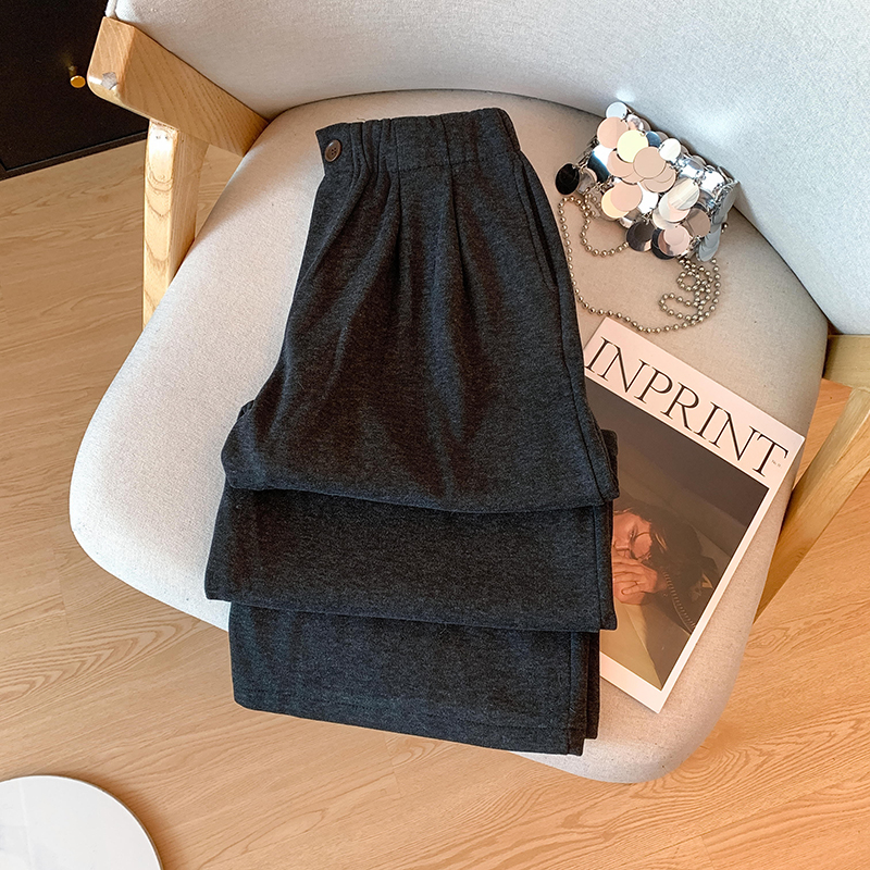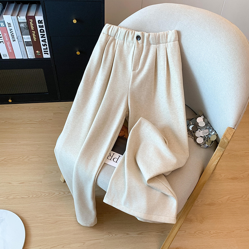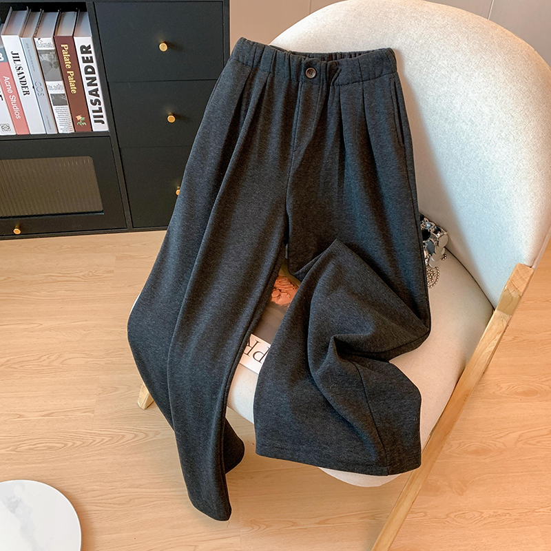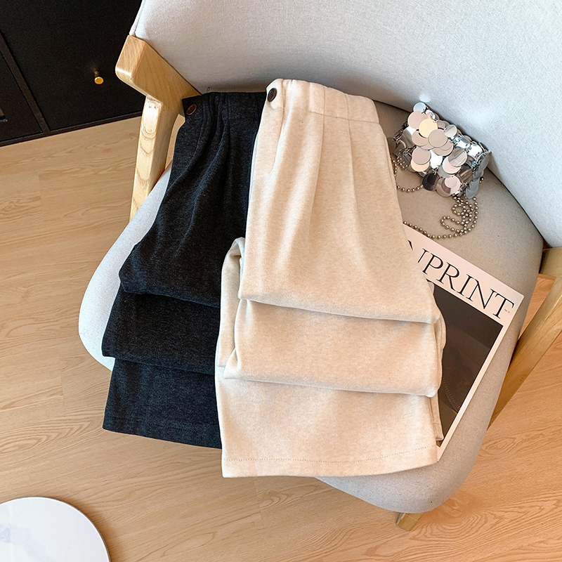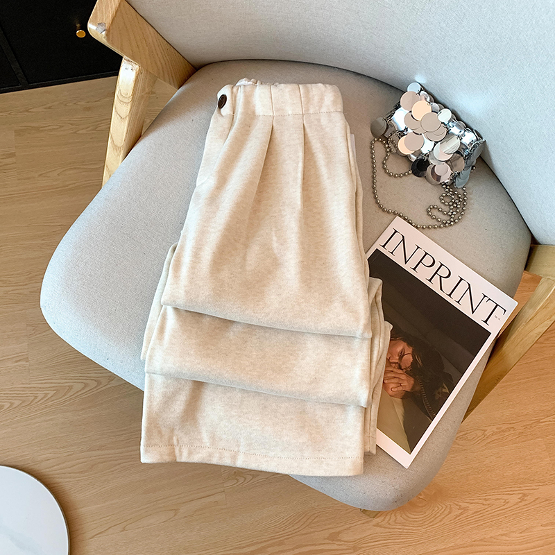 MY14225# 加绒加厚韩系简约毛呢阔腿裤压褶高腰显瘦直筒休闲裤女裝貨源服裝批發