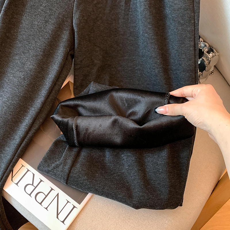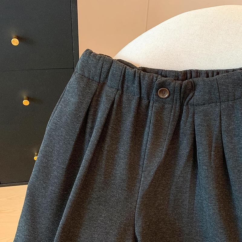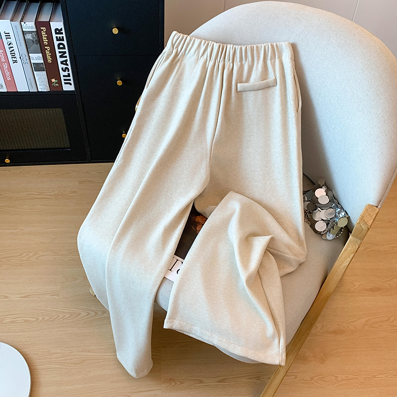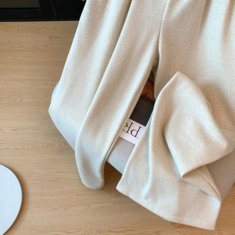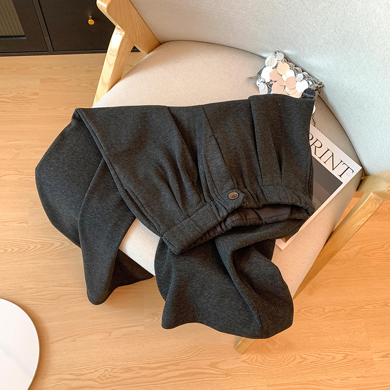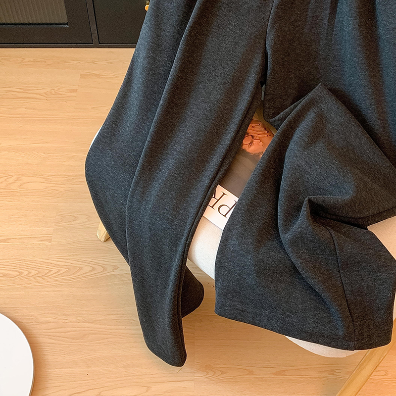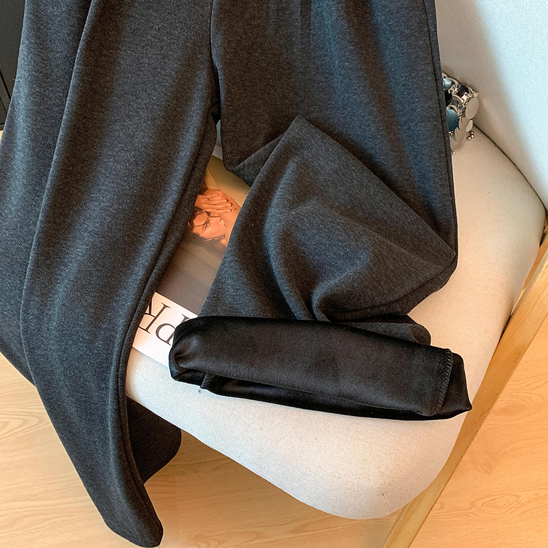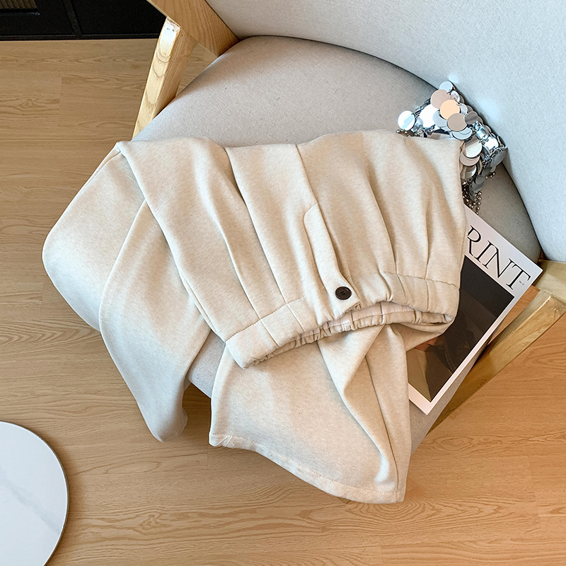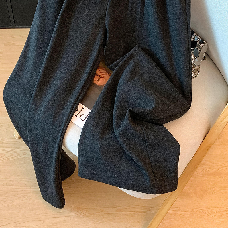 MY14225# 加绒加厚韩系简约毛呢阔腿裤压褶高腰显瘦直筒休闲裤女裝貨源服裝批發