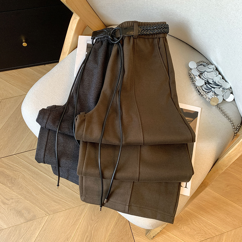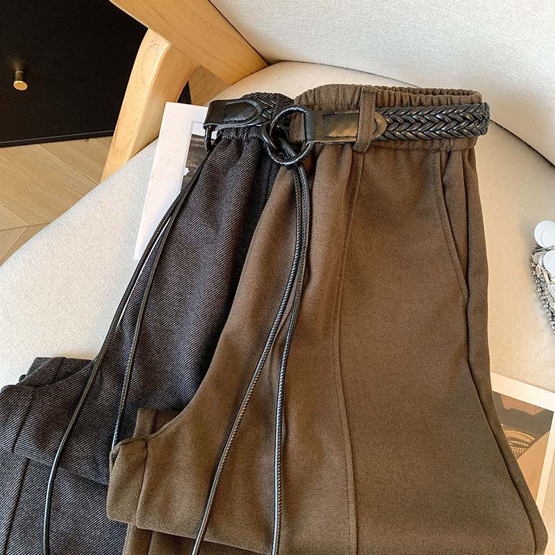 MY14226# 高级感配腰带加绒加厚阔腿裤女秋冬时尚洋气百搭直筒休闲裤女裝貨源服裝批發