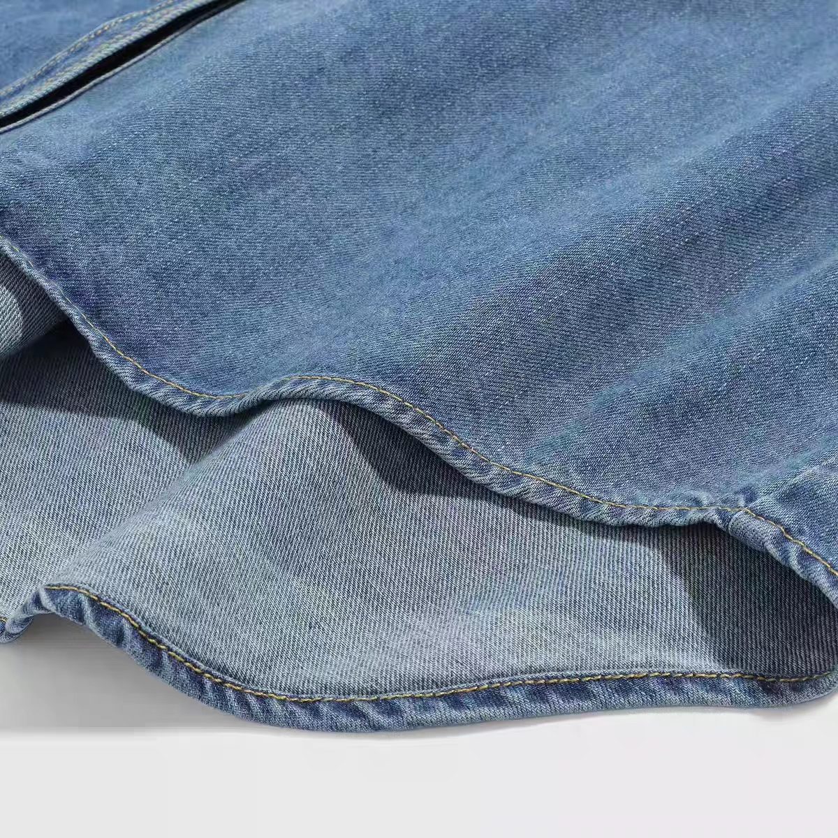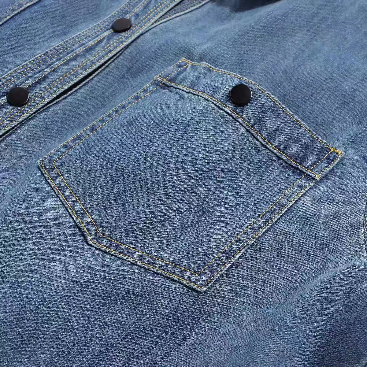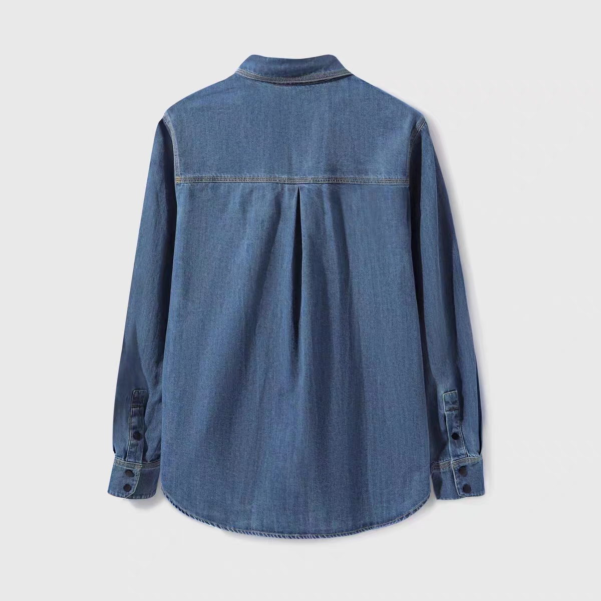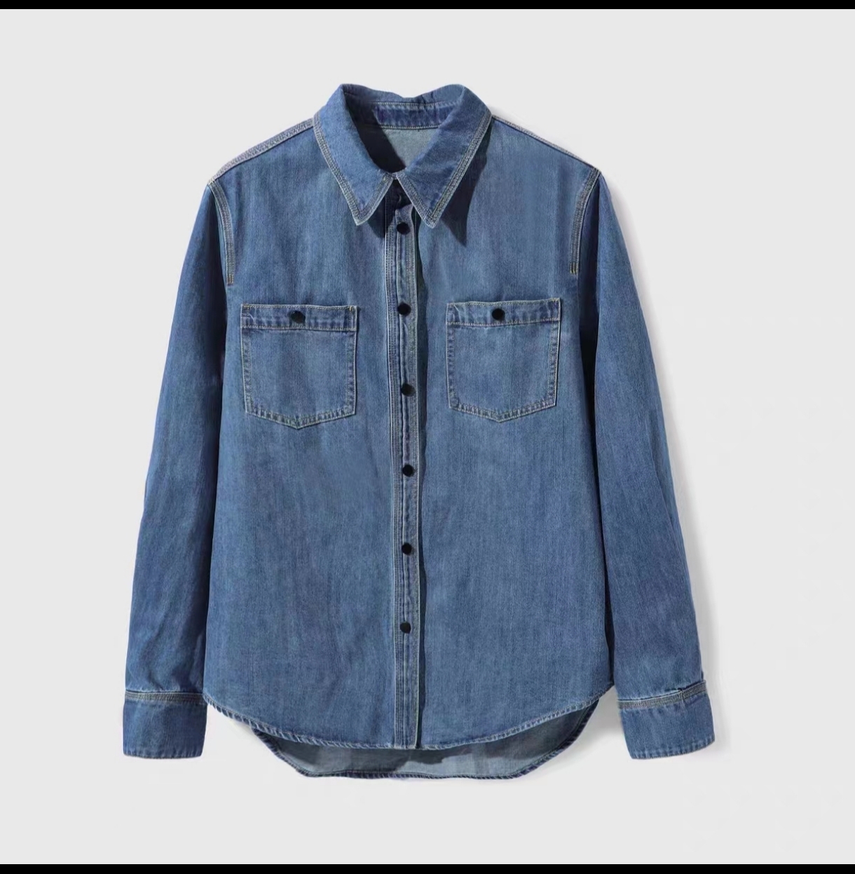 MY14260# 简约复古不规则港风牛仔衬衫女宽松前短后长单排扣百搭上衣女裝貨源服裝批發