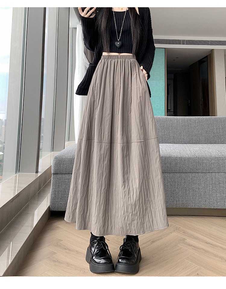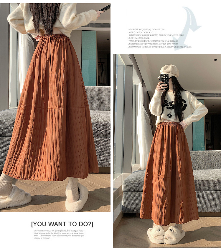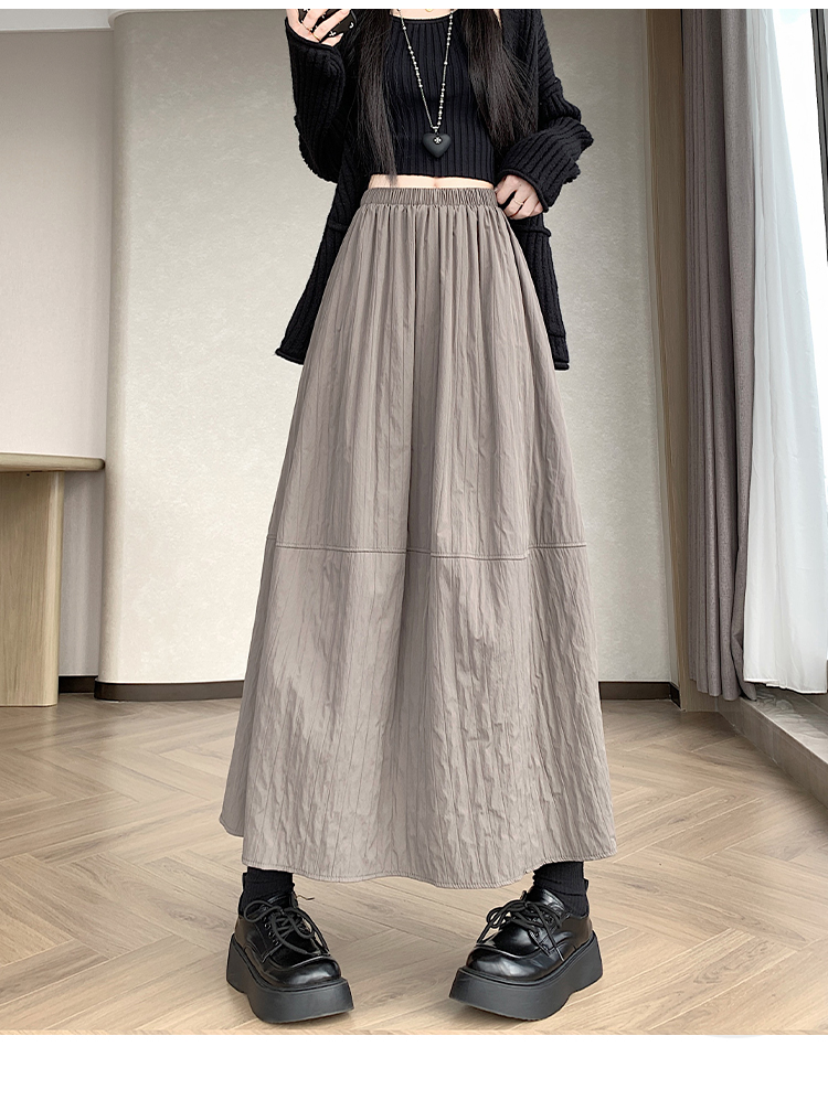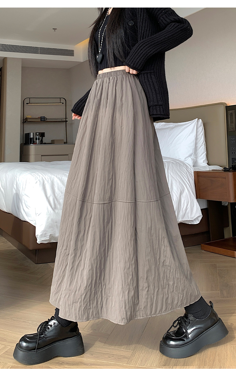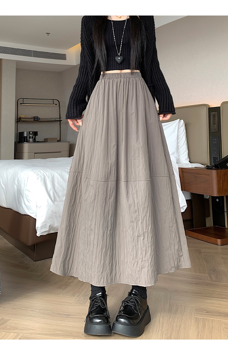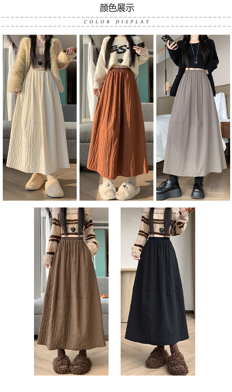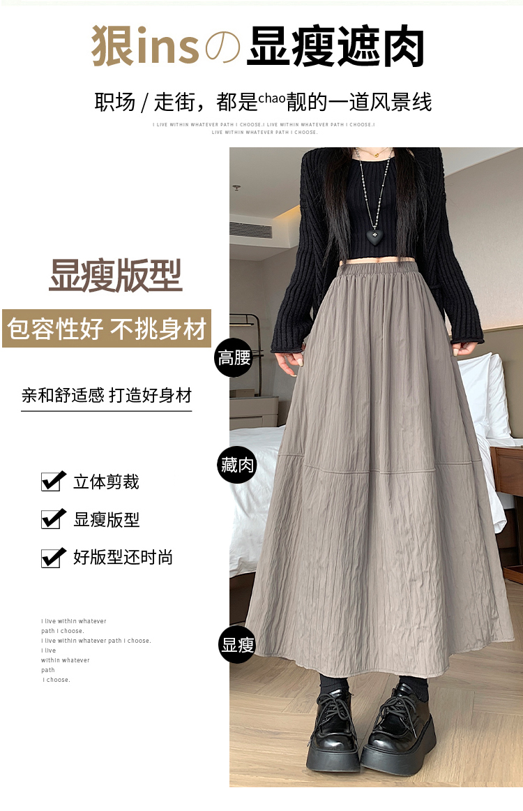 MY14284# 新款绗线潮流半身裙高腰显瘦拼接褶皱中长款A字花苞伞裙女裝貨源服裝批發