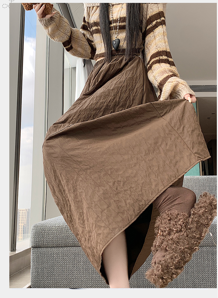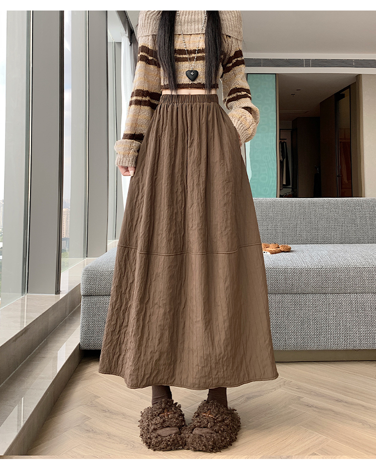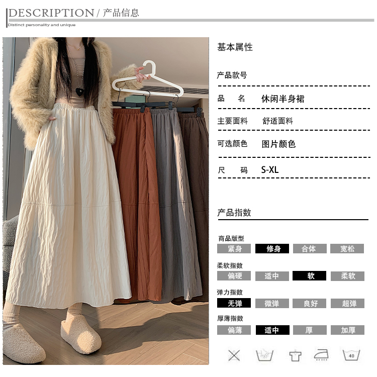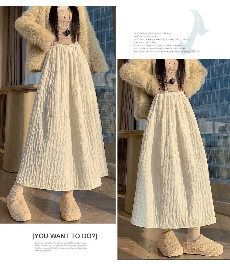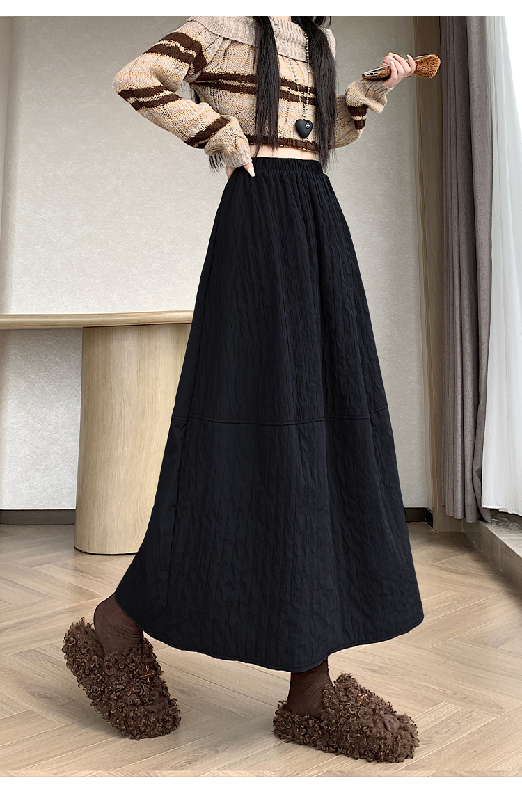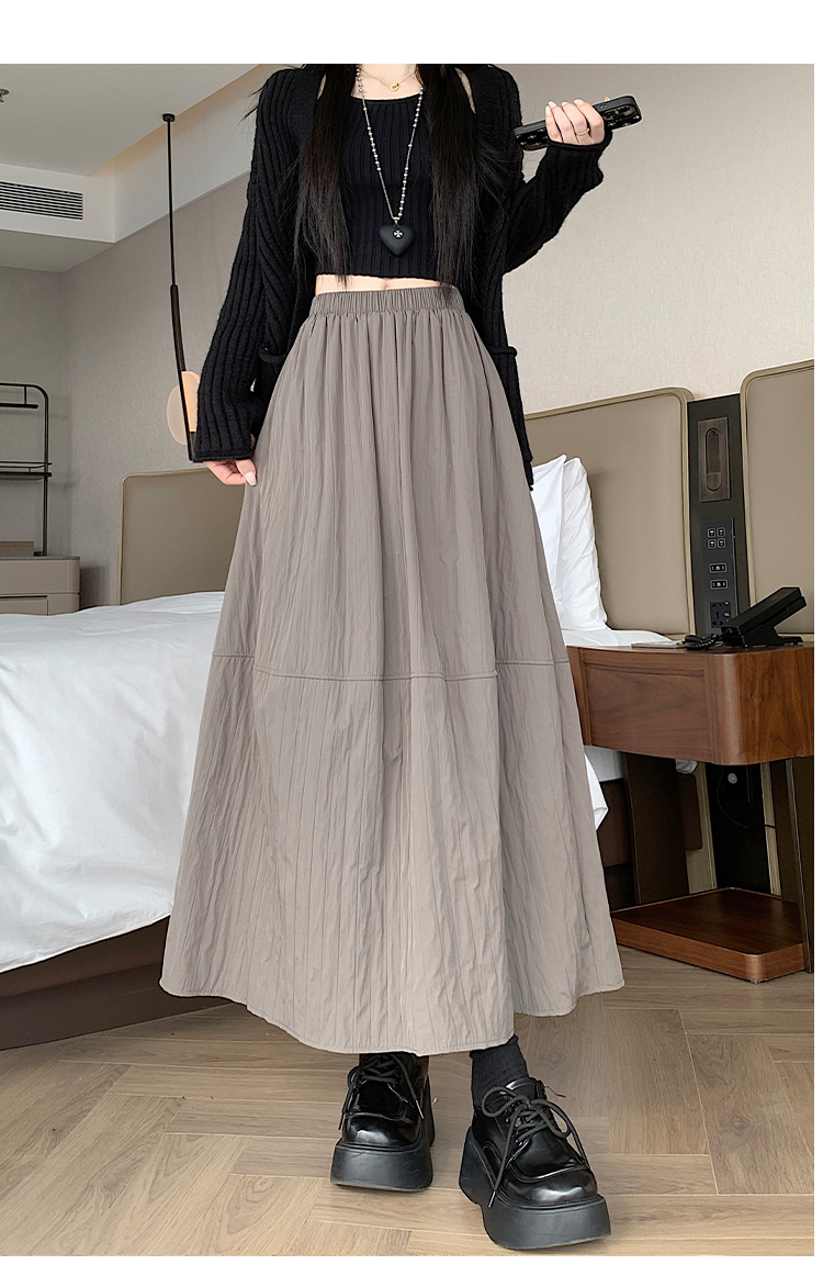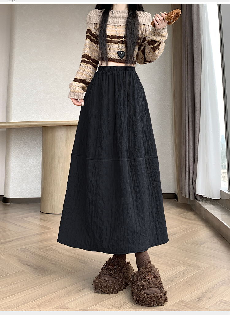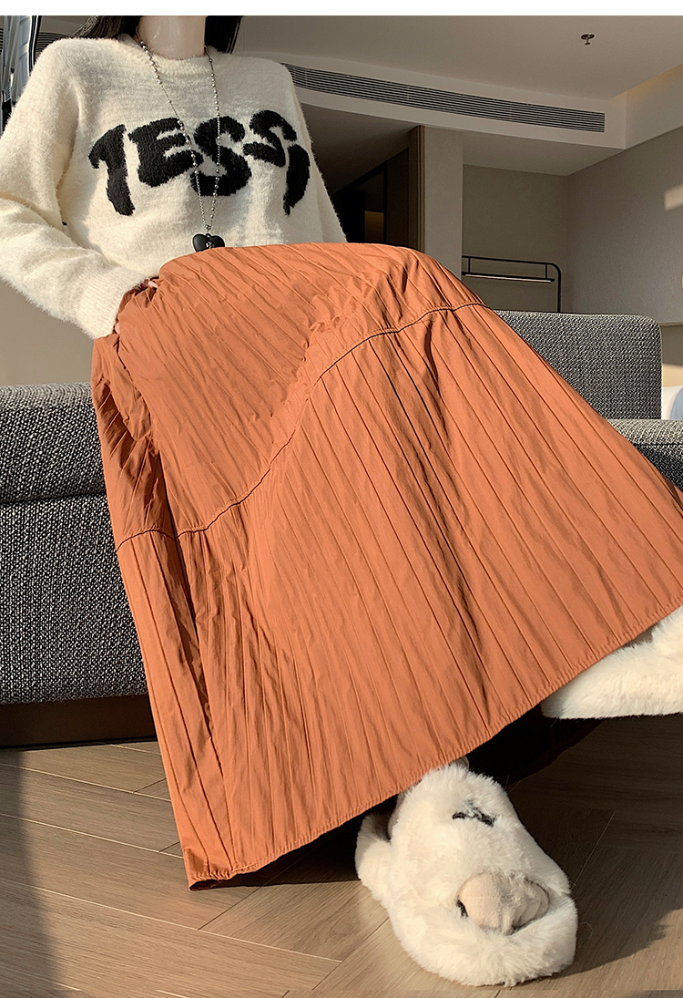 MY14284# 新款绗线潮流半身裙高腰显瘦拼接褶皱中长款A字花苞伞裙女裝貨源服裝批發