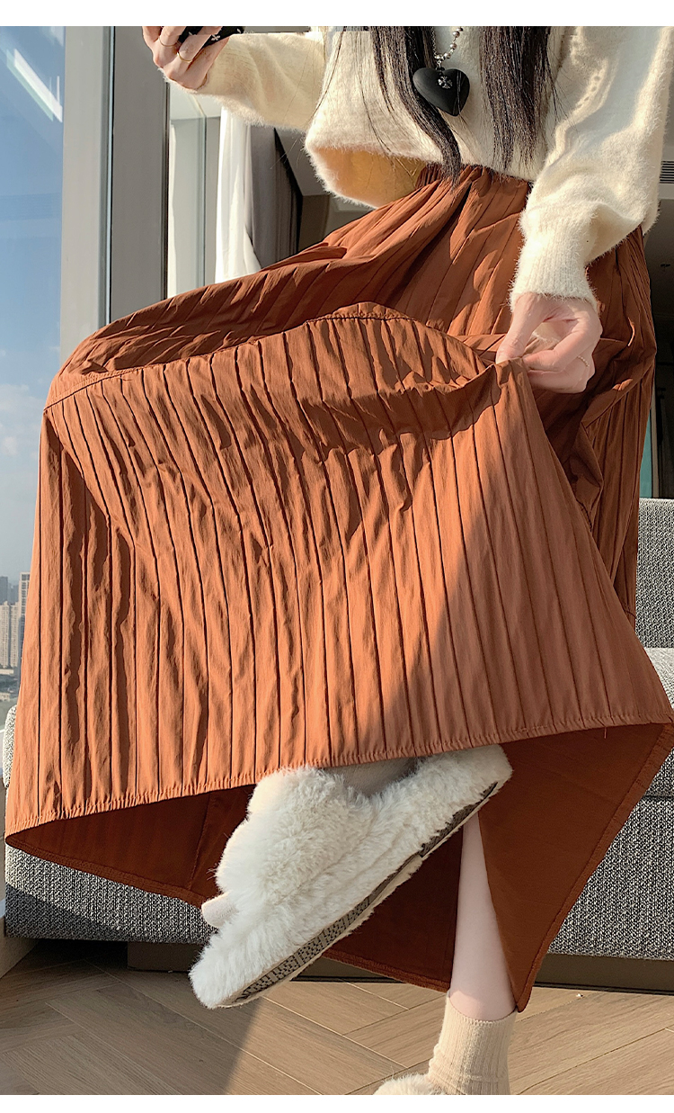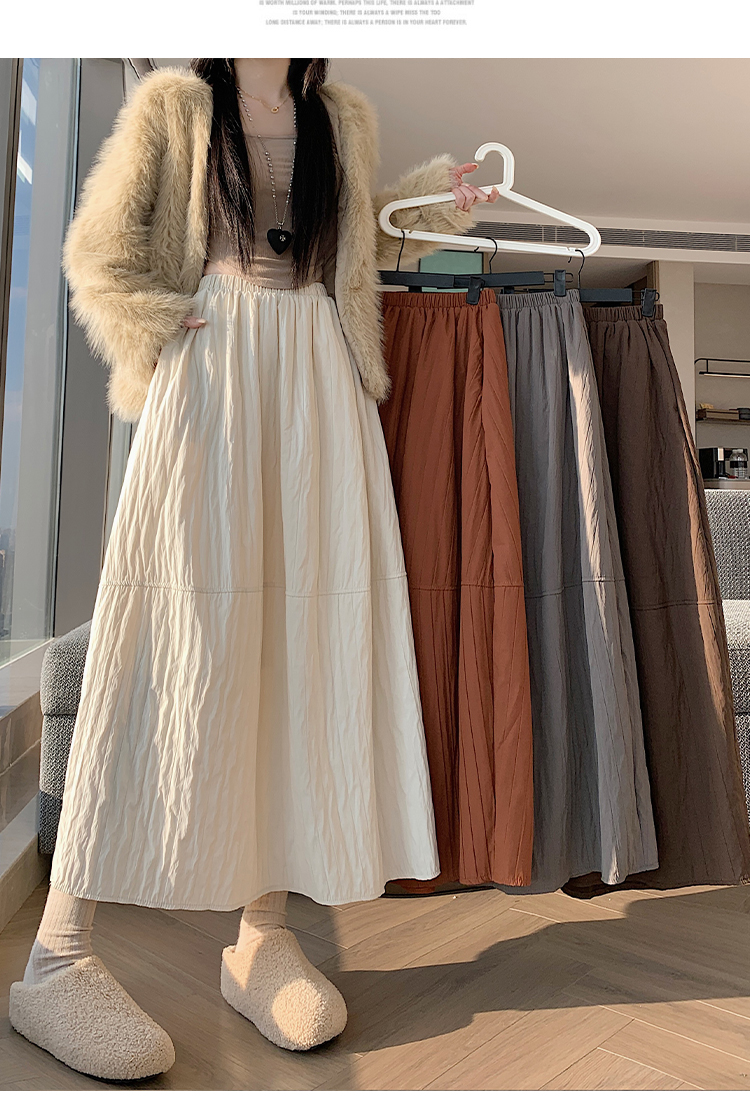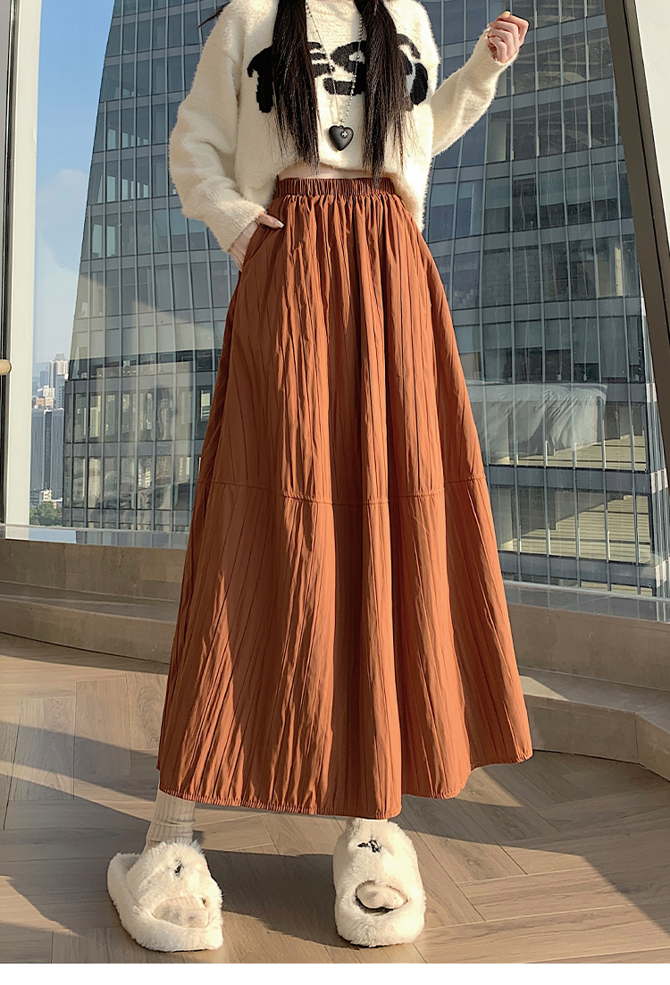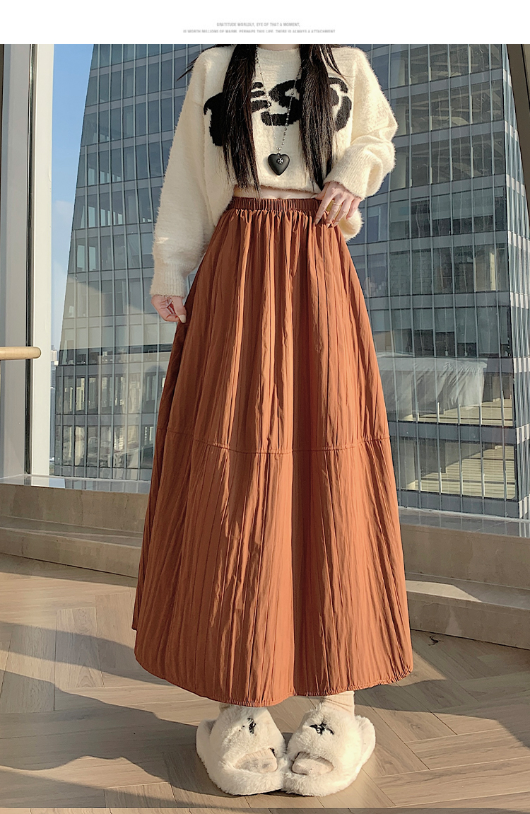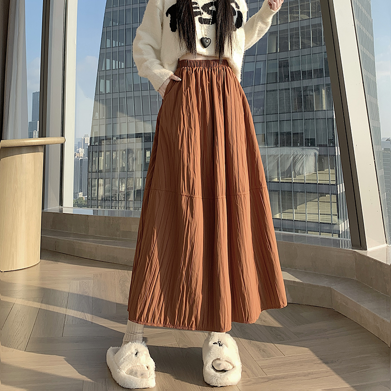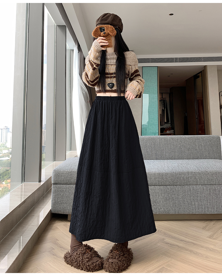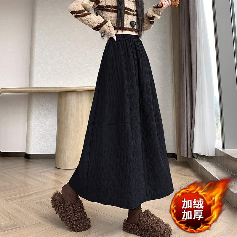 MY14284# 新款绗线潮流半身裙高腰显瘦拼接褶皱中长款A字花苞伞裙女裝貨源服裝批發