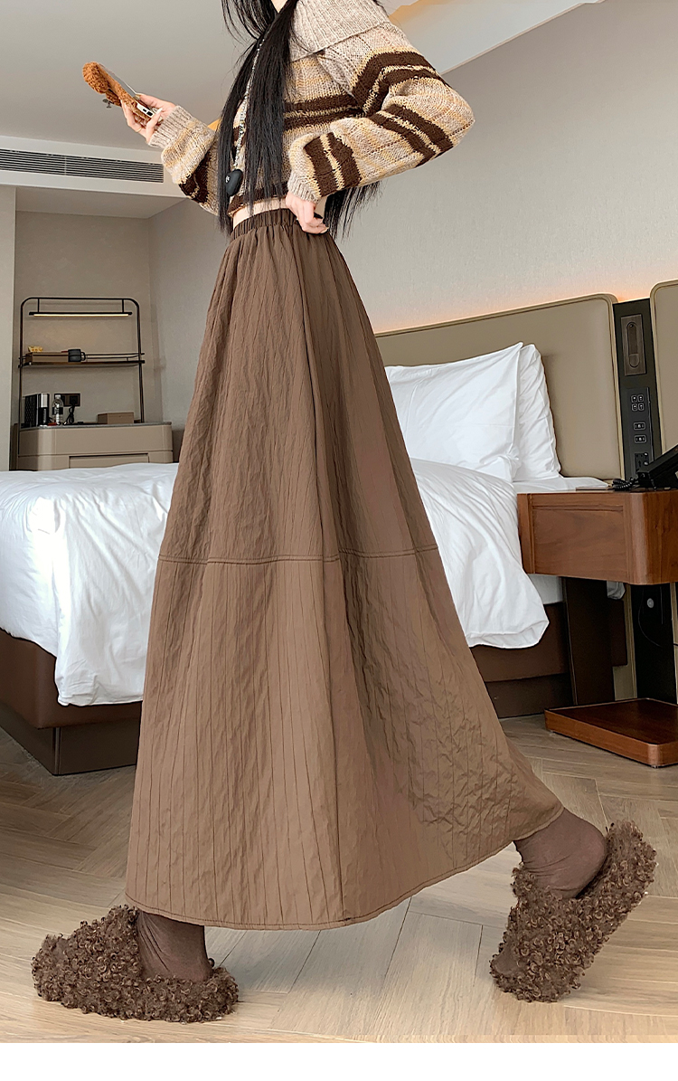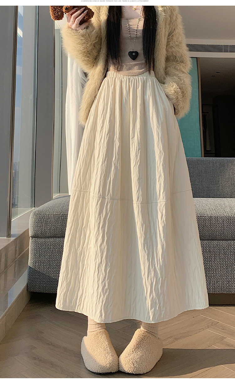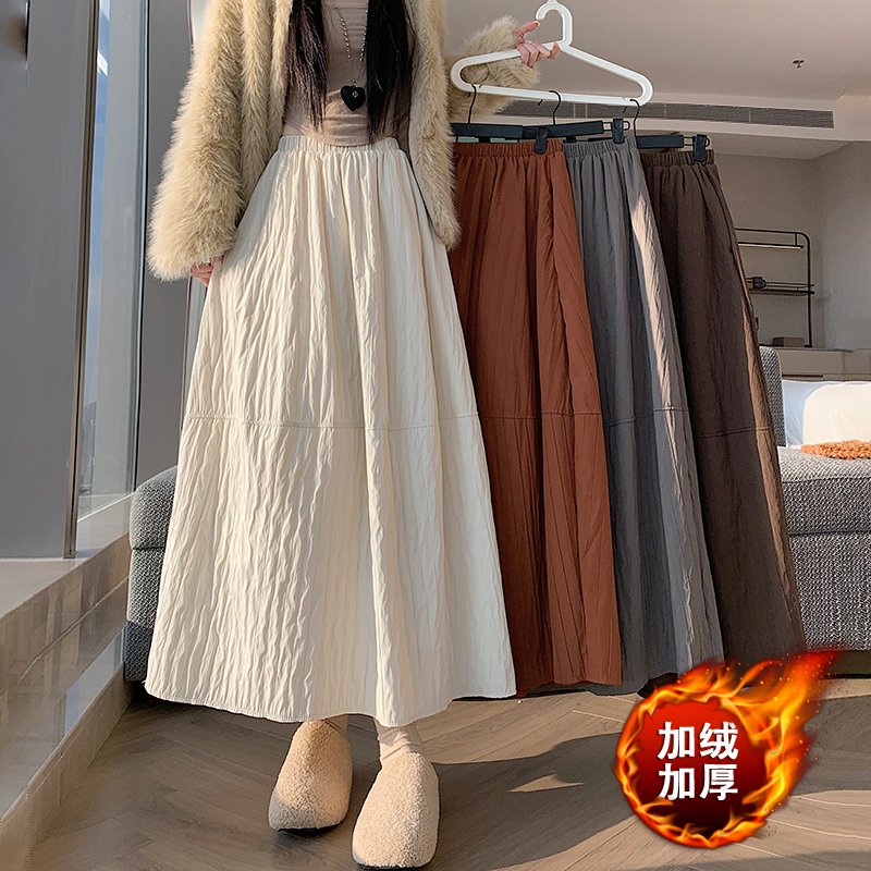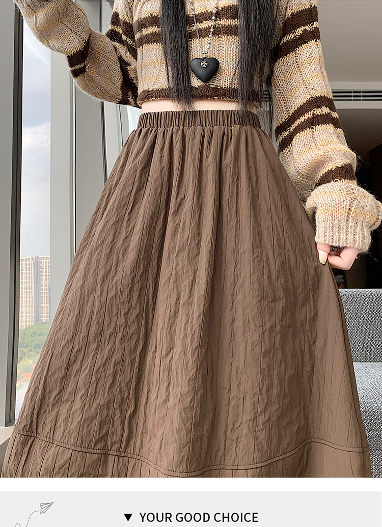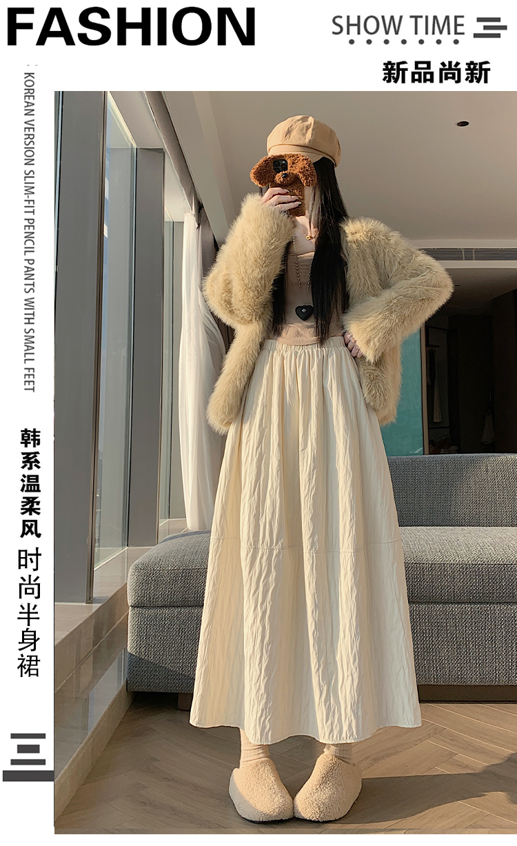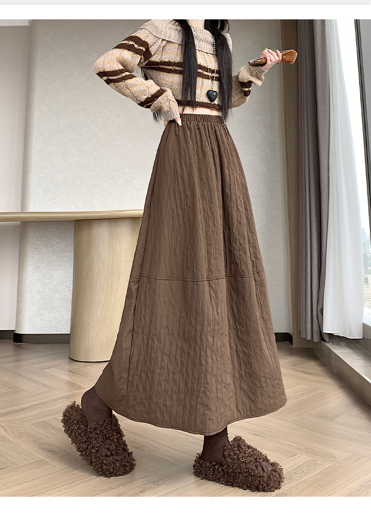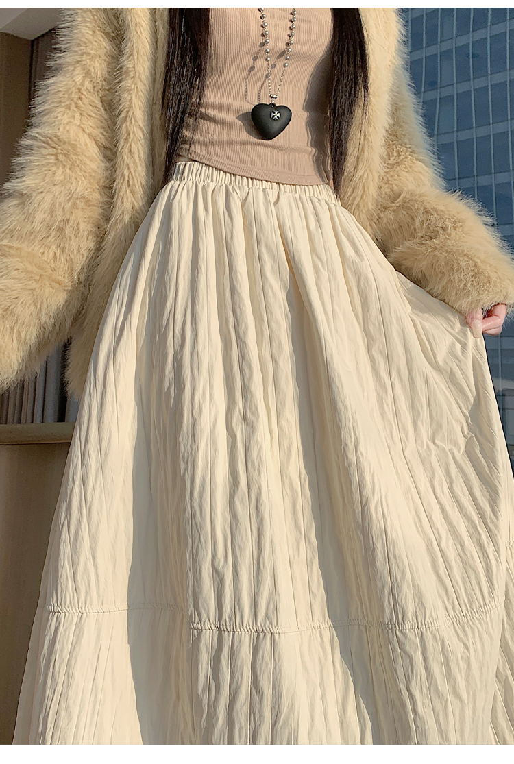 MY14284# 新款绗线潮流半身裙高腰显瘦拼接褶皱中长款A字花苞伞裙女裝貨源服裝批發