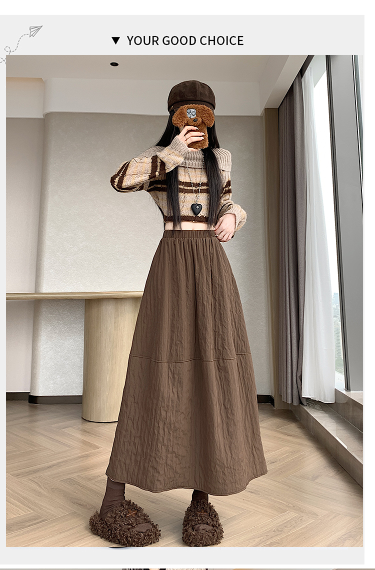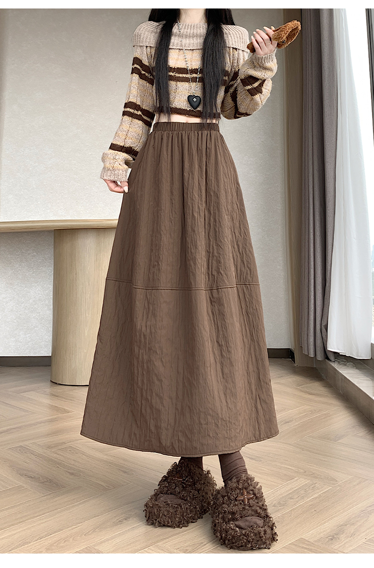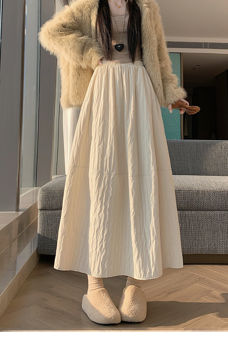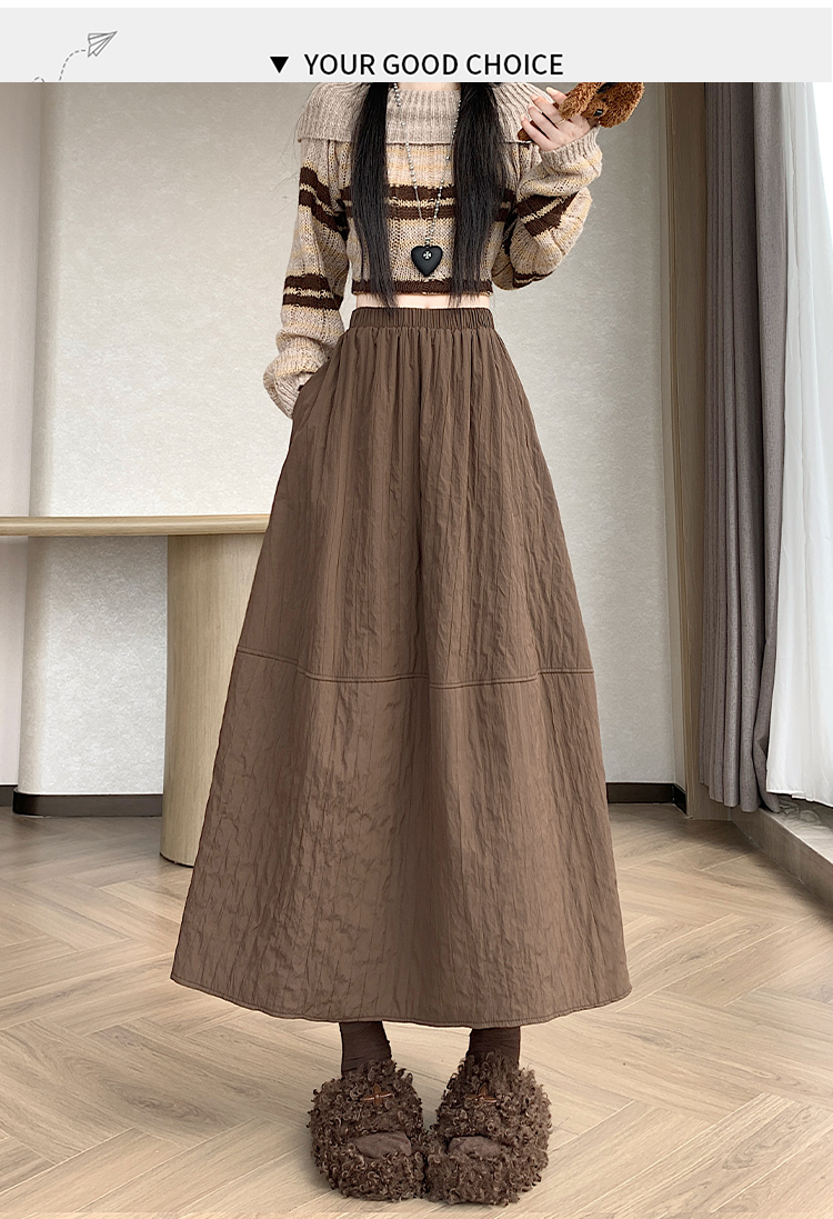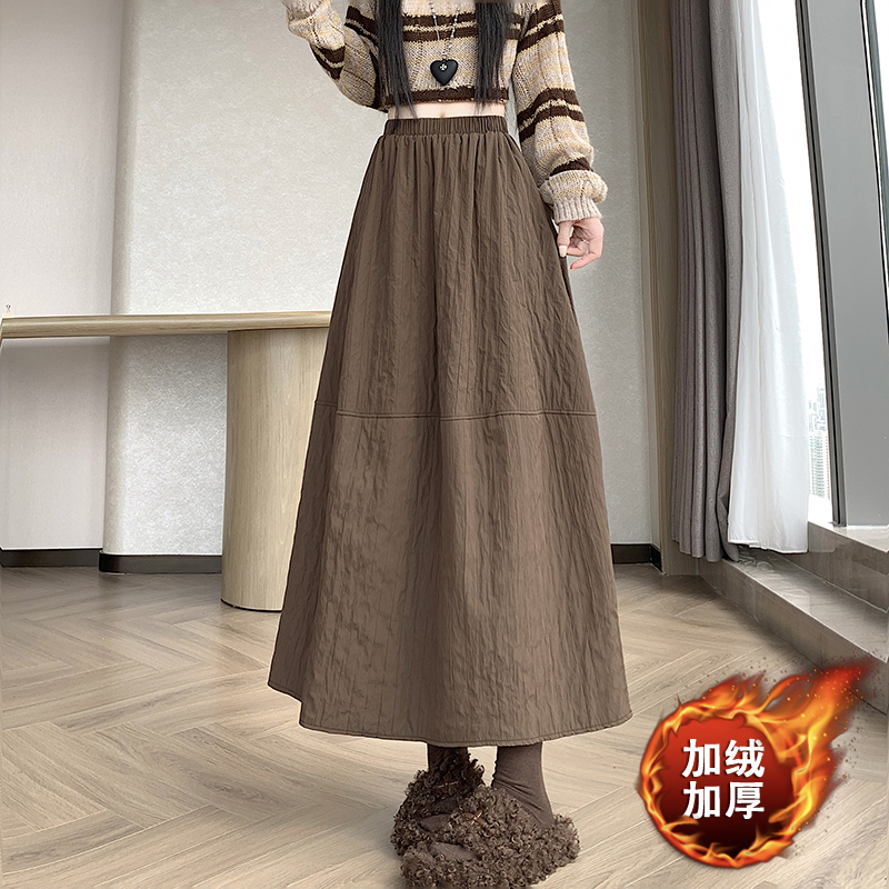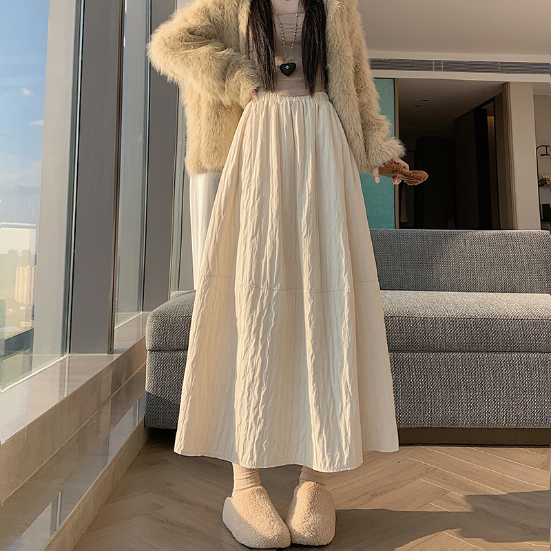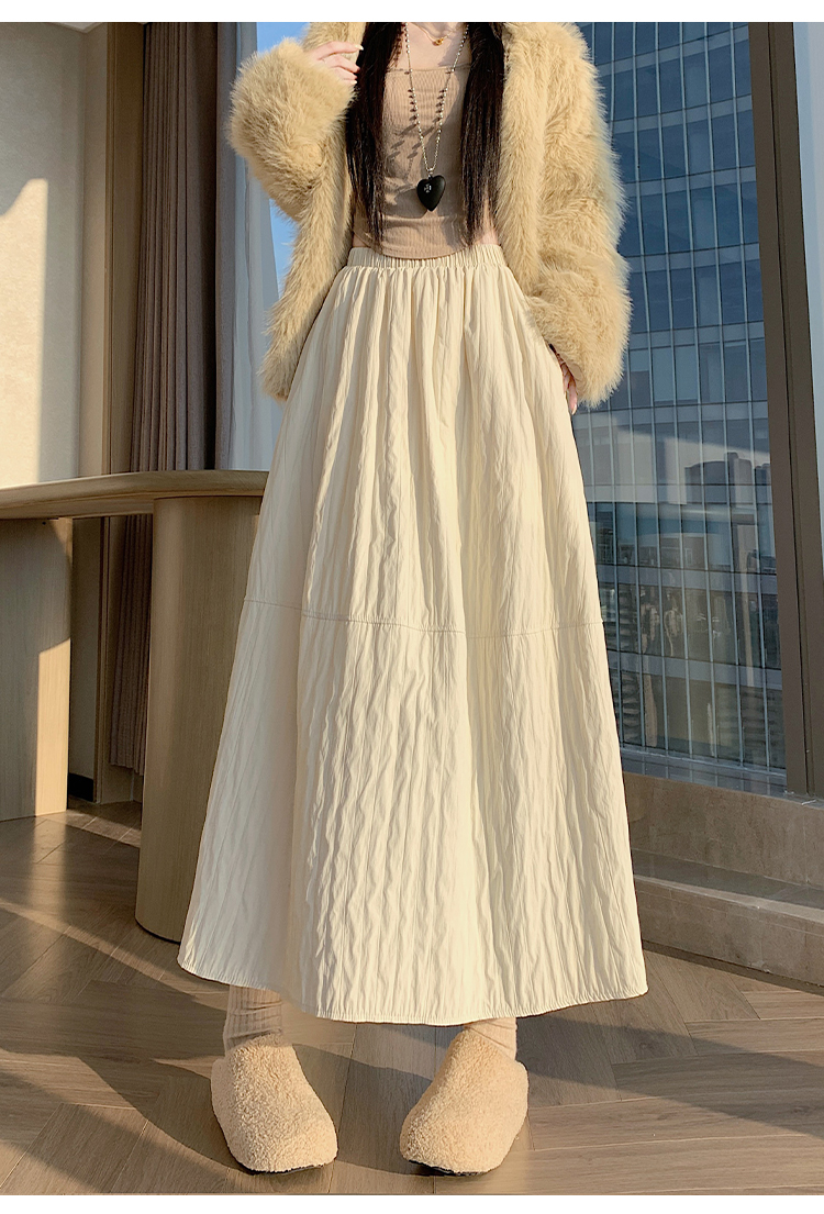 MY14284# 新款绗线潮流半身裙高腰显瘦拼接褶皱中长款A字花苞伞裙女裝貨源服裝批發