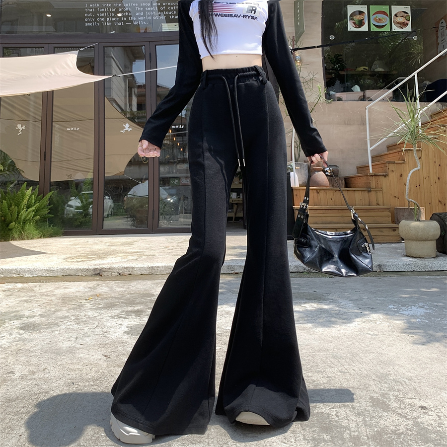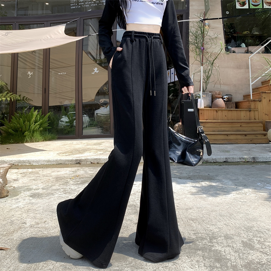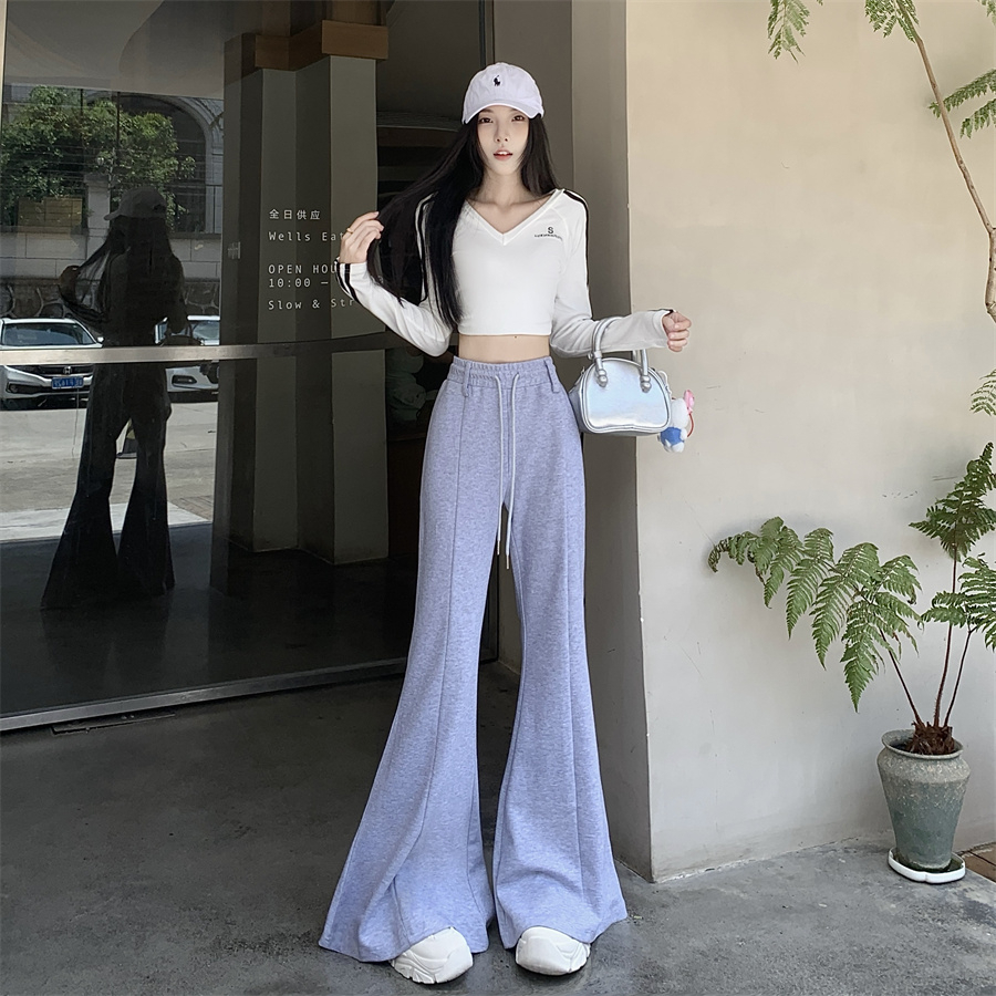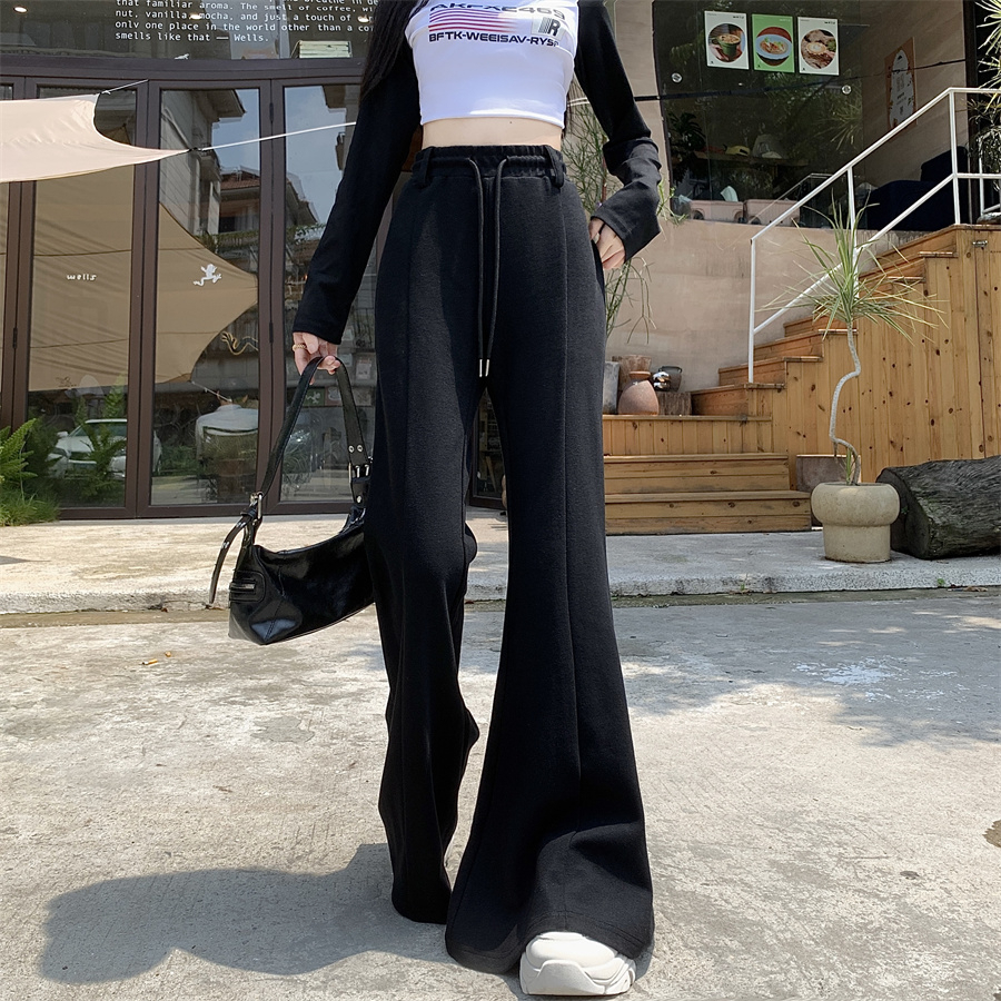 MY14324# 韩国外贸韩版新款大喇叭阔腿高腰垂感显瘦百搭休闲运动裤女裝貨源服裝批發