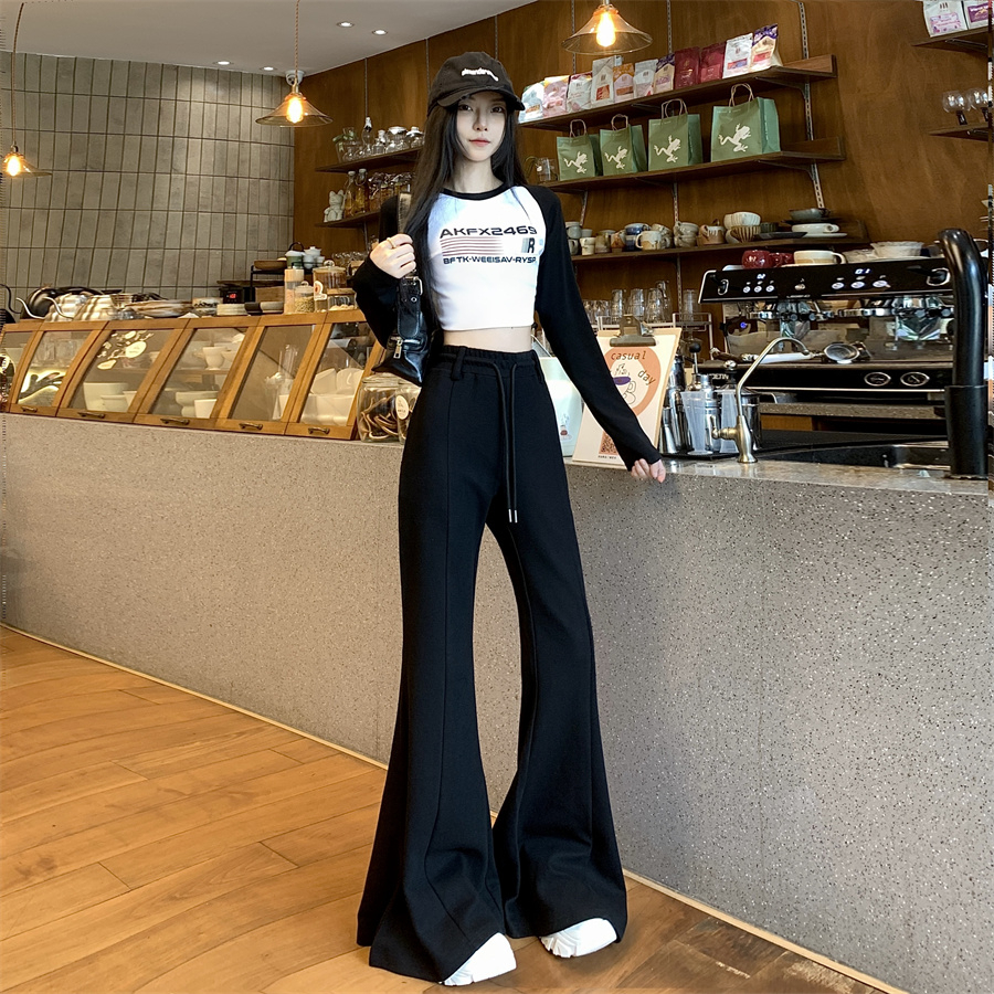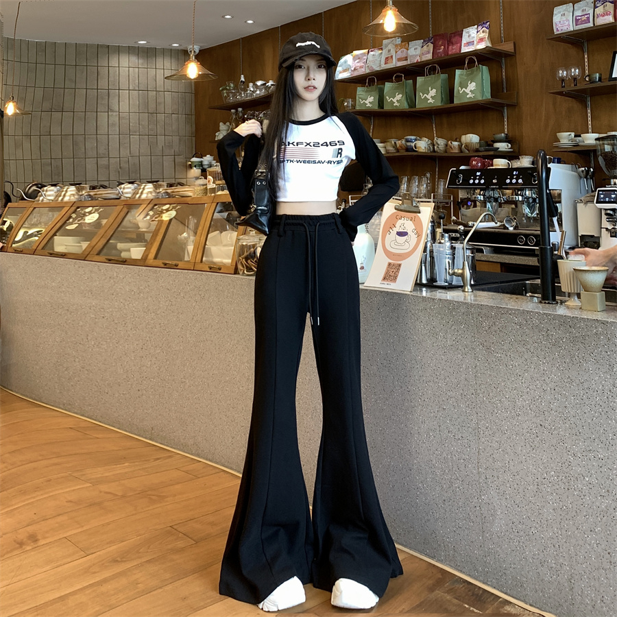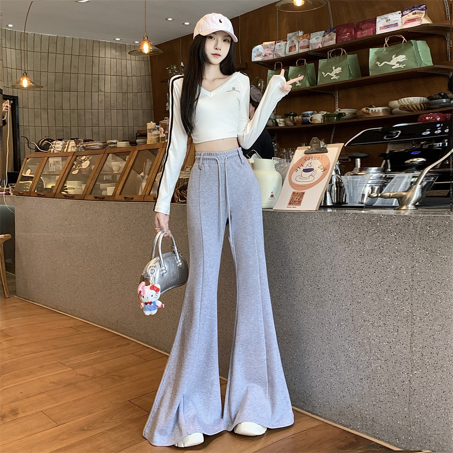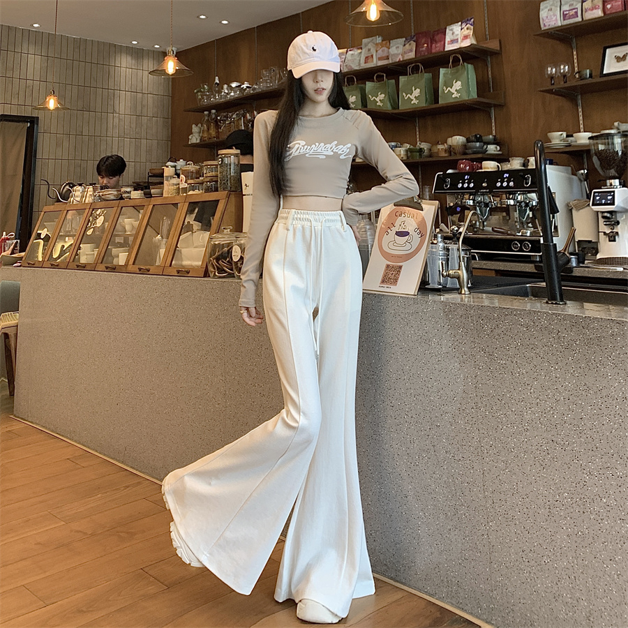 MY14324# 韩国外贸韩版新款大喇叭阔腿高腰垂感显瘦百搭休闲运动裤女裝貨源服裝批發