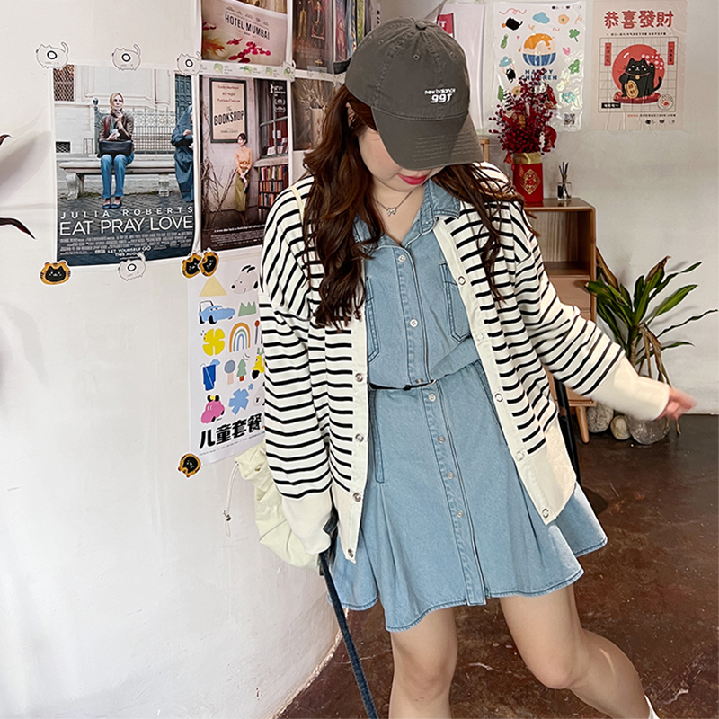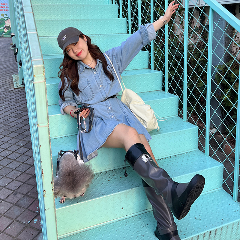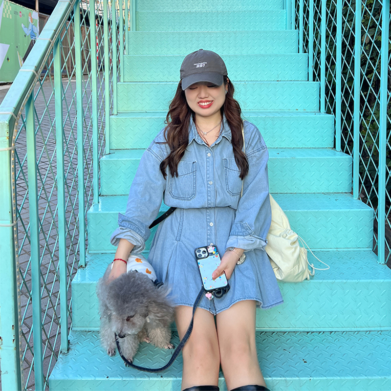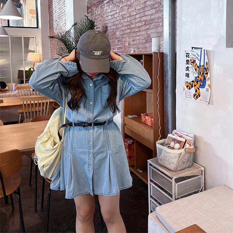 MY14346# 减龄气质设计感荷叶边衬衫牛仔连衣裙女春秋大码收腰显瘦背带短裙女裝貨源服裝批發