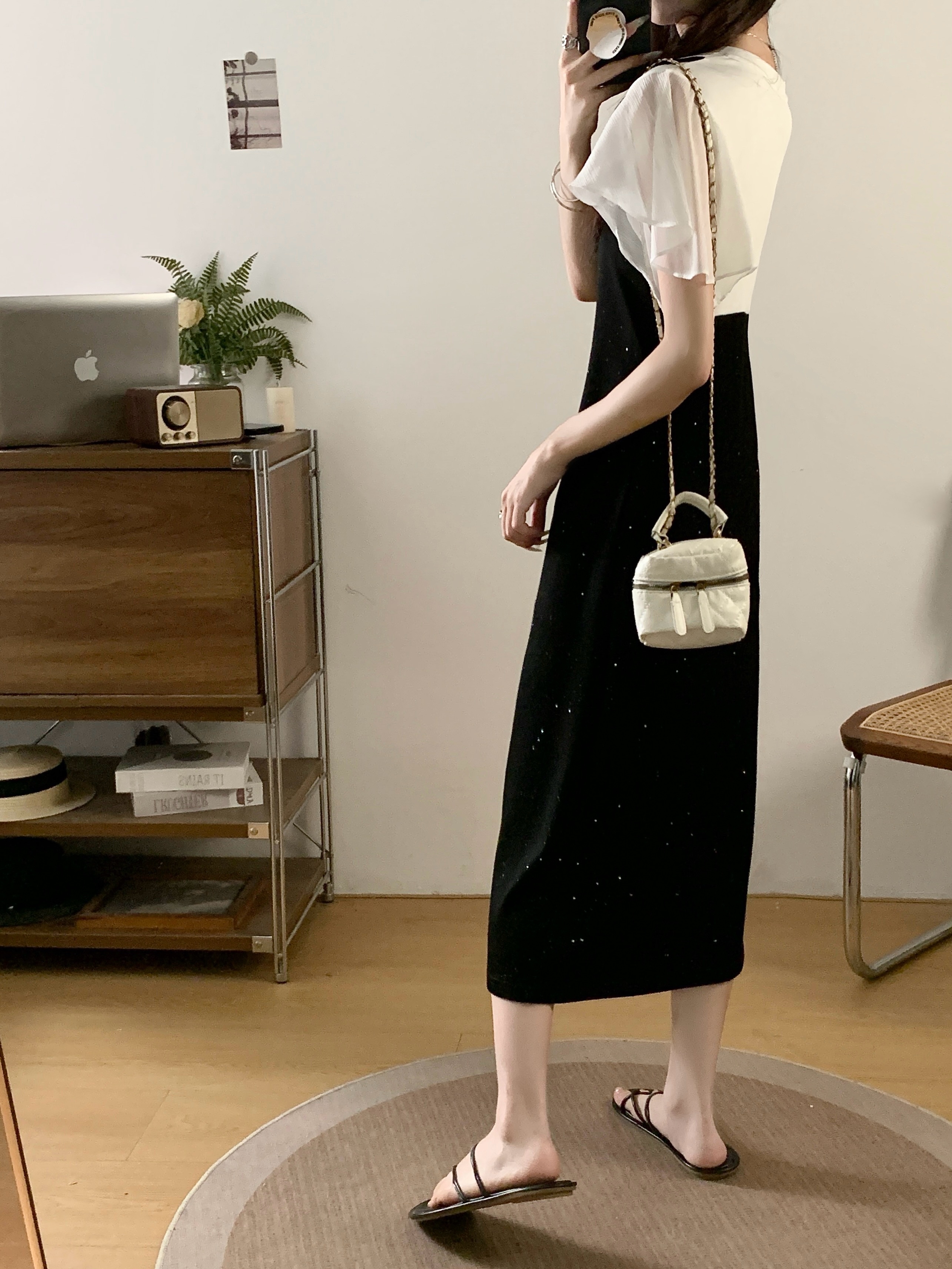 MY14360# 大码女夏设计感气质时尚休闲雪纺拼接假两件显瘦连衣裙女裝貨源服裝批發