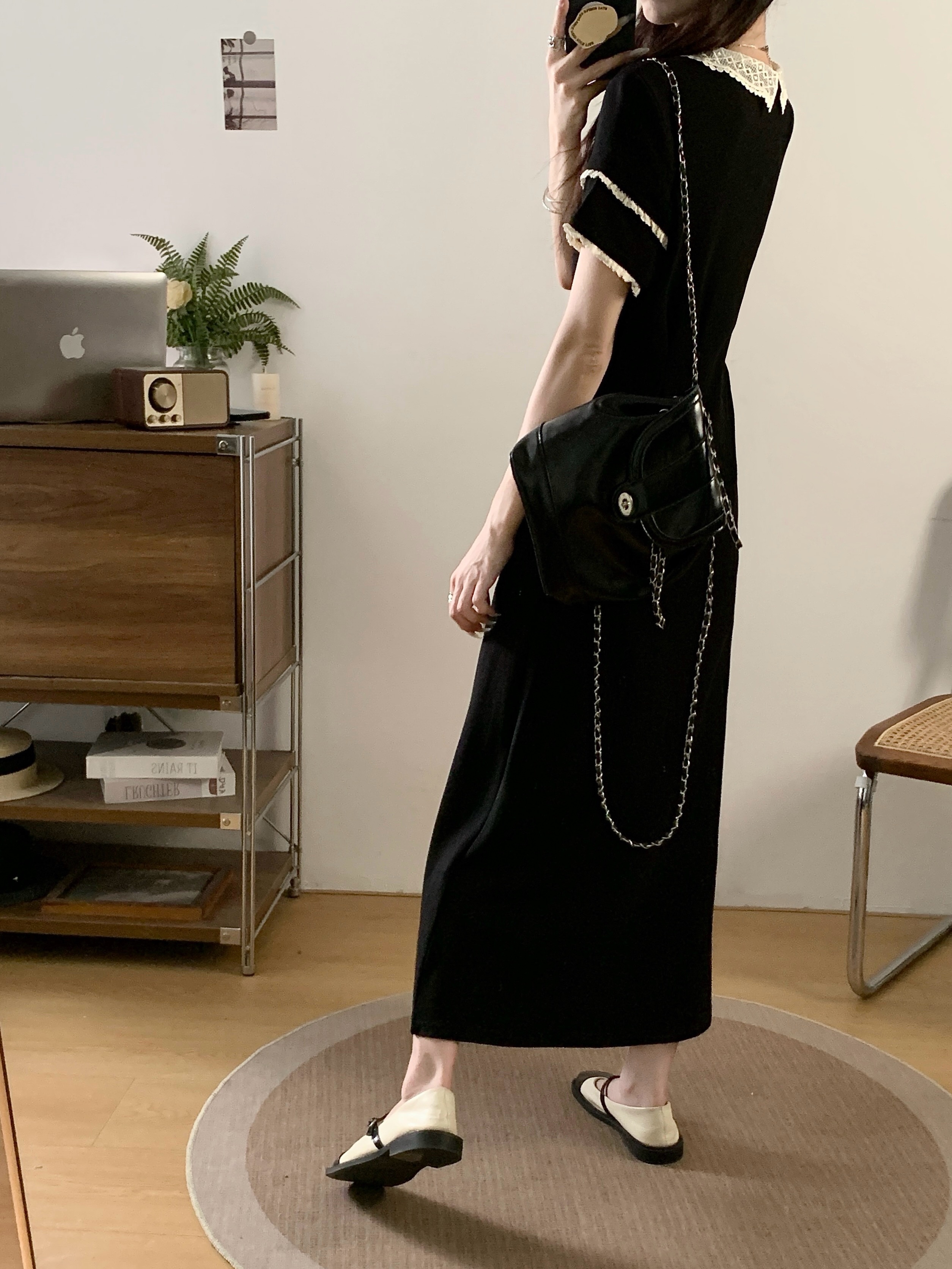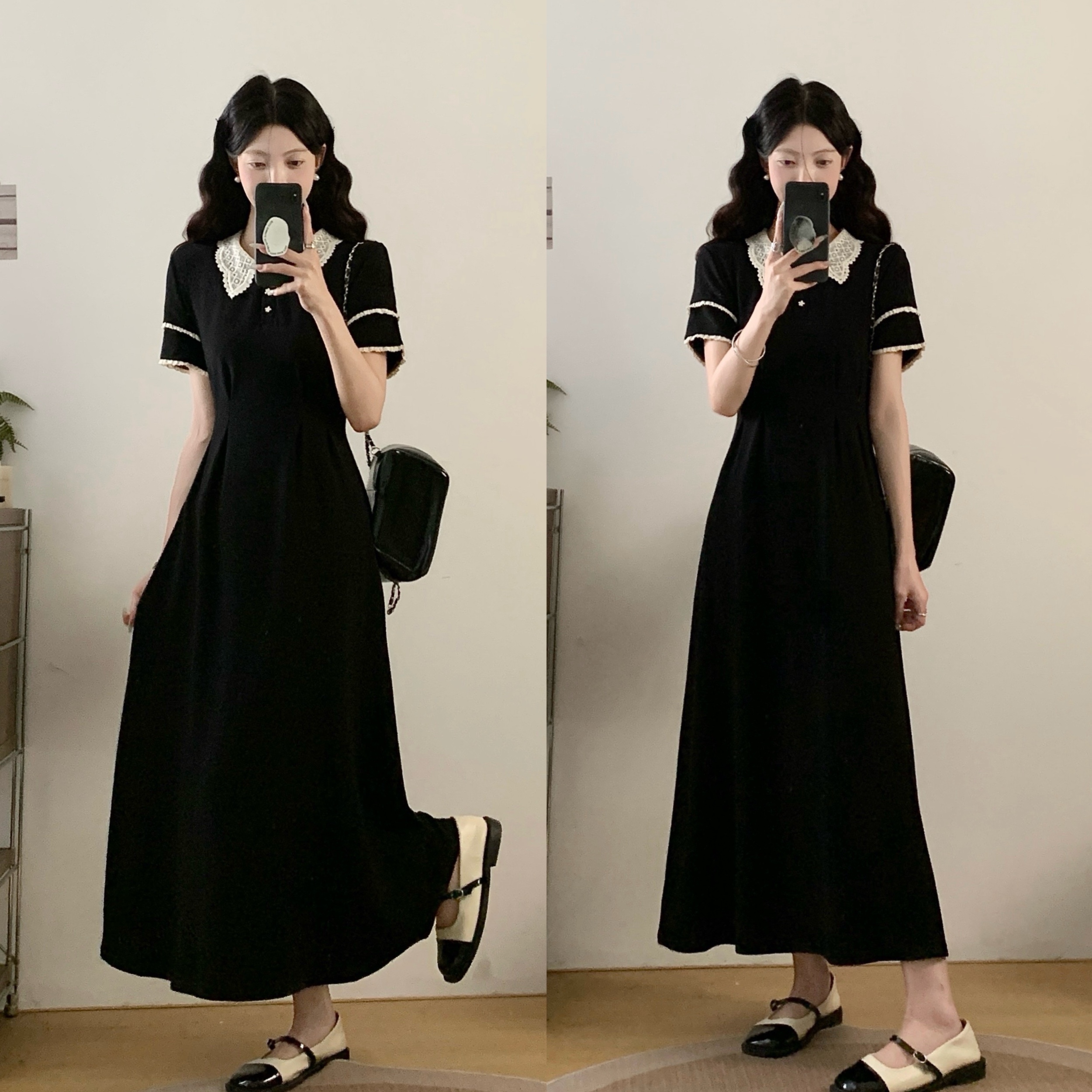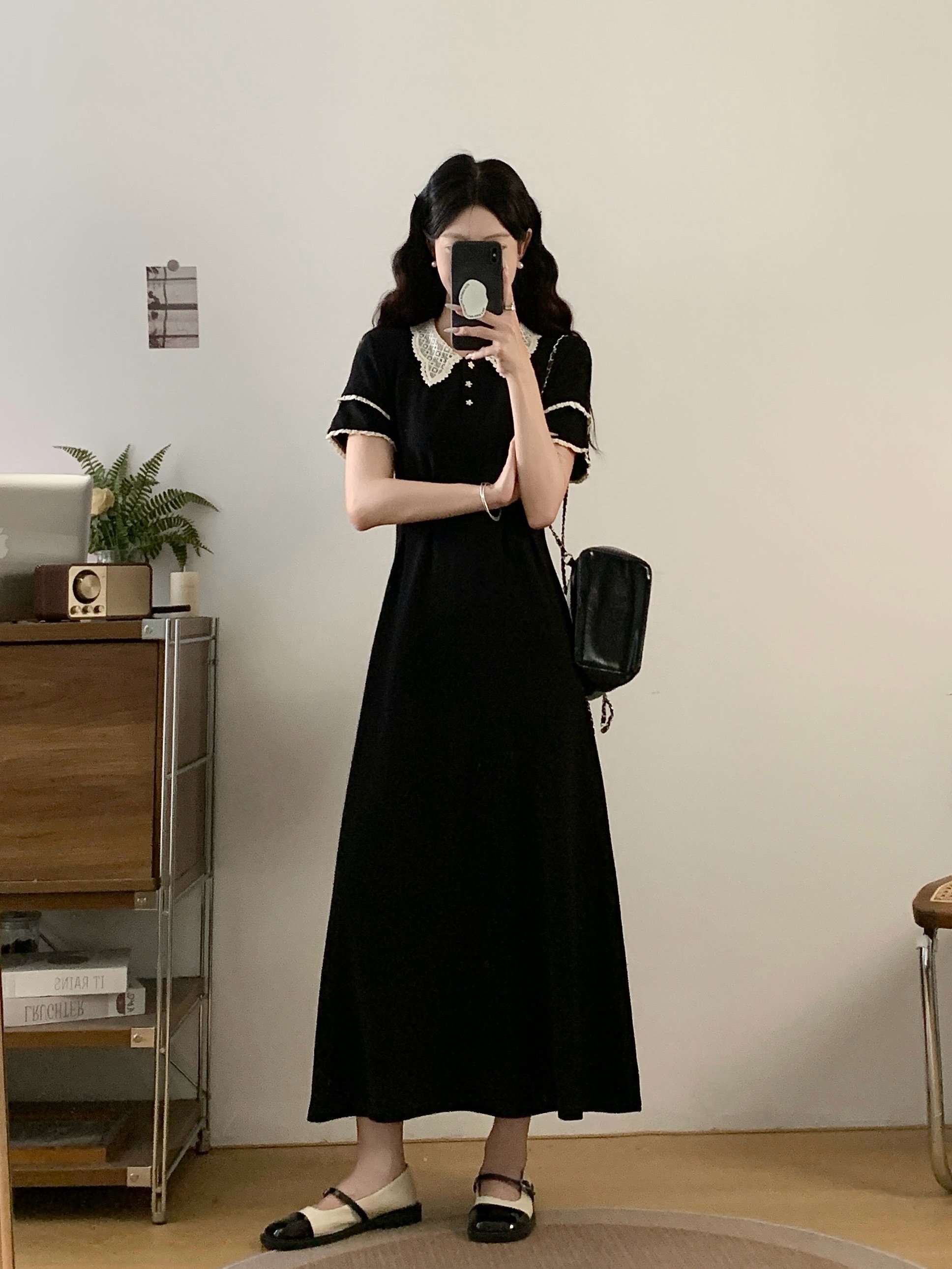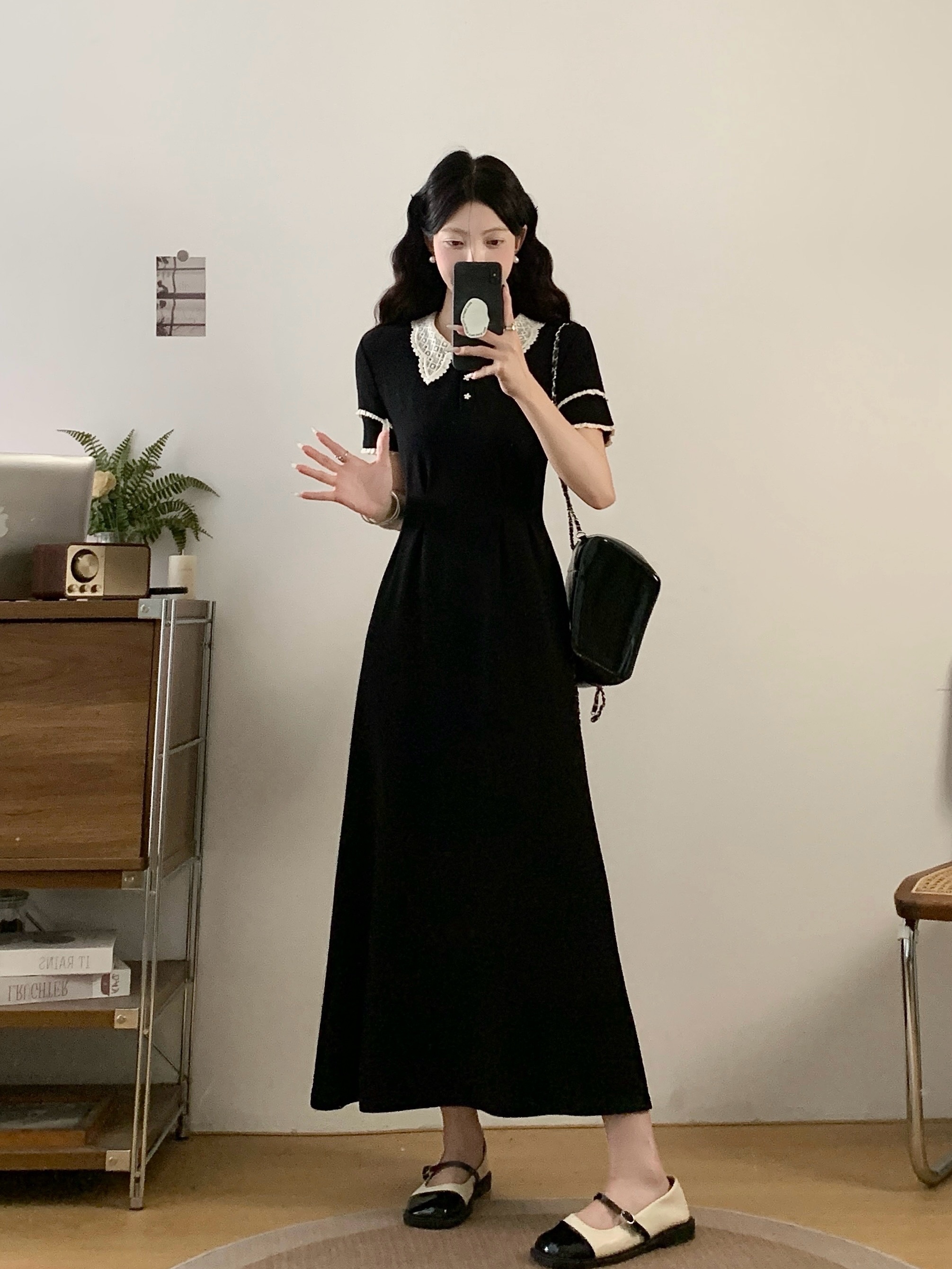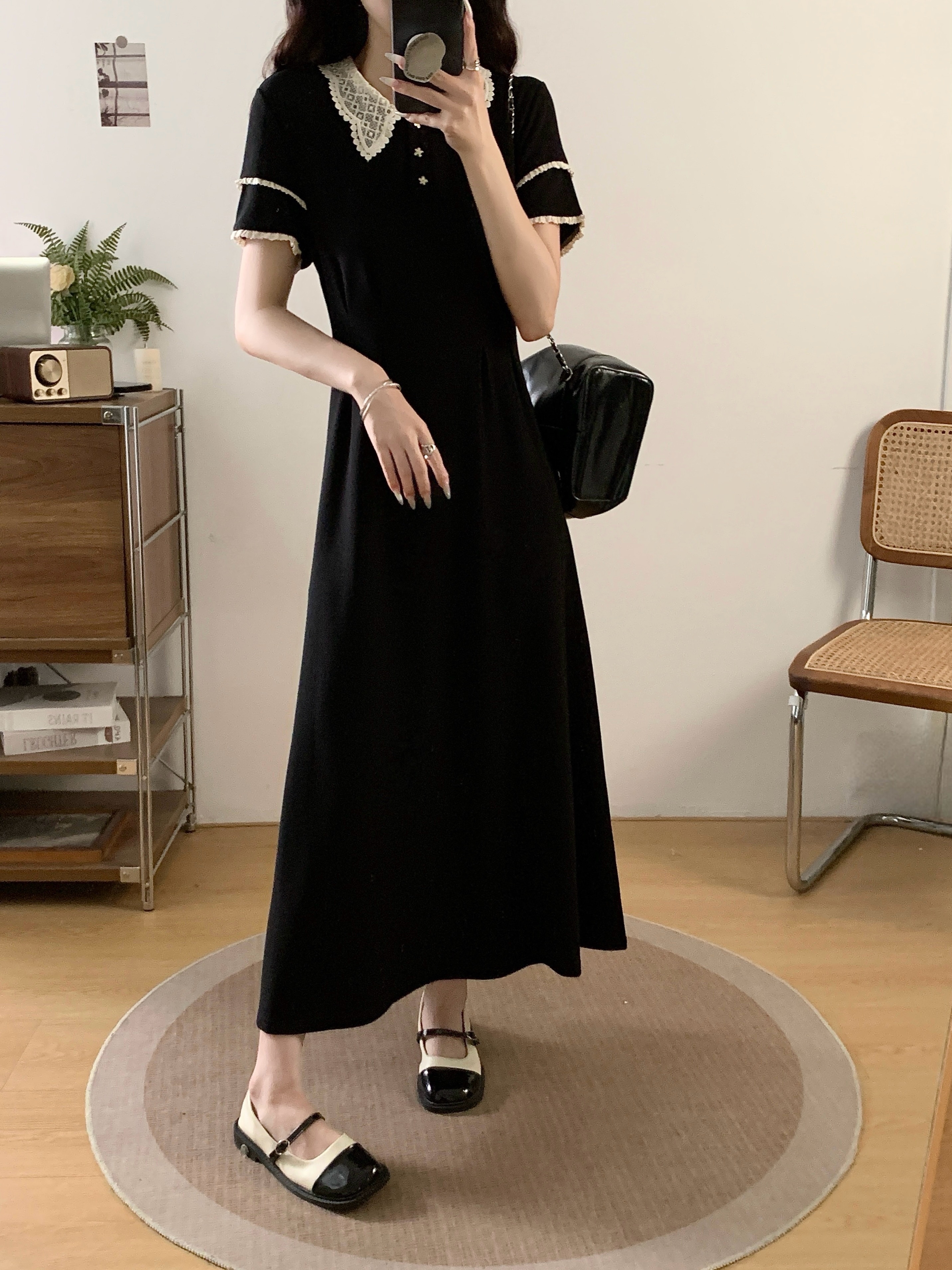 MY14362# 大码女装夏季新款法式休闲polo领蕾丝拼接A字连衣裙女裝貨源服裝批發