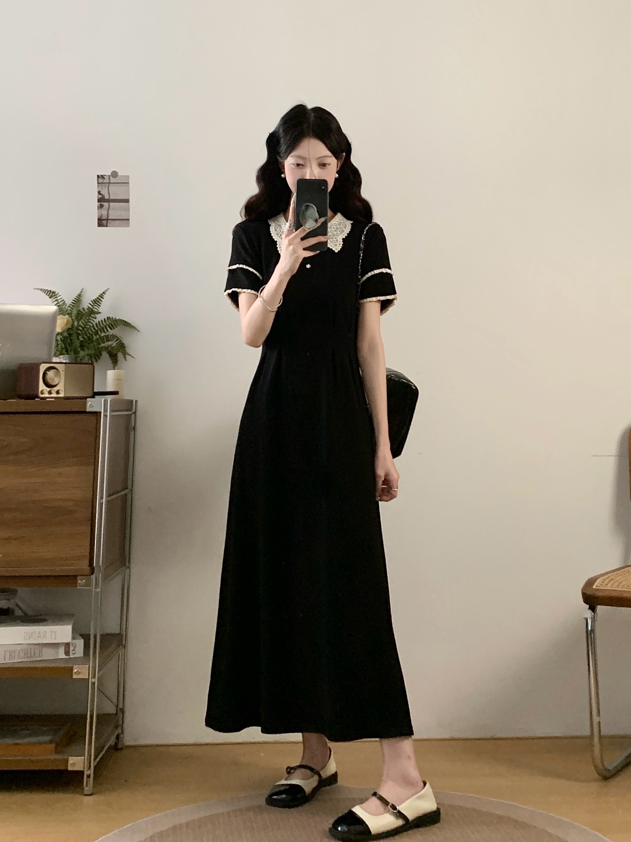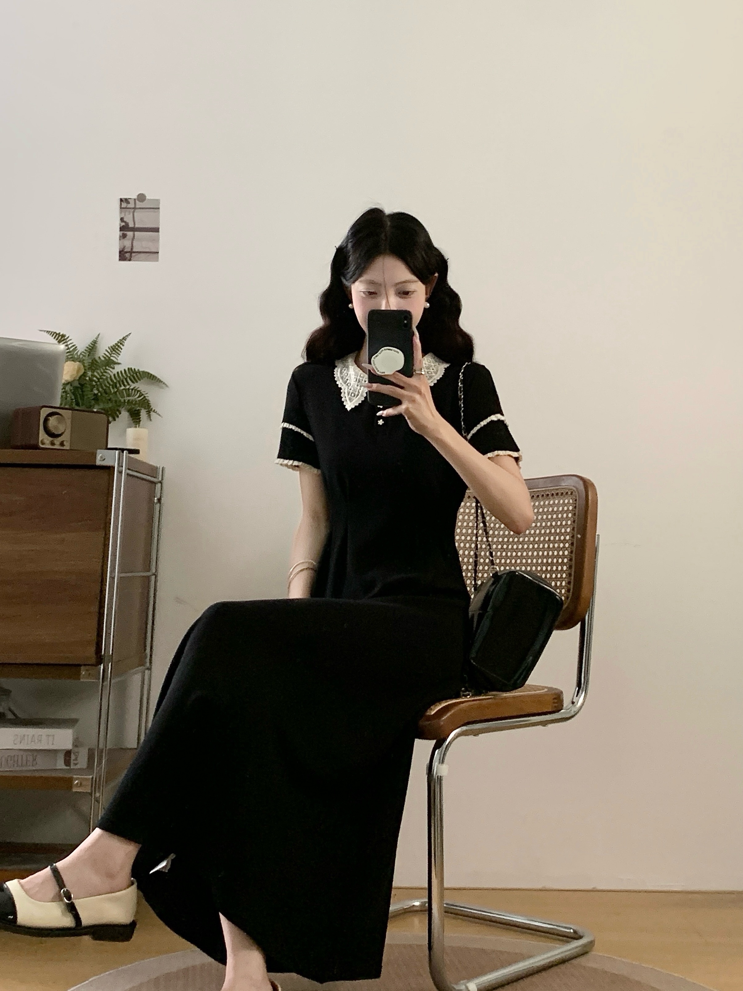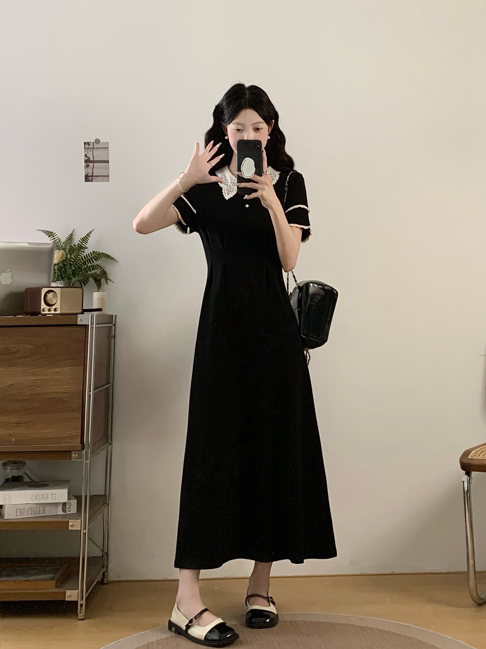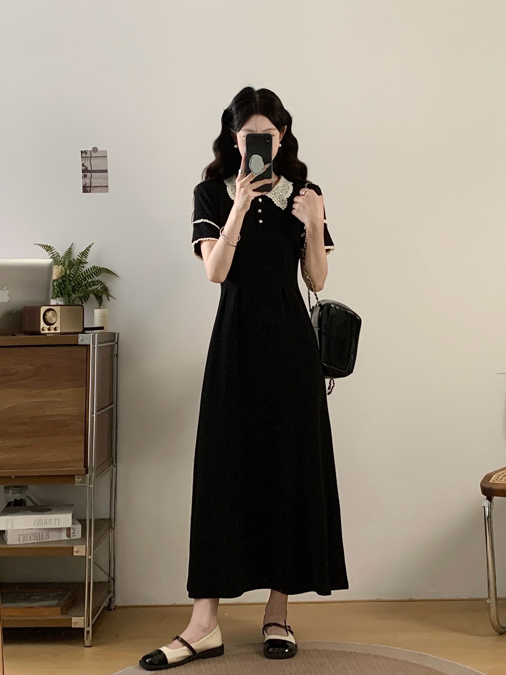 MY14362# 大码女装夏季新款法式休闲polo领蕾丝拼接A字连衣裙女裝貨源服裝批發
