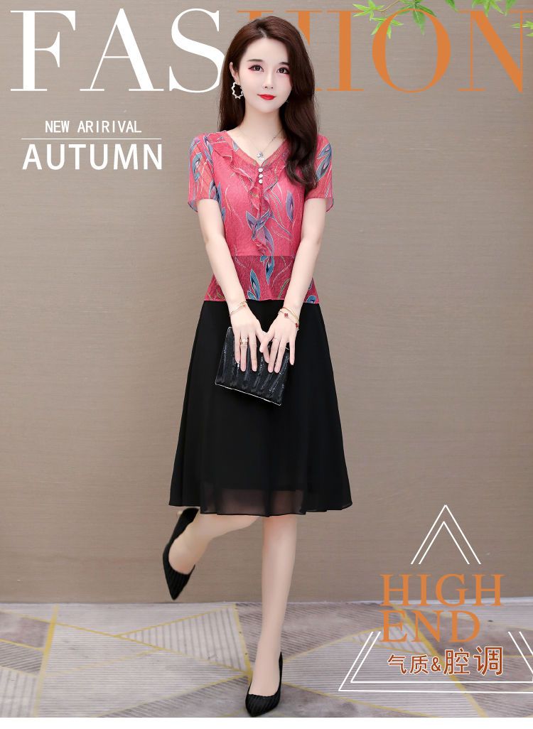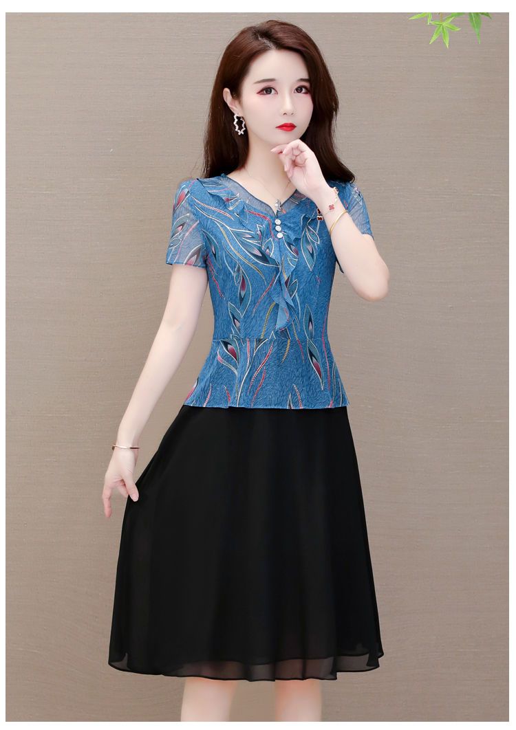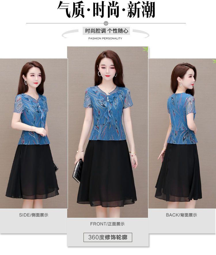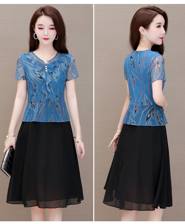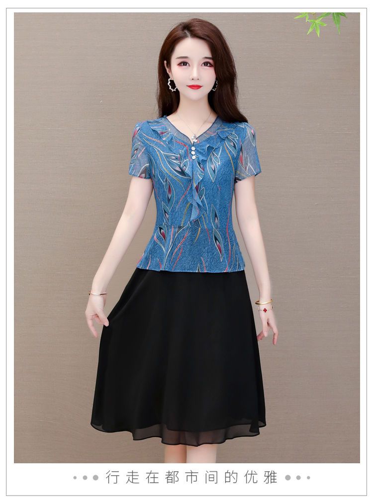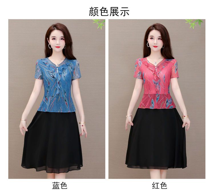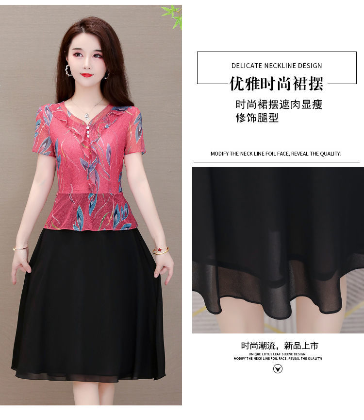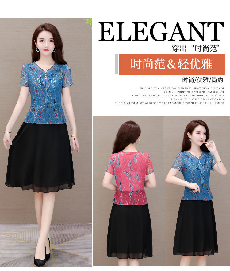MY14390# 贵夫人连衣裙女夏装新款大码高贵气质假两件雪纺裙子女裝貨源服裝批發