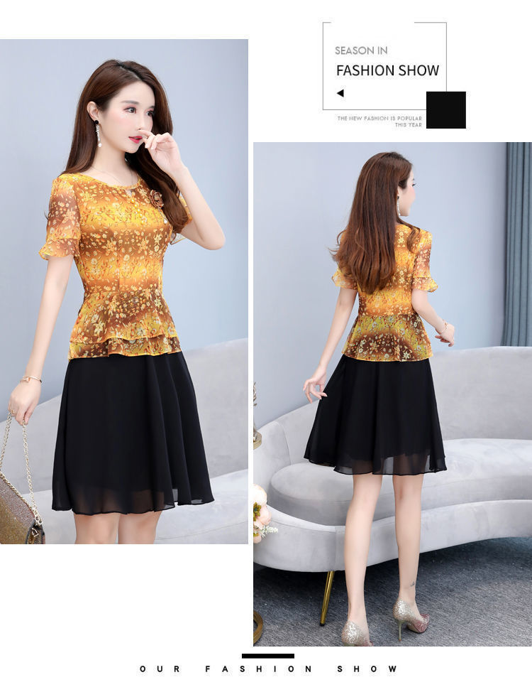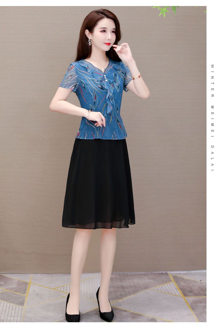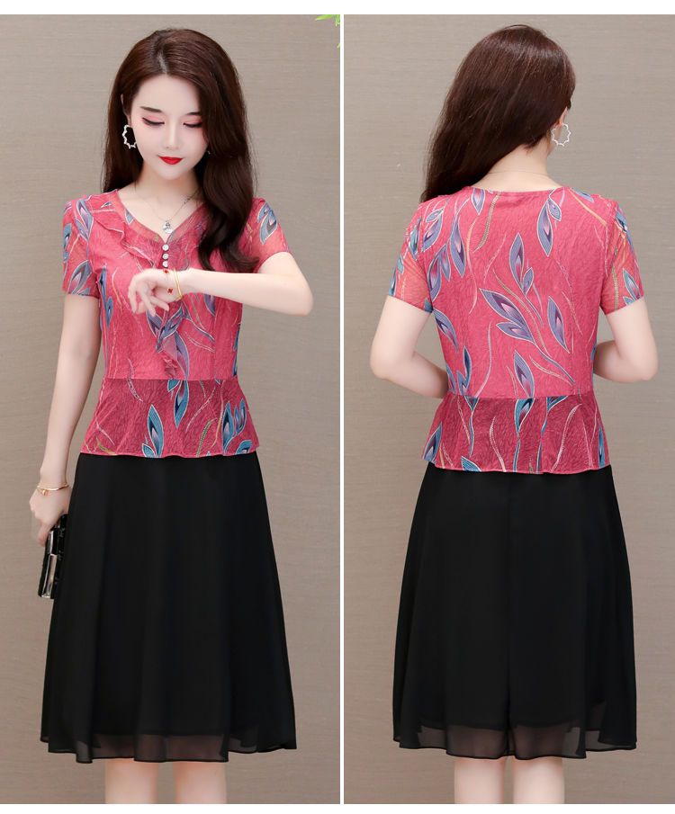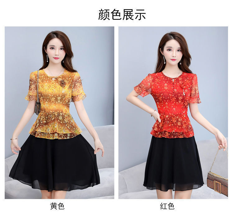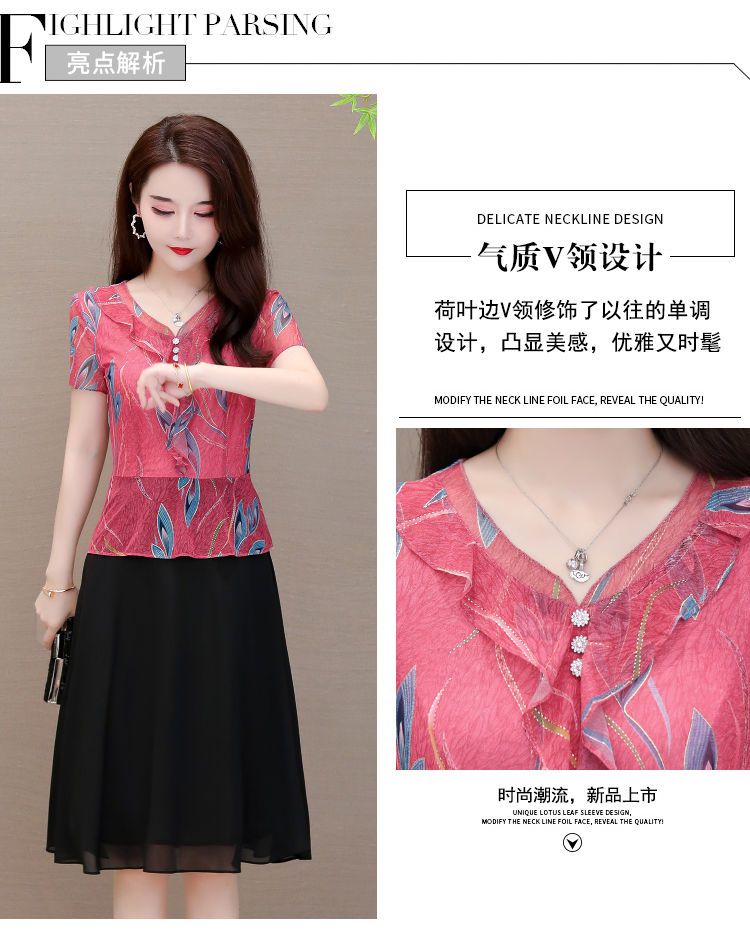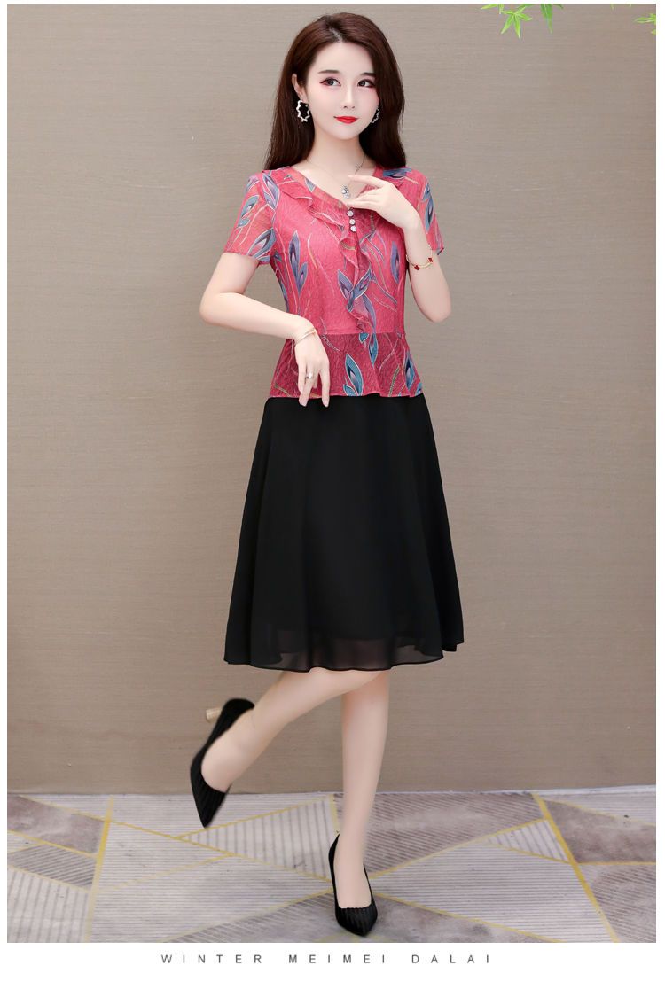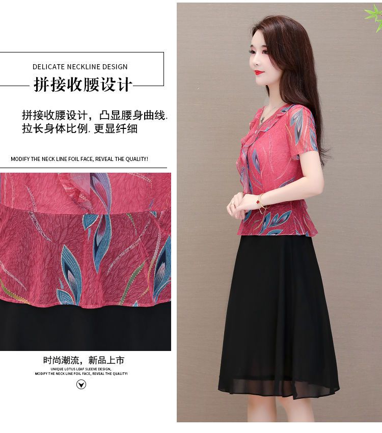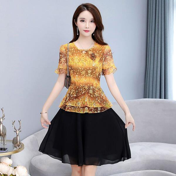 MY14390# 贵夫人连衣裙女夏装新款大码高贵气质假两件雪纺裙子女裝貨源服裝批發