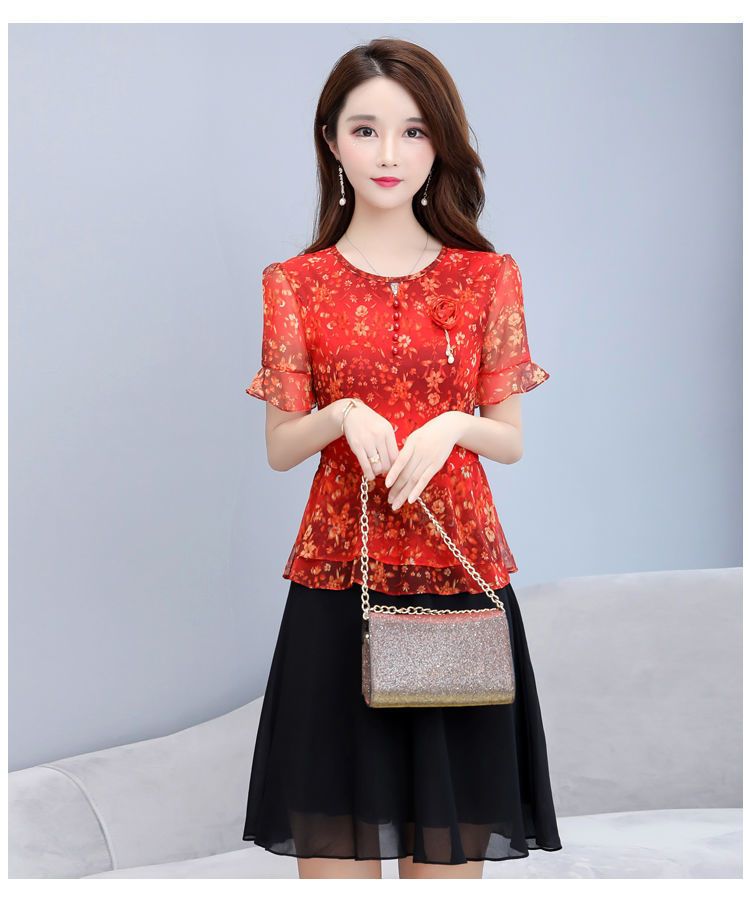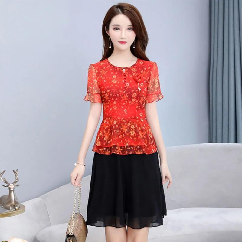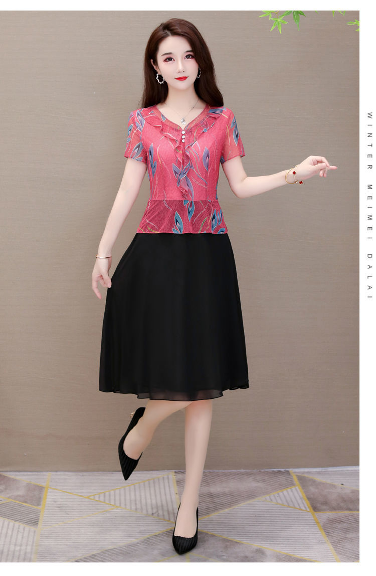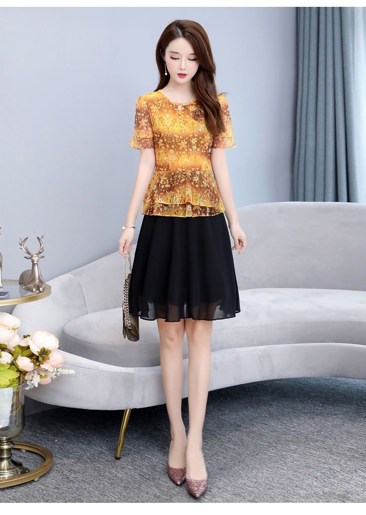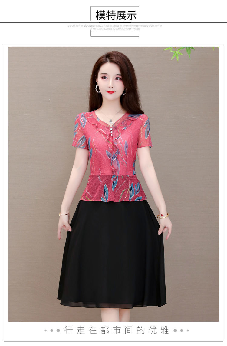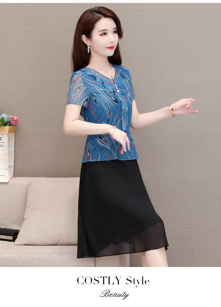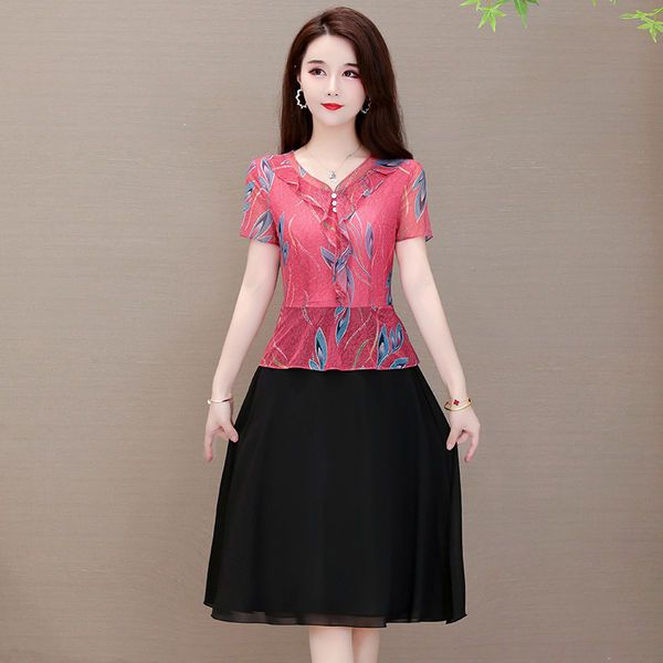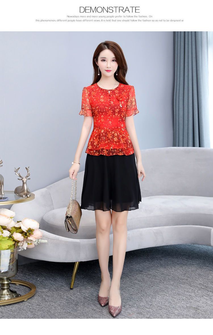 MY14390# 贵夫人连衣裙女夏装新款大码高贵气质假两件雪纺裙子女裝貨源服裝批發
