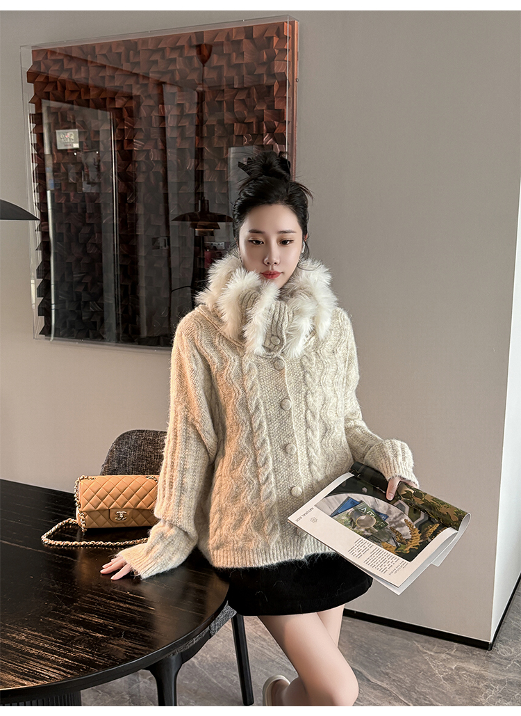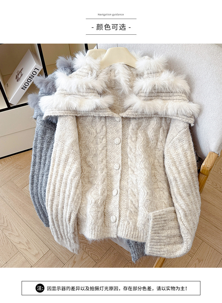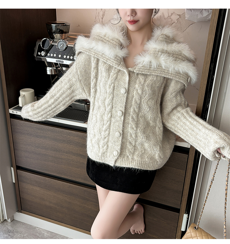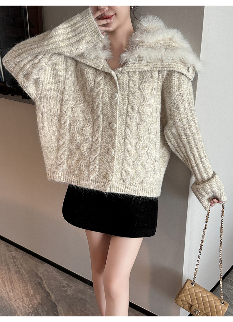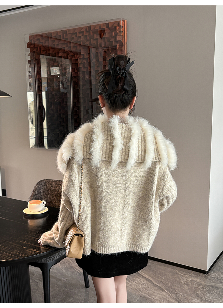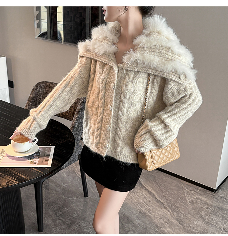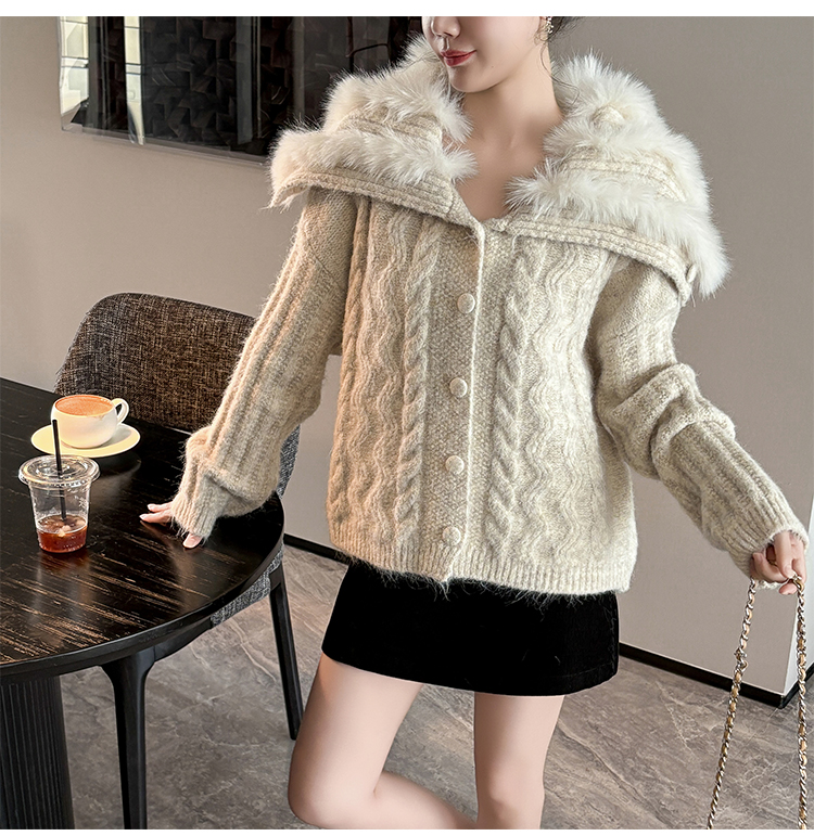 MY14462# 羊驼毛衣设计感海军领麻花软糯针织衫女开衫加厚毛领外套上衣女裝貨源服裝批發