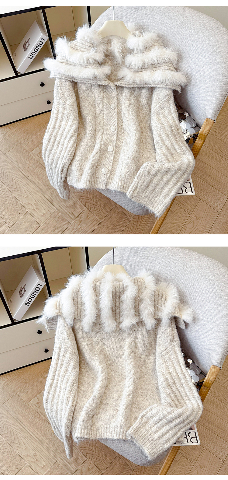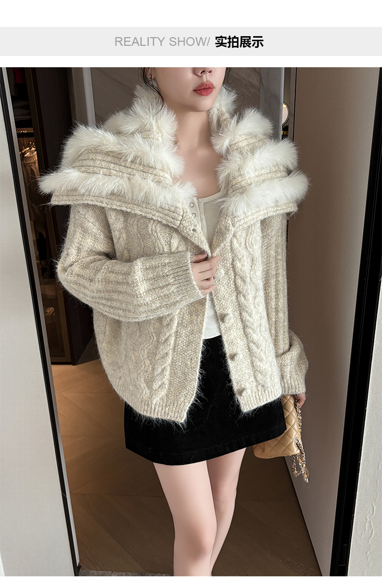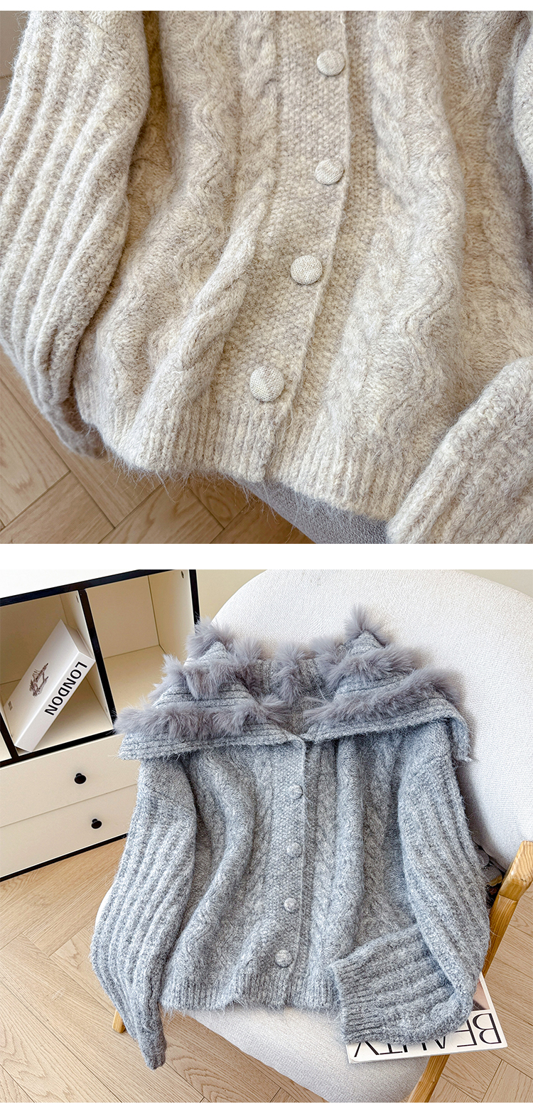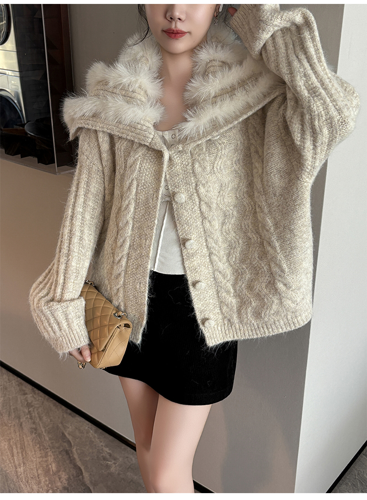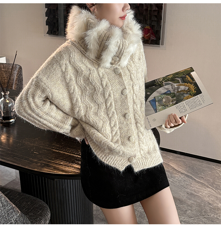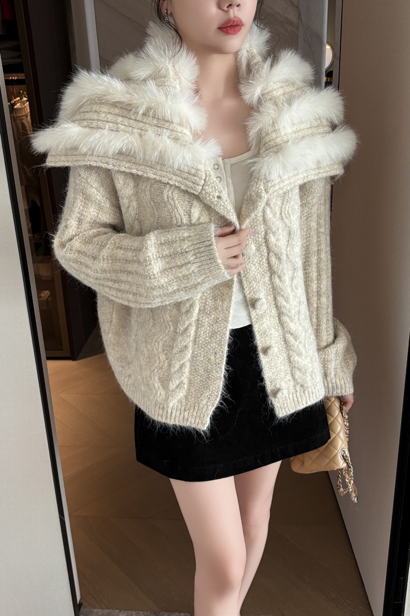MY14462# 羊驼毛衣设计感海军领麻花软糯针织衫女开衫加厚毛领外套上衣女裝貨源服裝批發