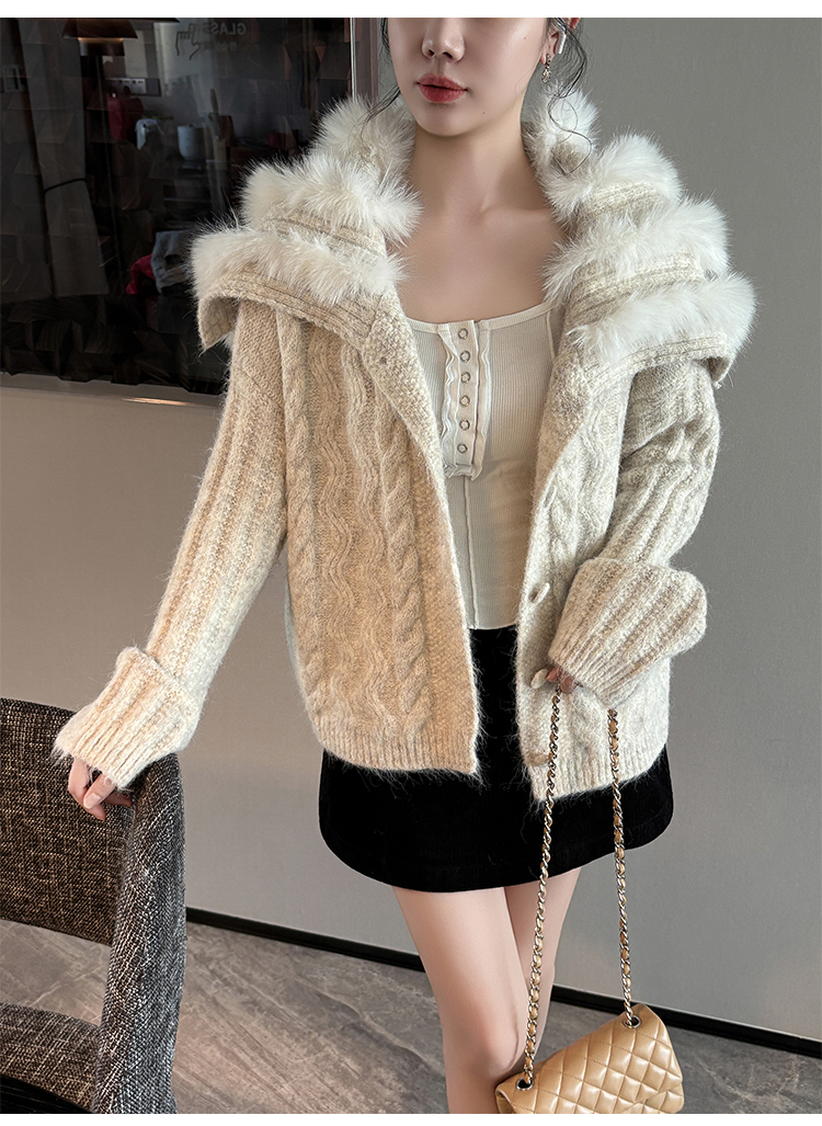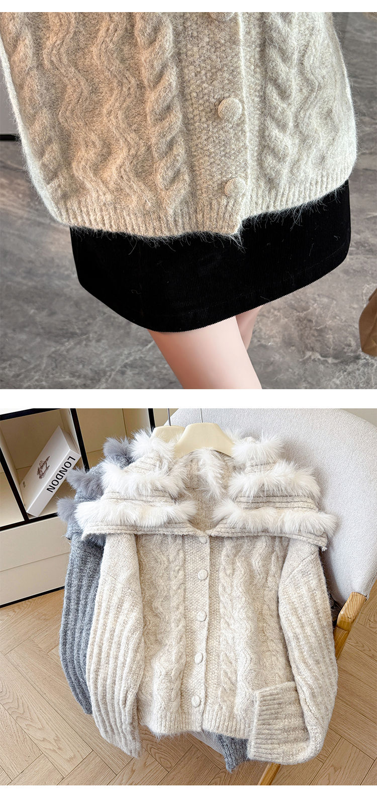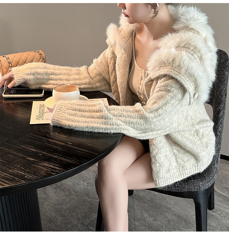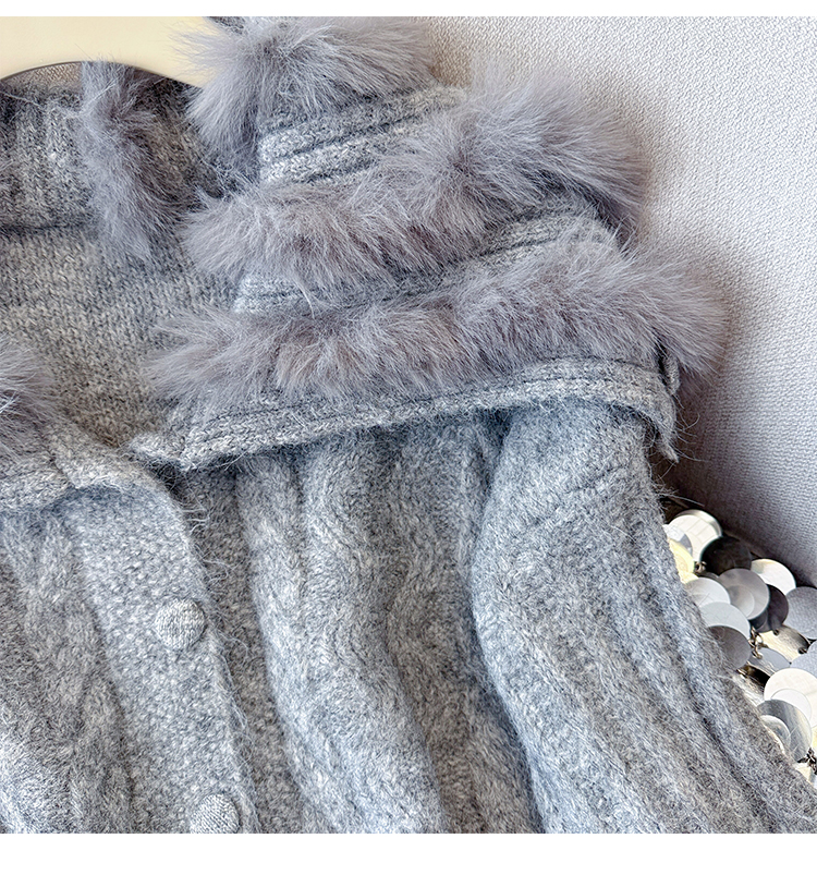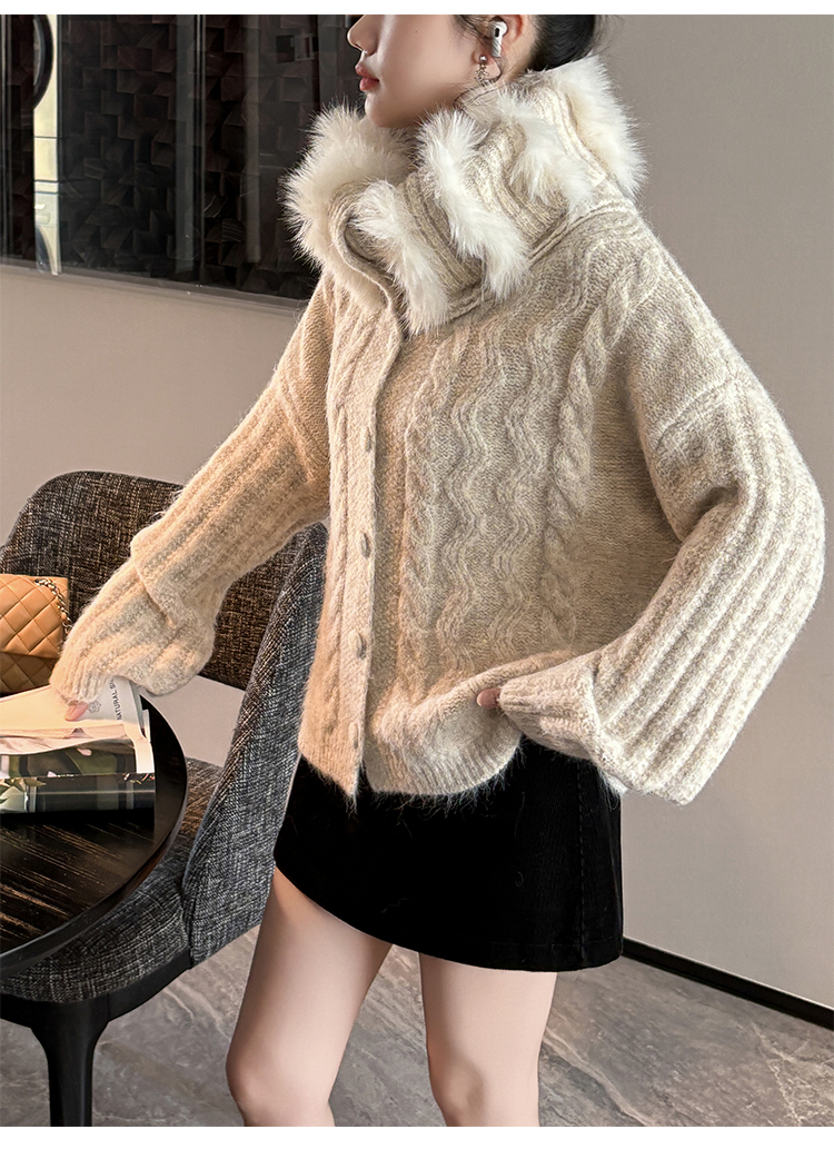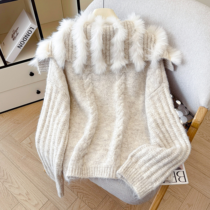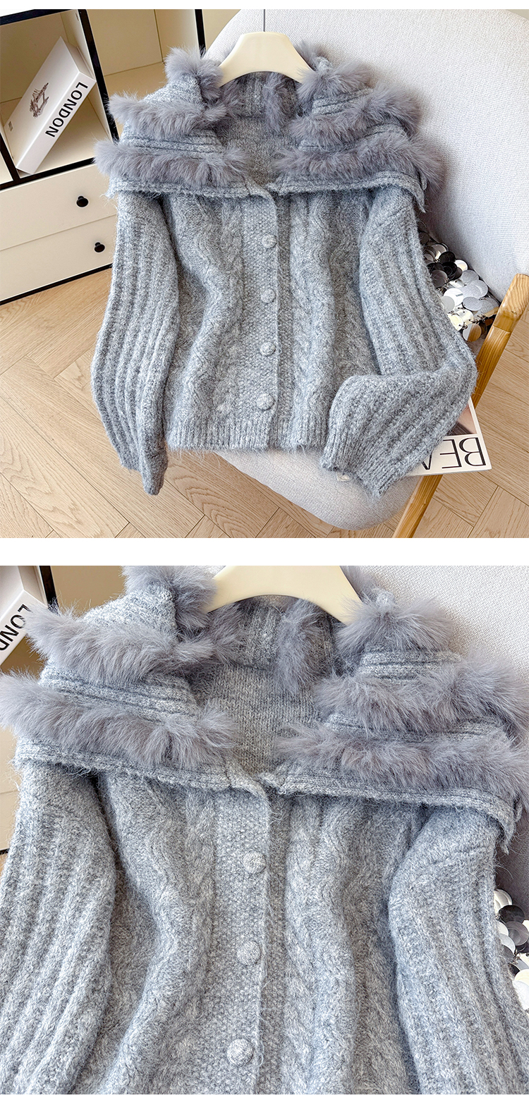 MY14462# 羊驼毛衣设计感海军领麻花软糯针织衫女开衫加厚毛领外套上衣女裝貨源服裝批發
