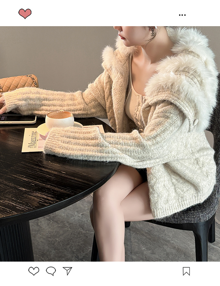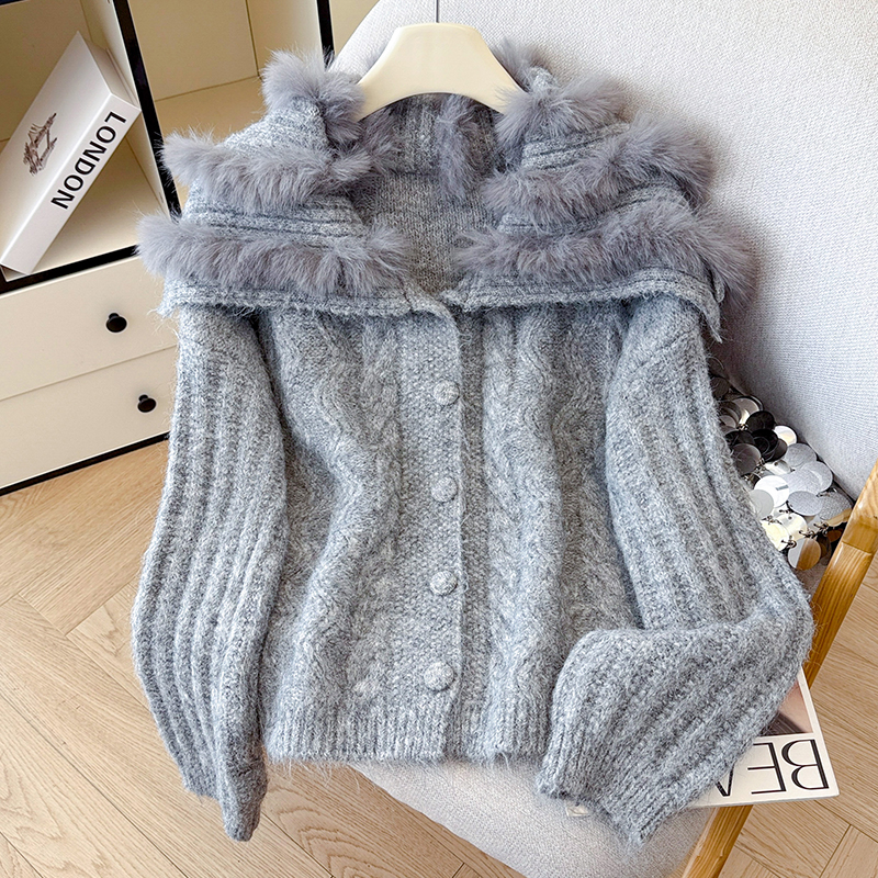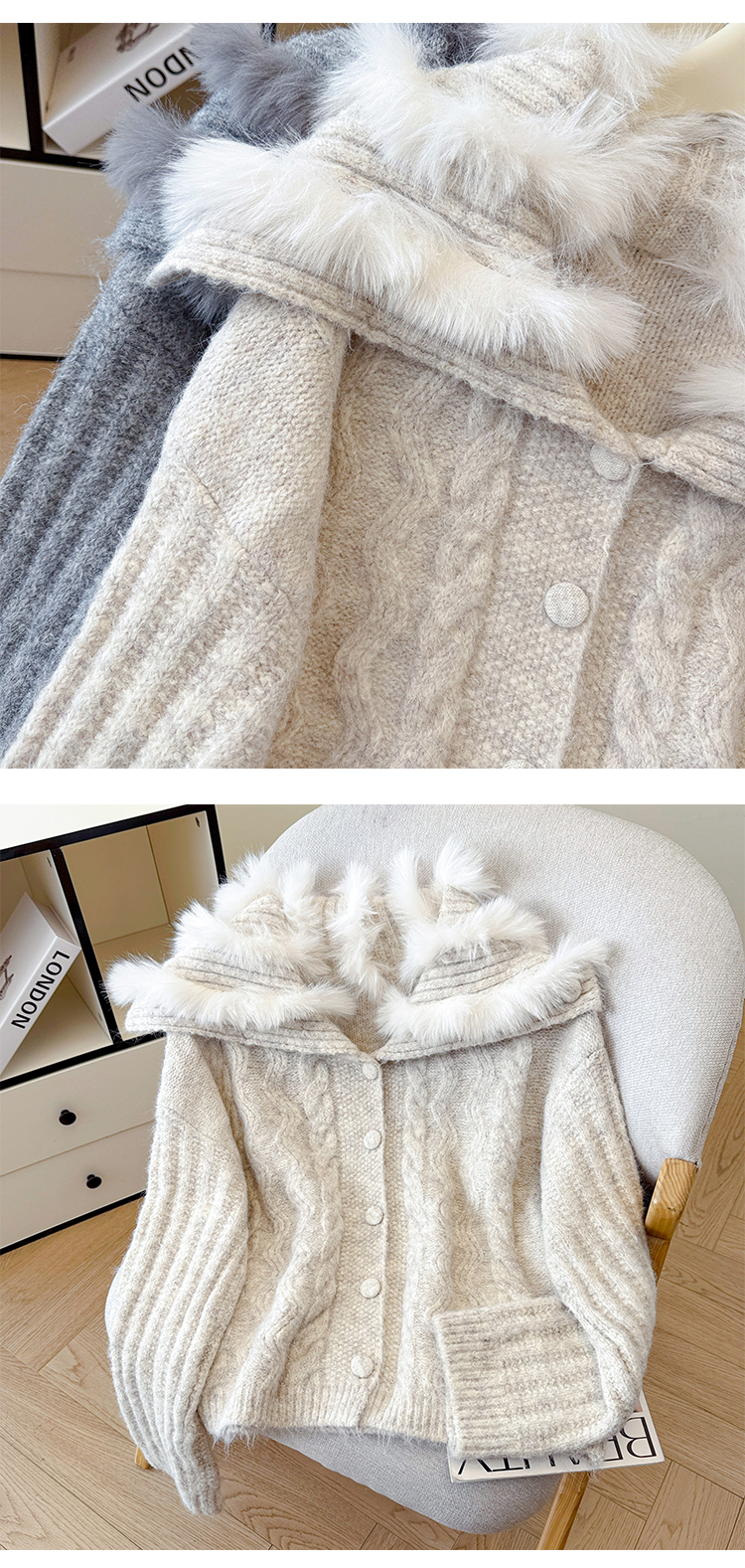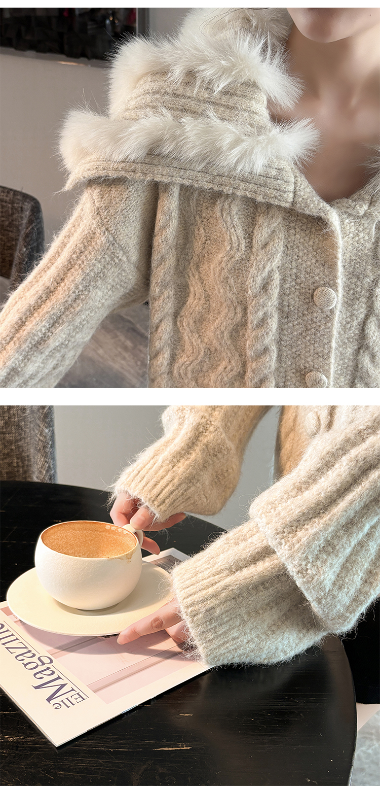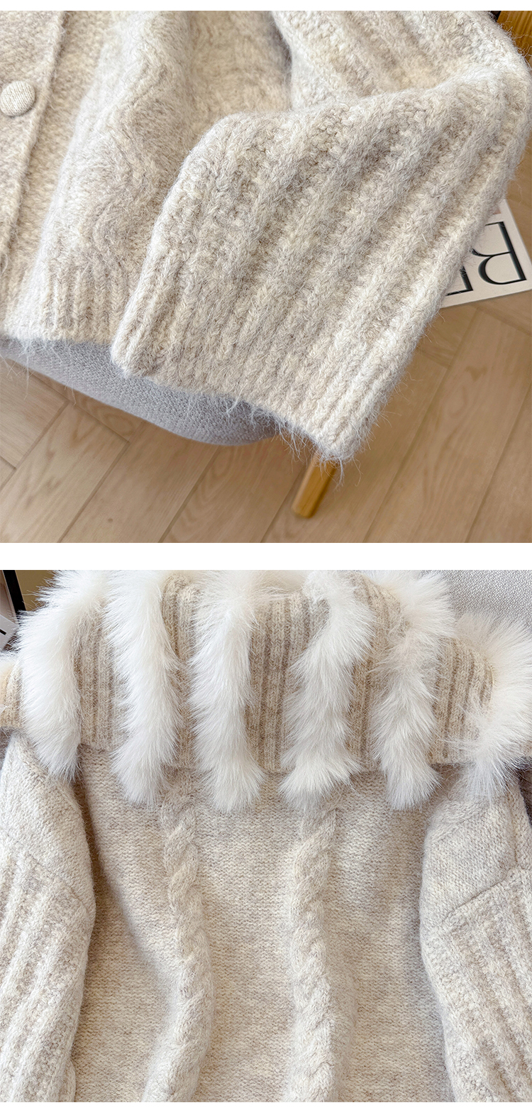MY14462# 羊驼毛衣设计感海军领麻花软糯针织衫女开衫加厚毛领外套上衣女裝貨源服裝批發