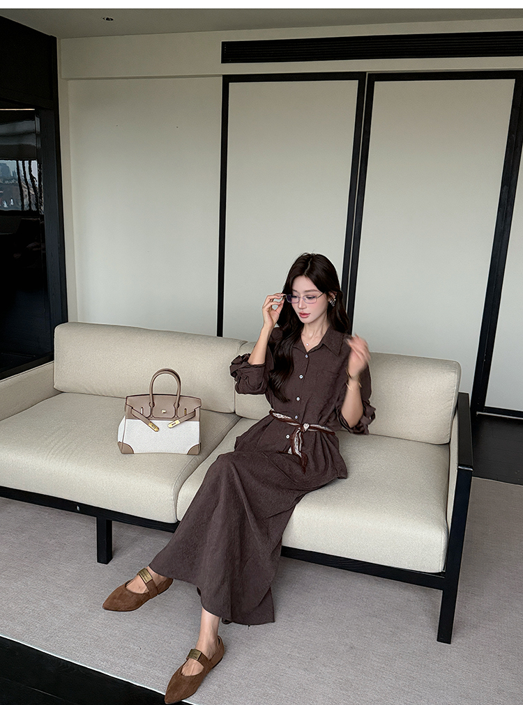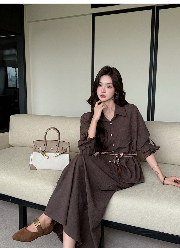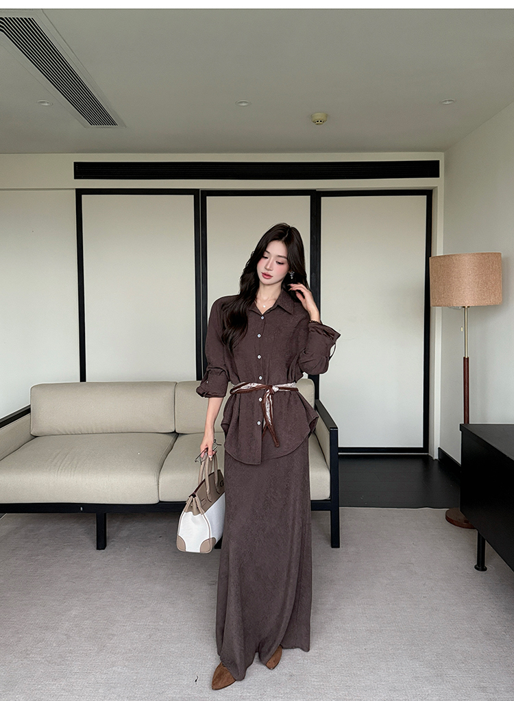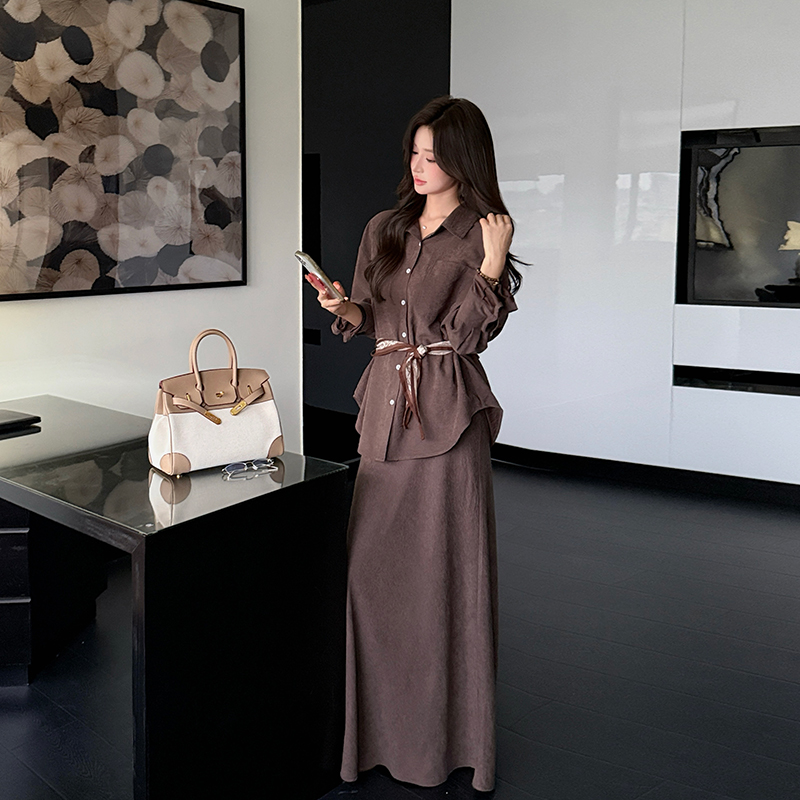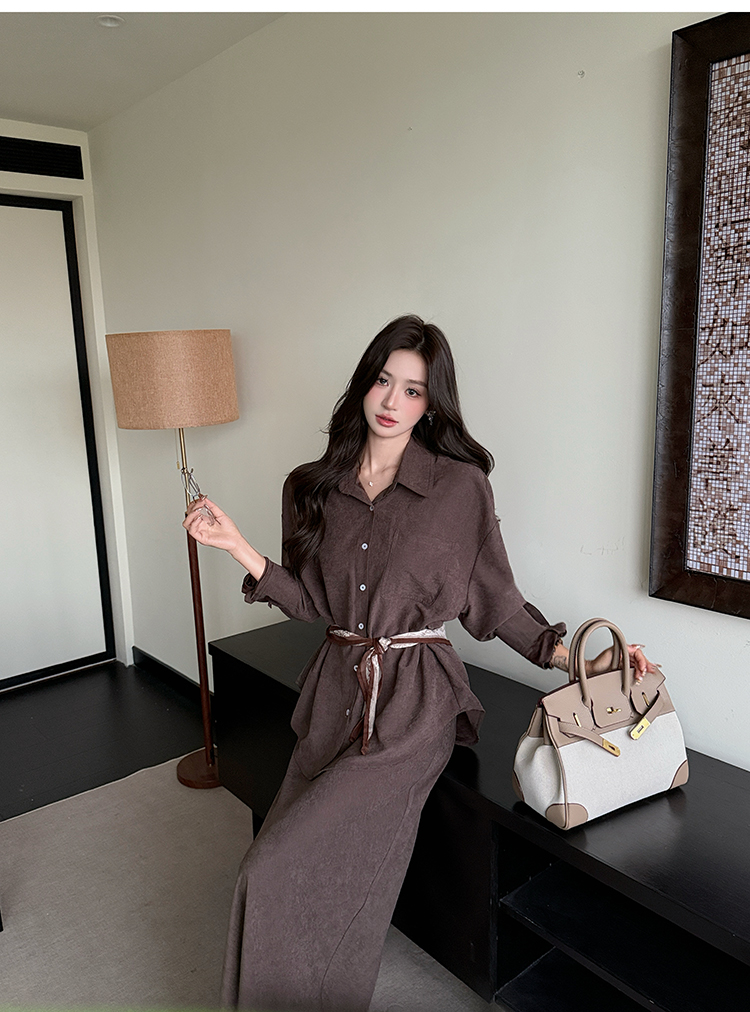 MY14466# 慵懒老钱风 高智感丝巾宽松衬衣百搭半身A字裙三件套装 送丝巾女裝貨源服裝批發