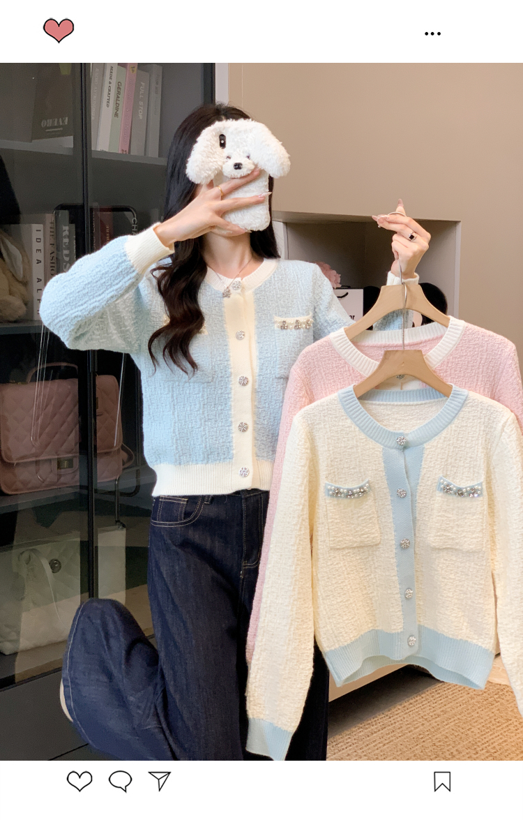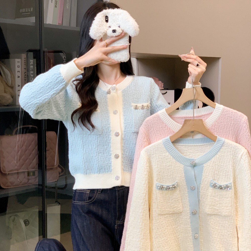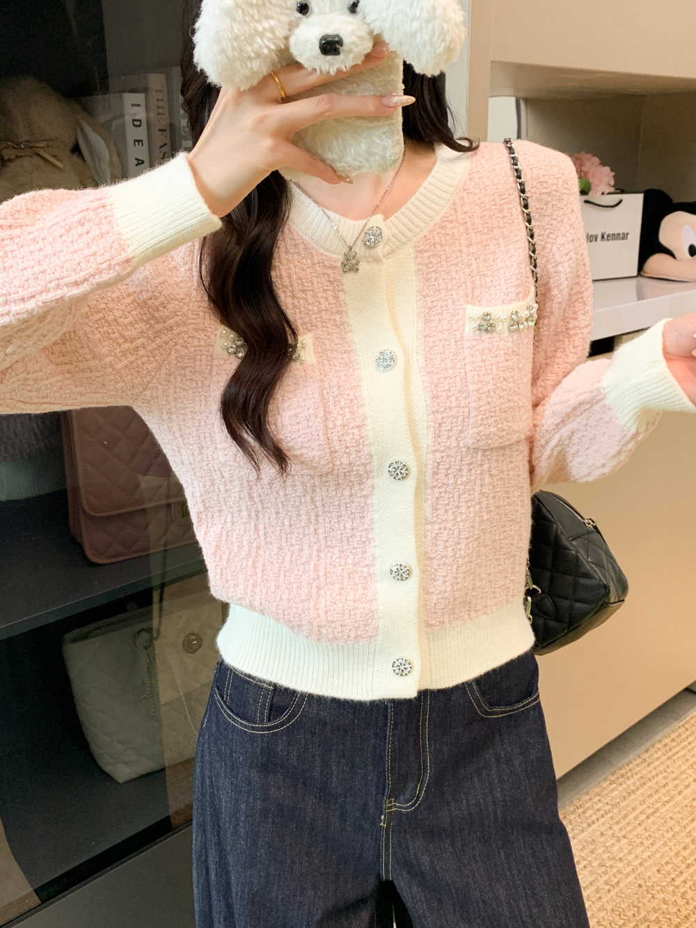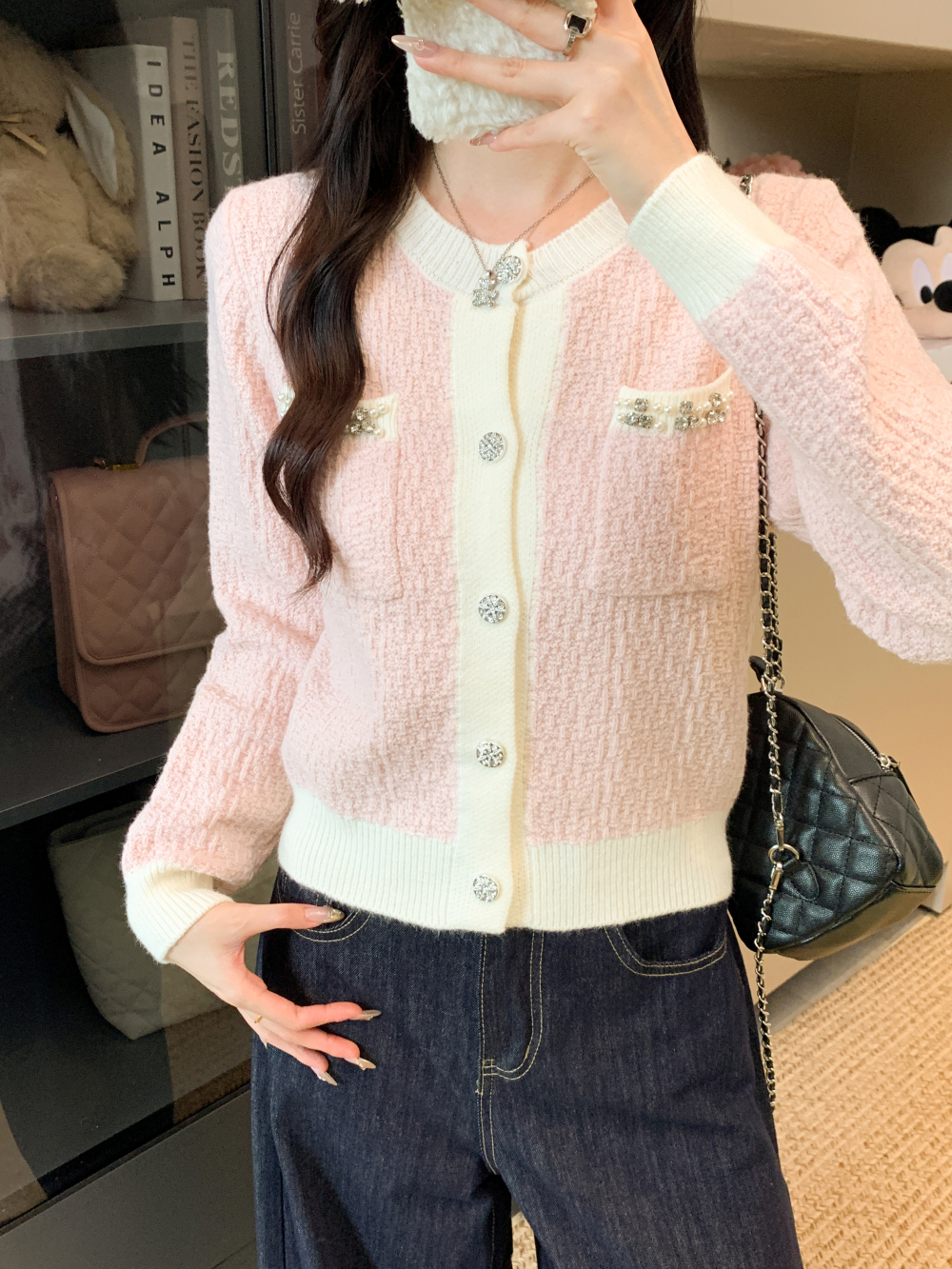 MY14469# 新款针织衫女亮钻小香风毛衣开衫外套气质女士上衣女裝貨源服裝批發