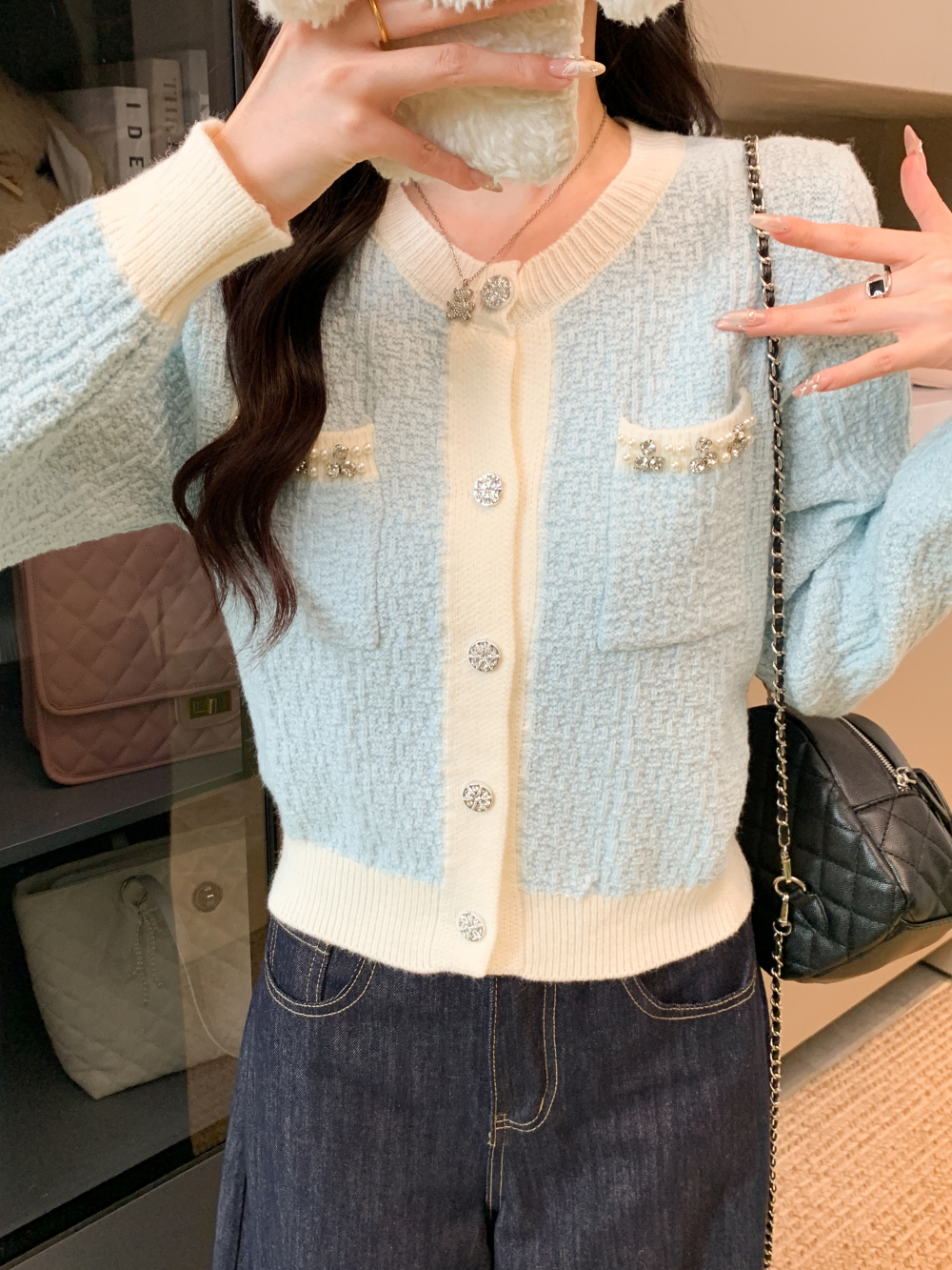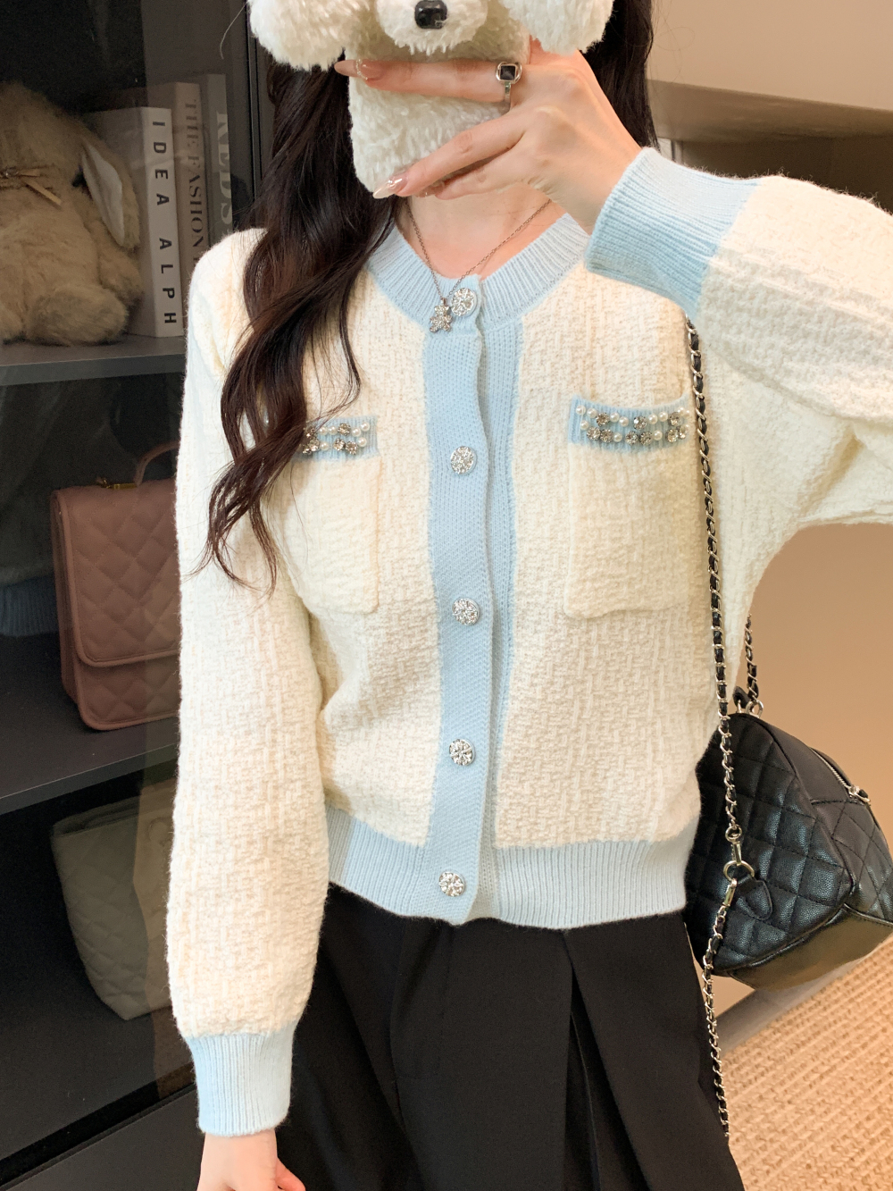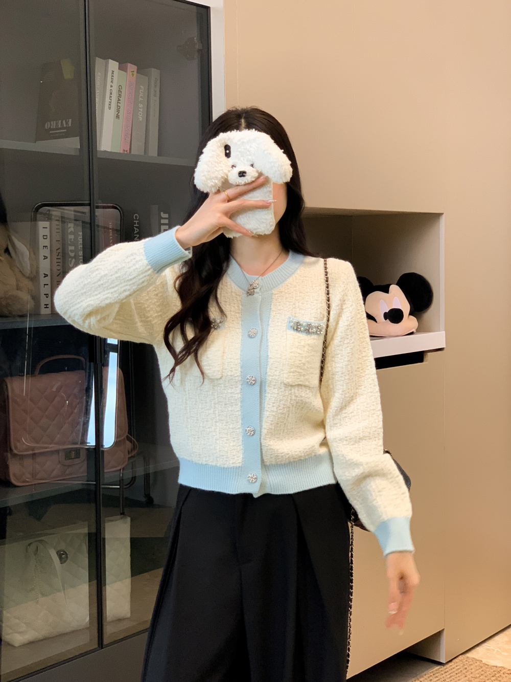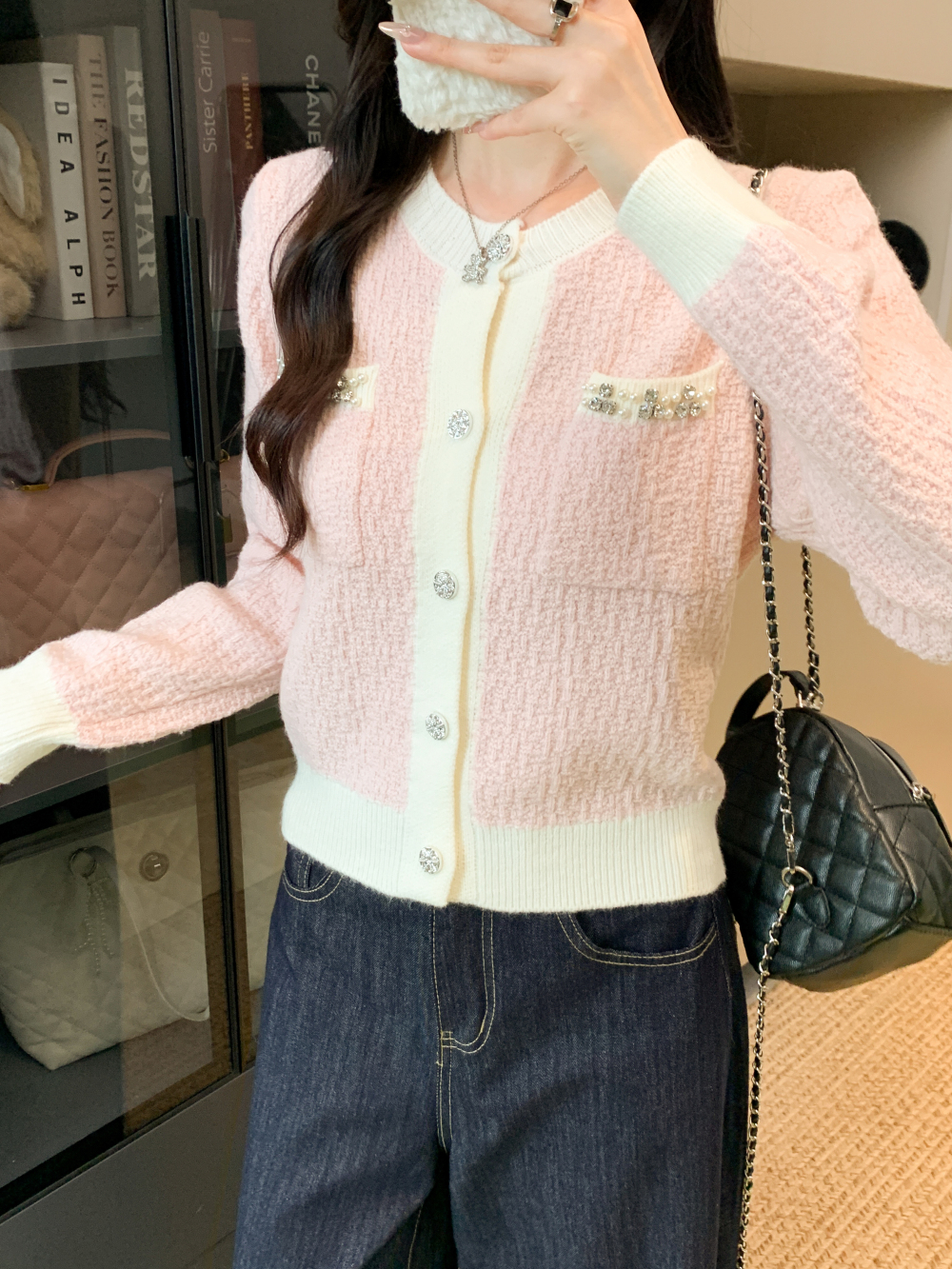 MY14469# 新款针织衫女亮钻小香风毛衣开衫外套气质女士上衣女裝貨源服裝批發