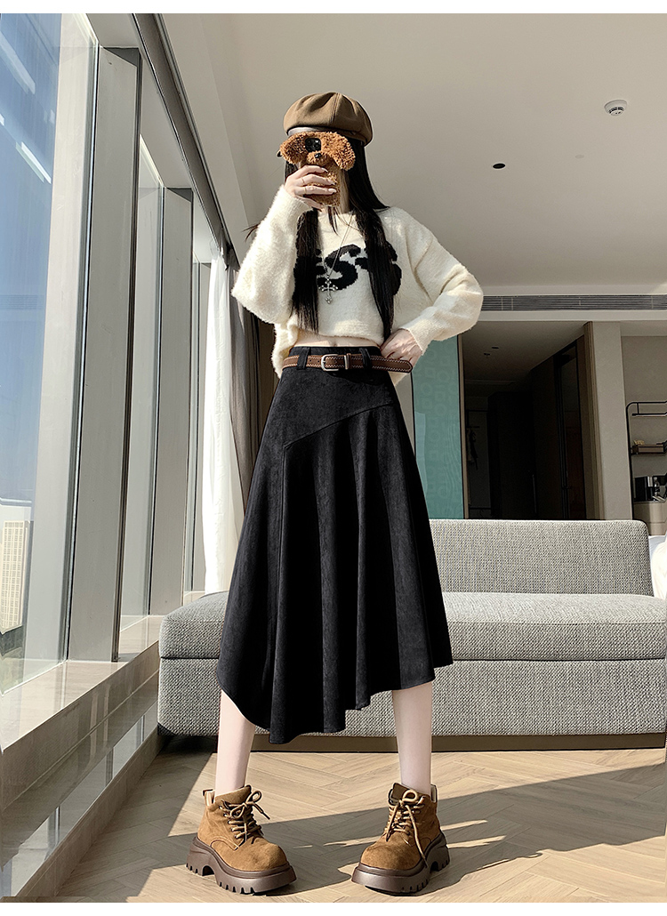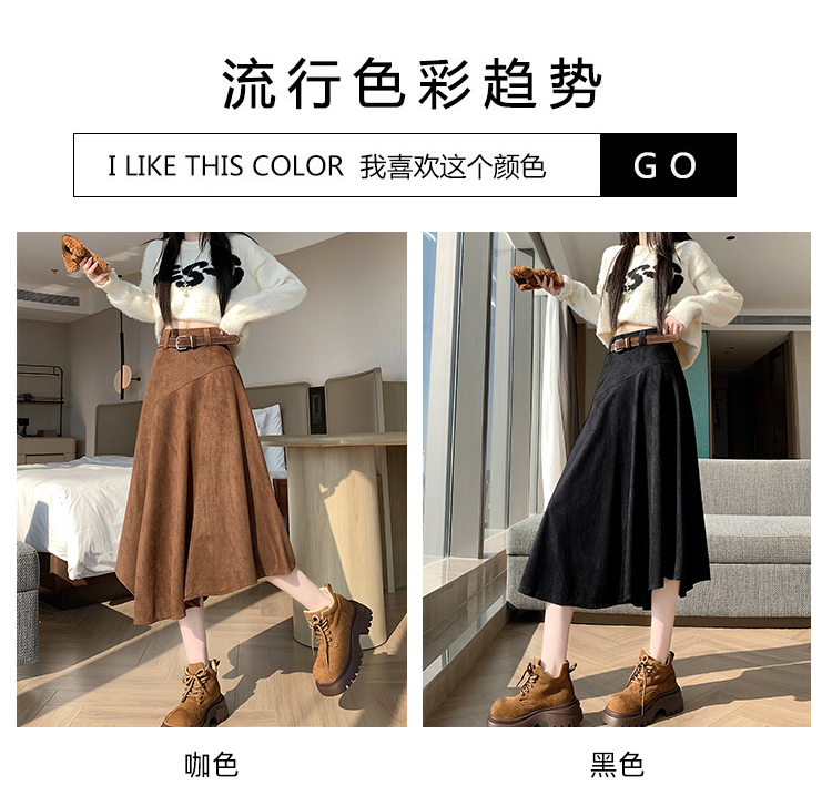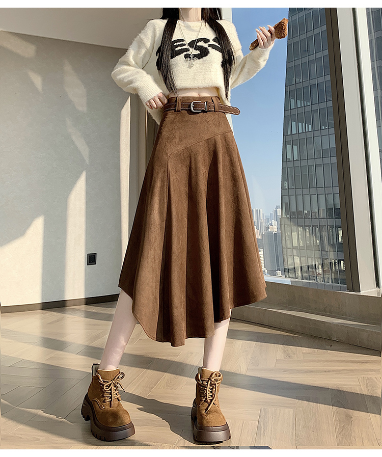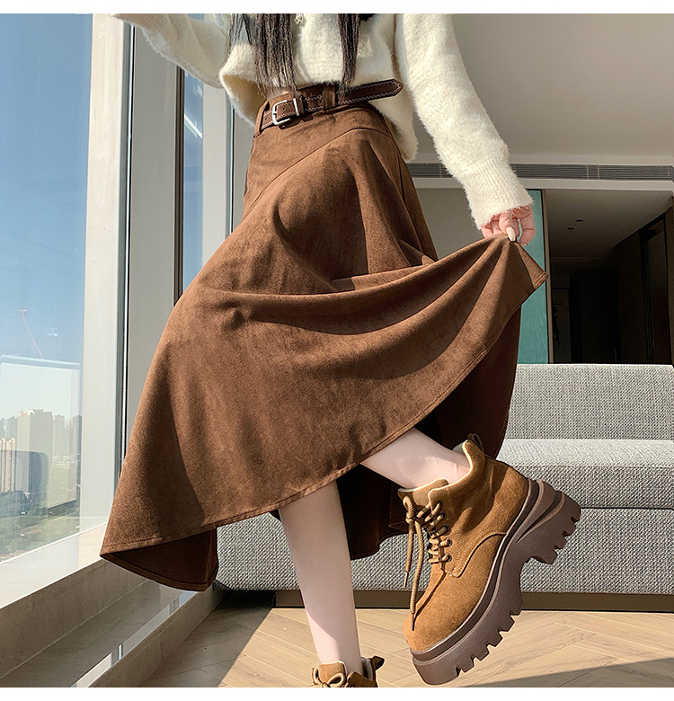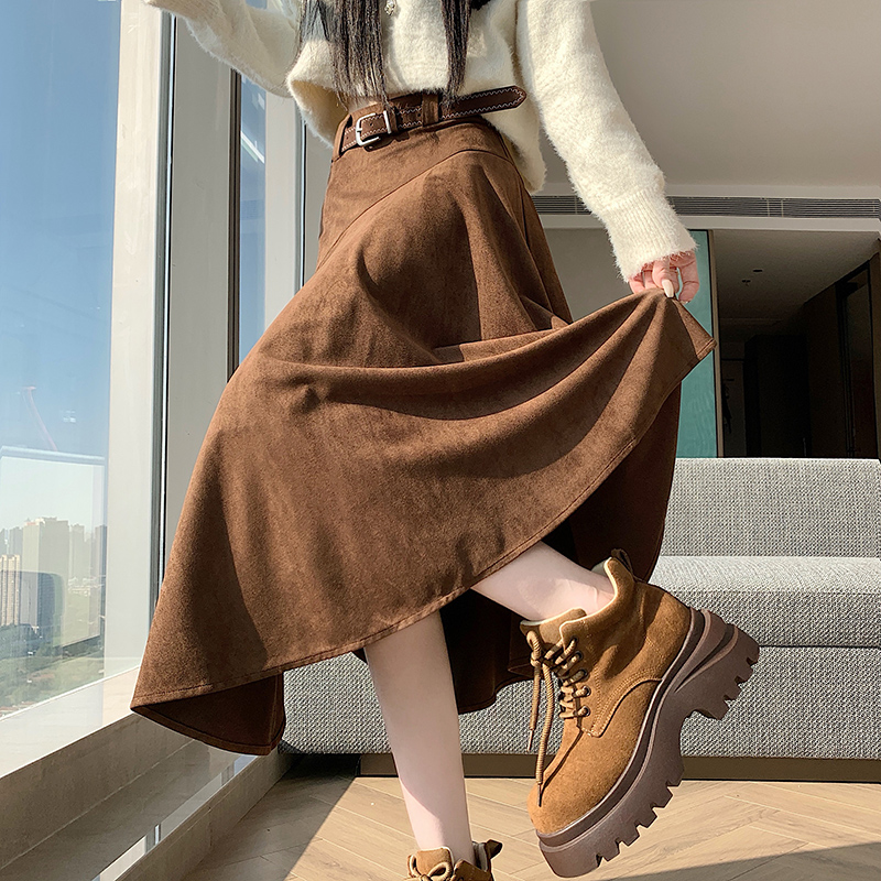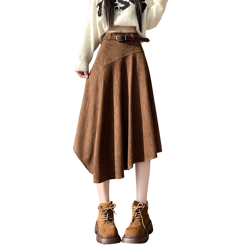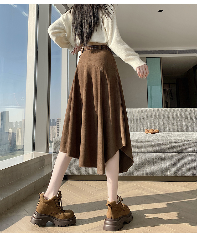 MY14472# 不规则鹿皮绒半身裙新款高腰显瘦中长款a字包臀伞裙女裝貨源服裝批發