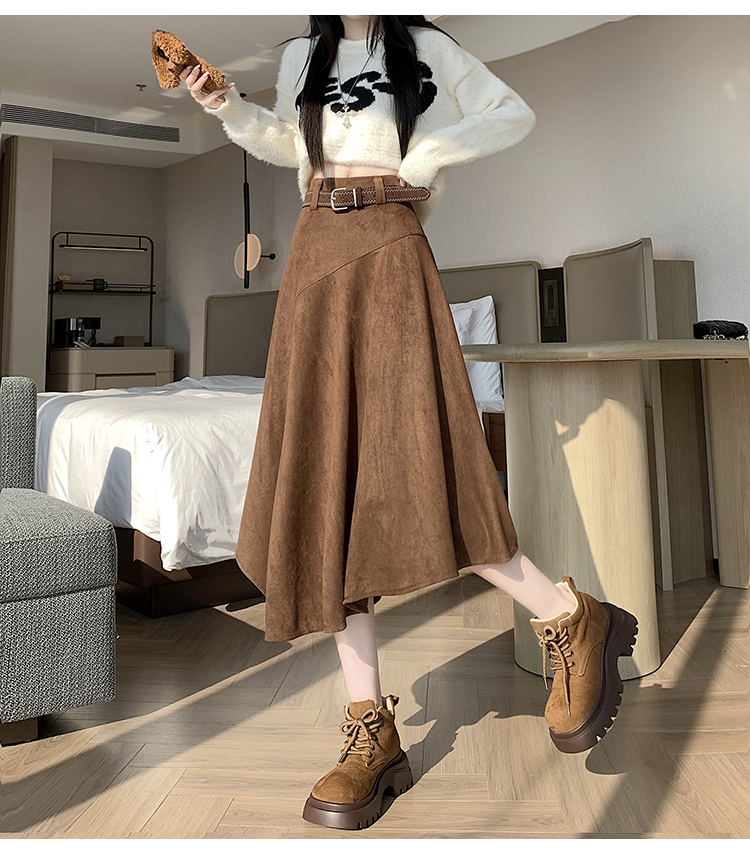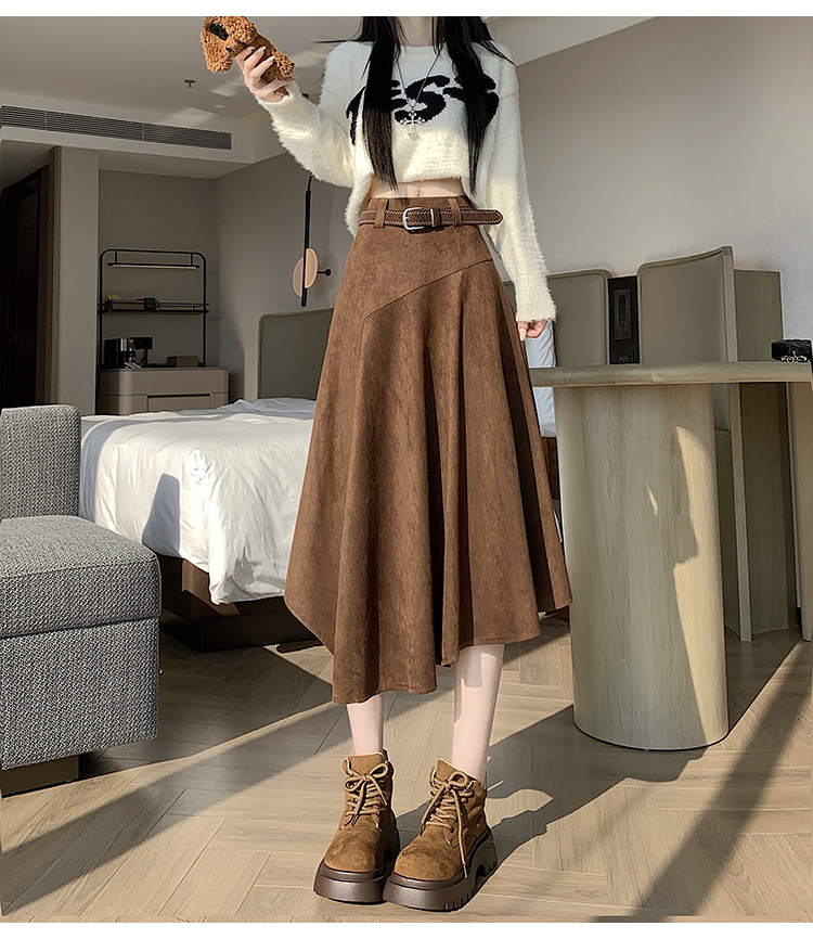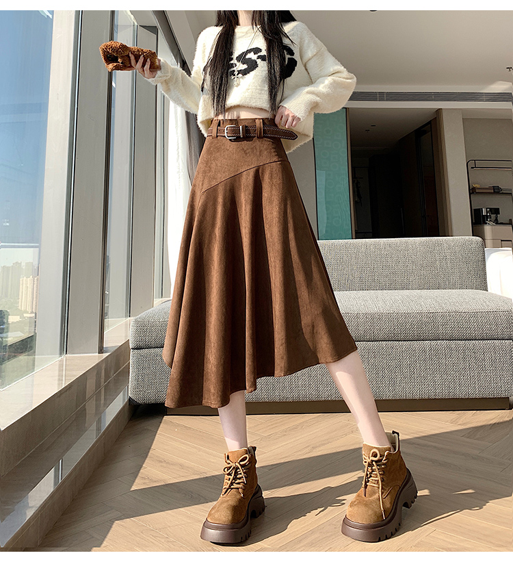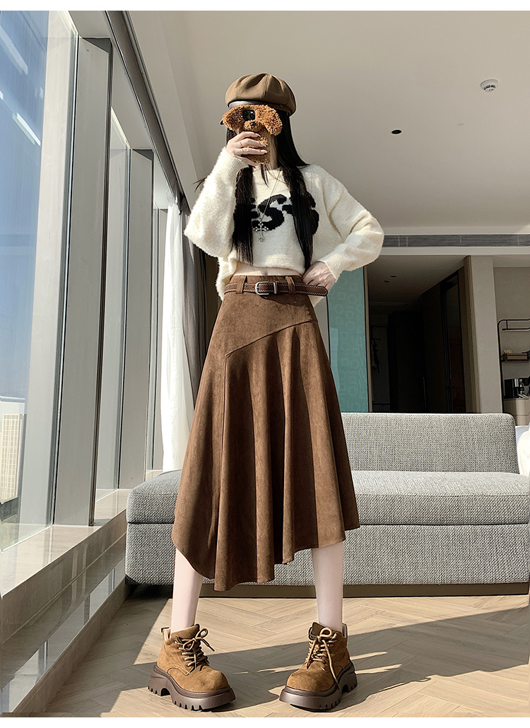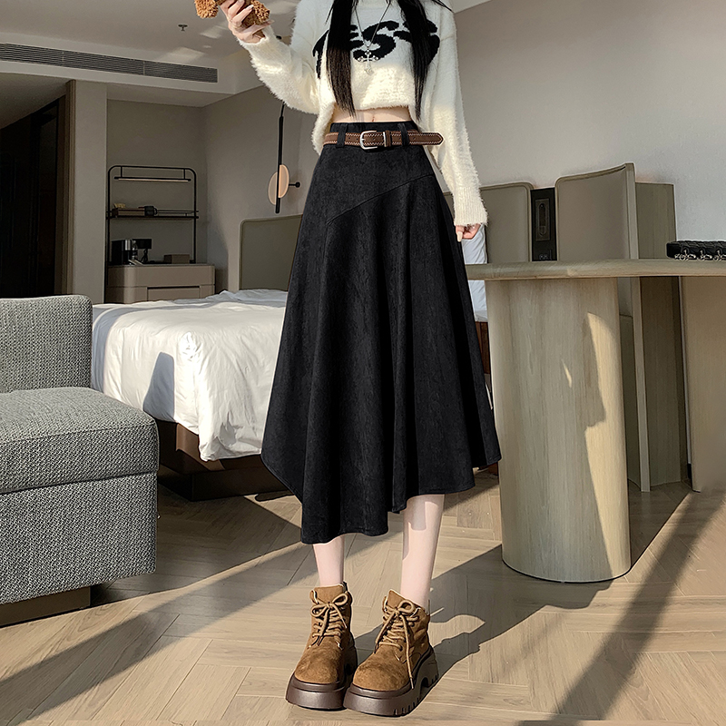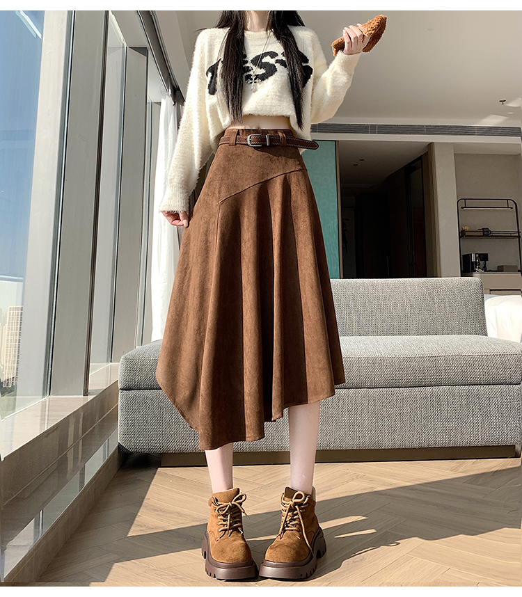 MY14472# 不规则鹿皮绒半身裙新款高腰显瘦中长款a字包臀伞裙女裝貨源服裝批發