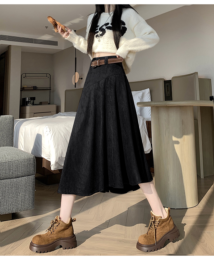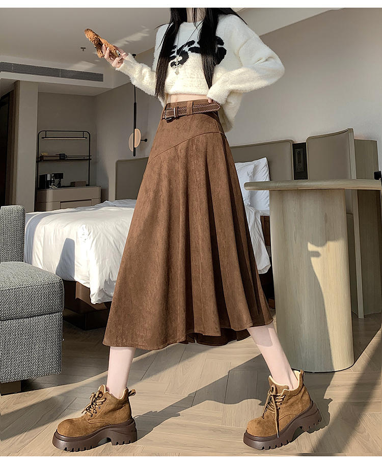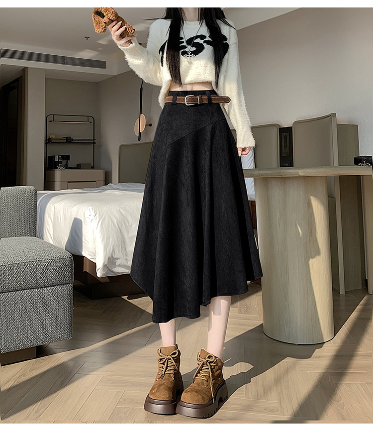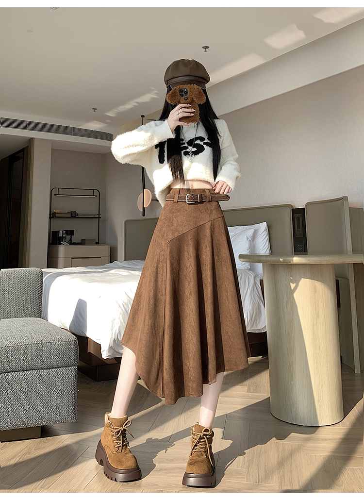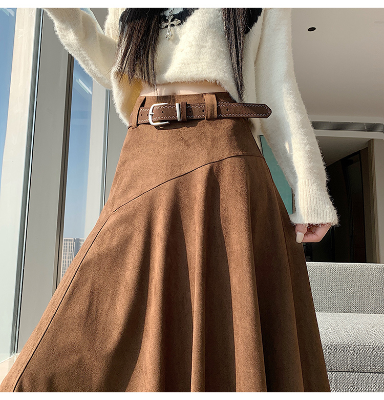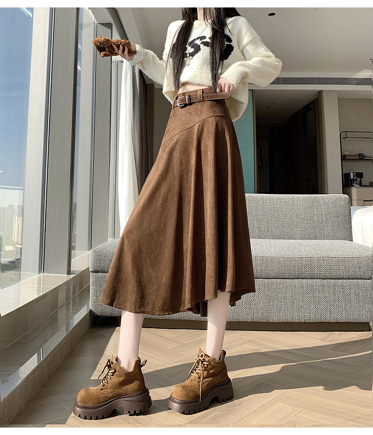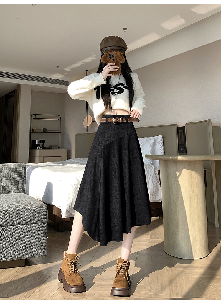 MY14472# 不规则鹿皮绒半身裙新款高腰显瘦中长款a字包臀伞裙女裝貨源服裝批發
