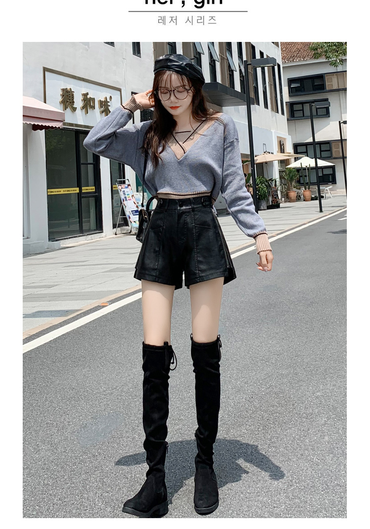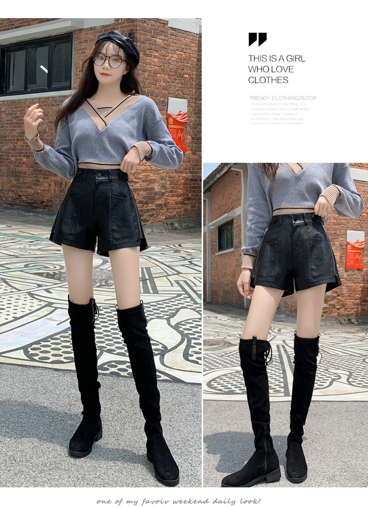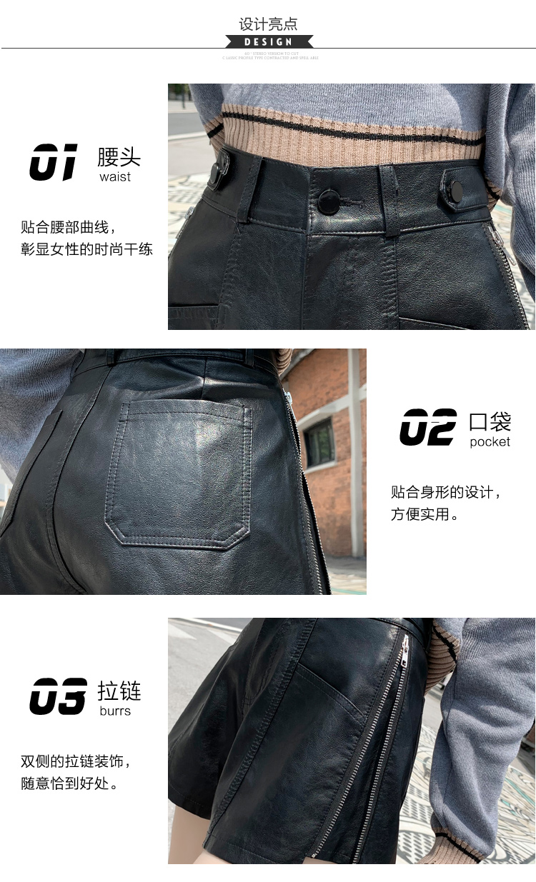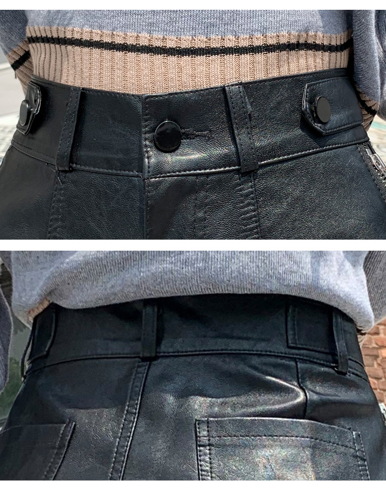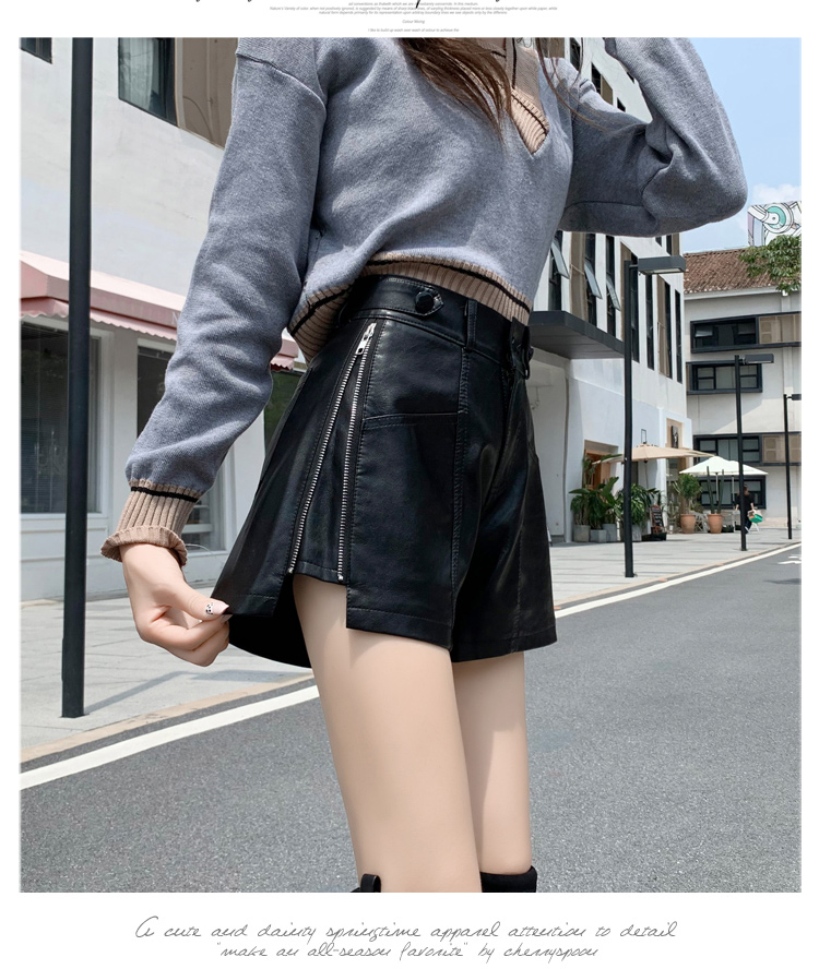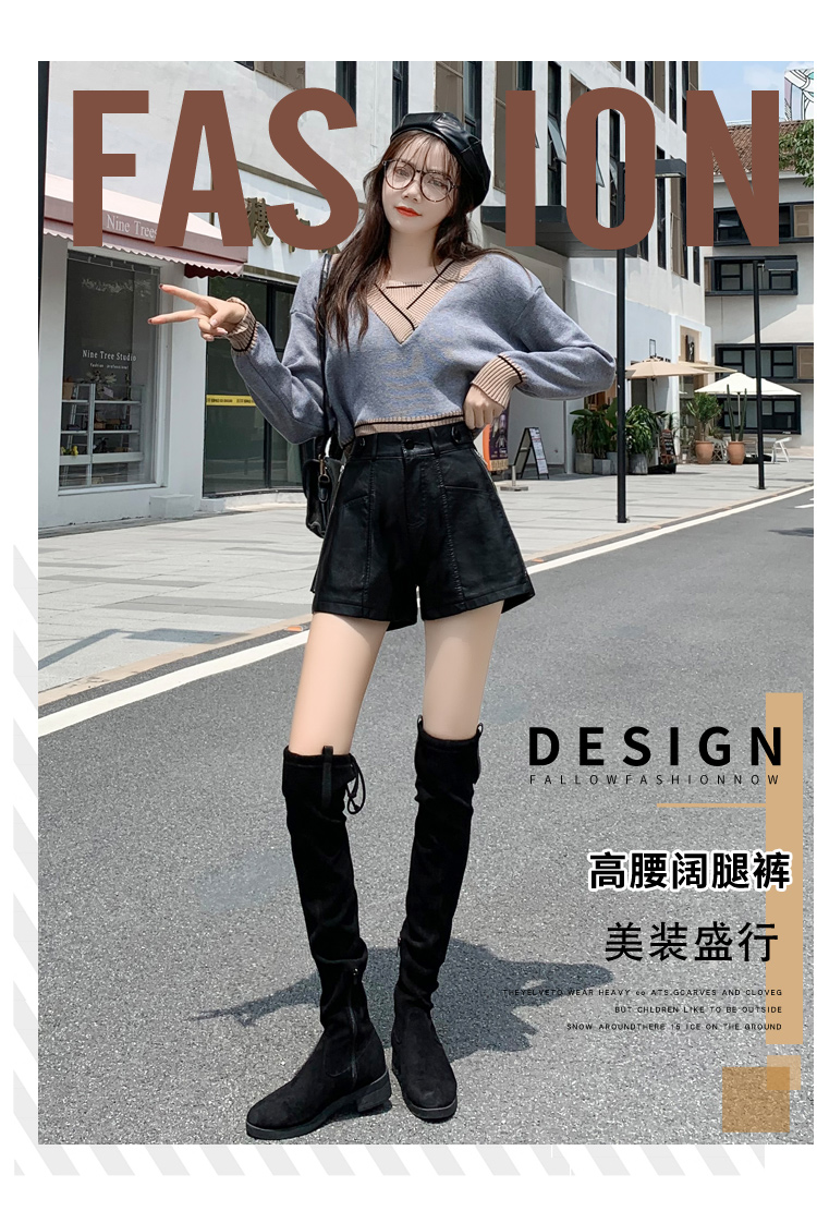MY14473# 皮裤高腰短裤侧边拉链黑色阔腿裤显瘦休闲外穿靴裤女裝貨源服裝批發