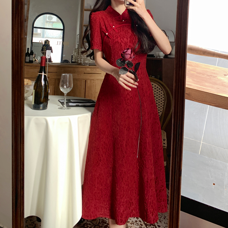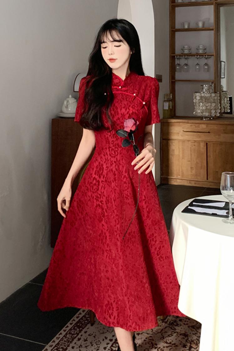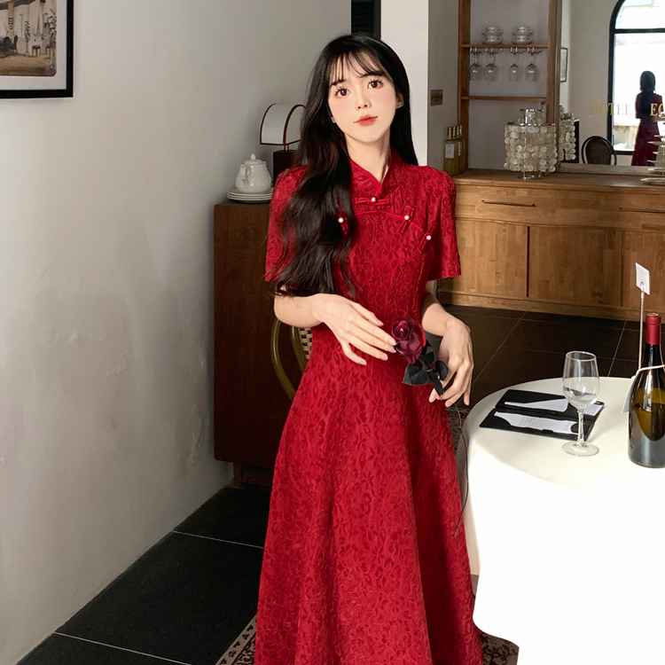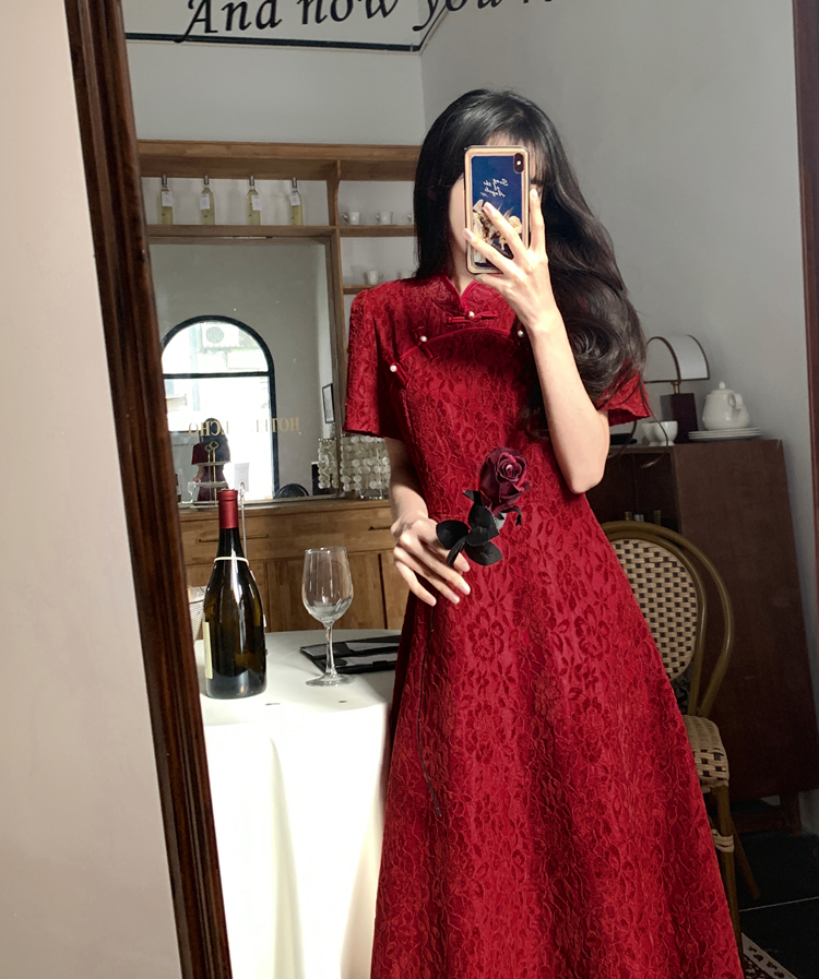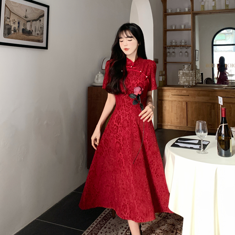 BY9162#旗袍敬酒服新娘小个子酒红色订婚礼服连衣裙中式回门女结婚年轻款