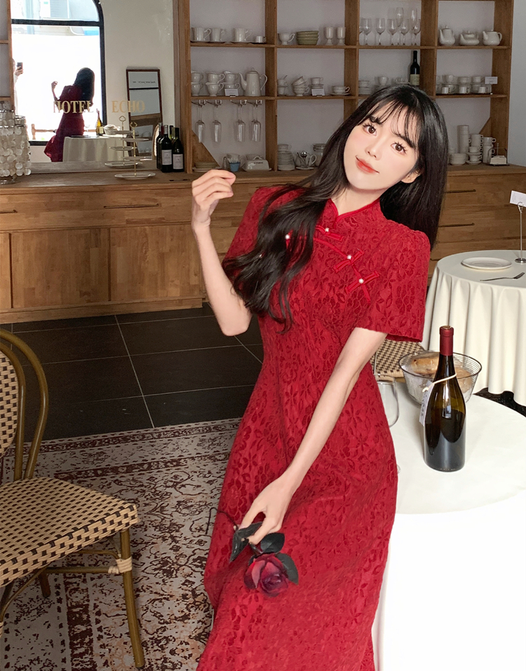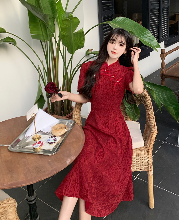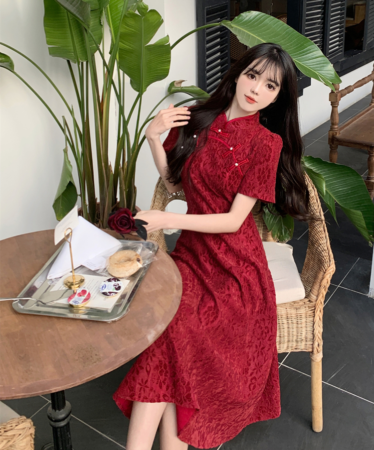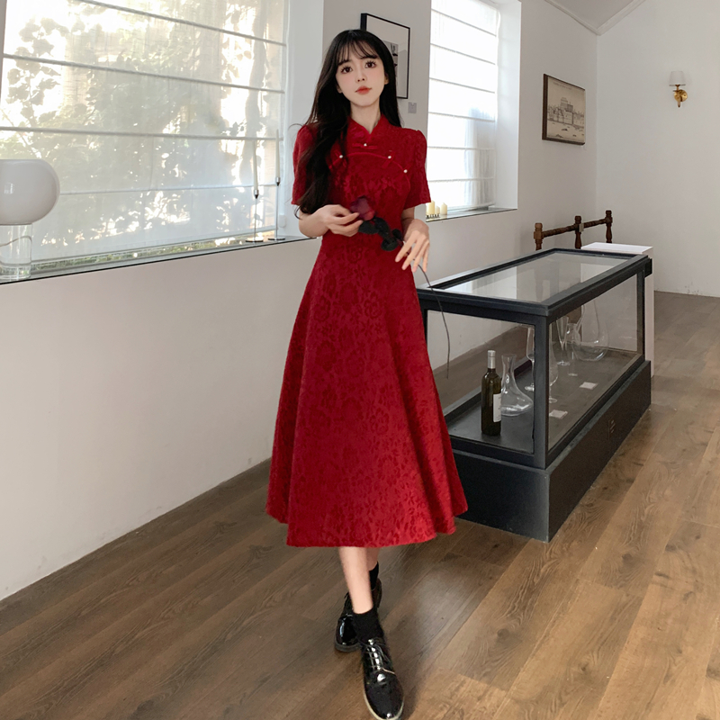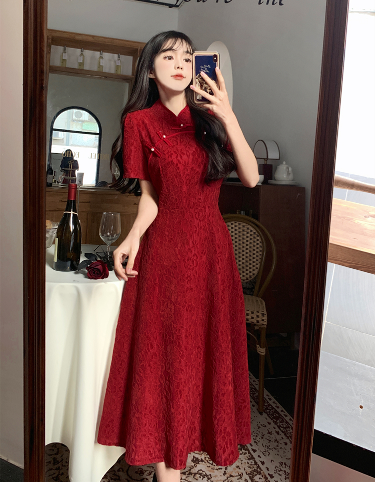 BY9162#旗袍敬酒服新娘小个子酒红色订婚礼服连衣裙中式回门女结婚年轻款