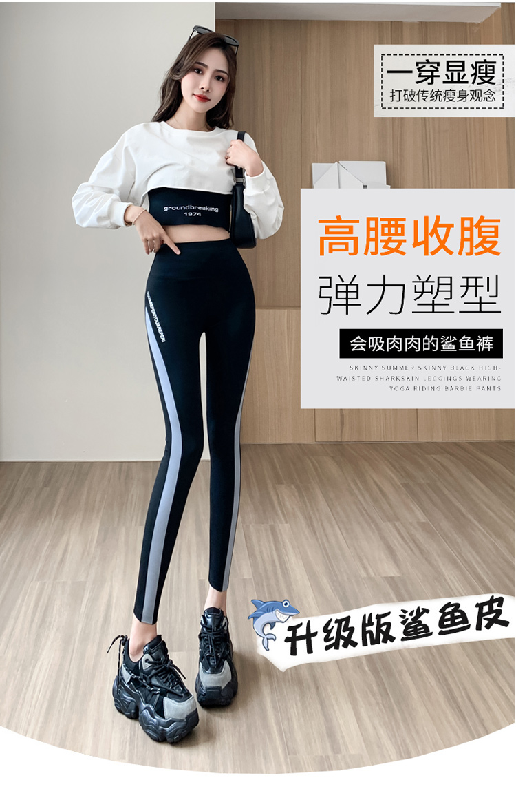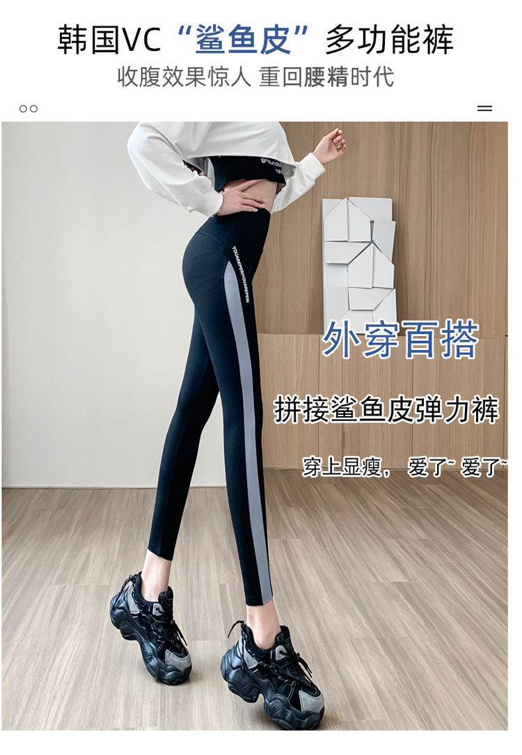 BY9166#外穿打底裤撞色拼接鲨鱼裤女收腹提臀瘦腿瑜伽裤九分秋