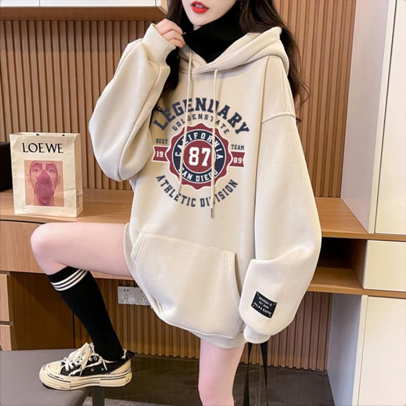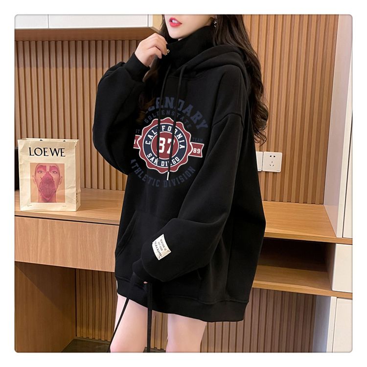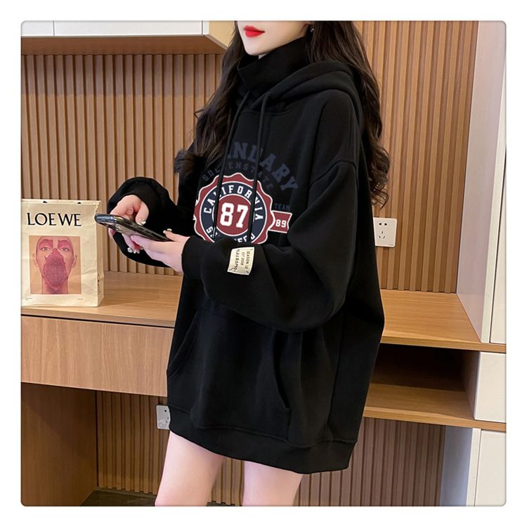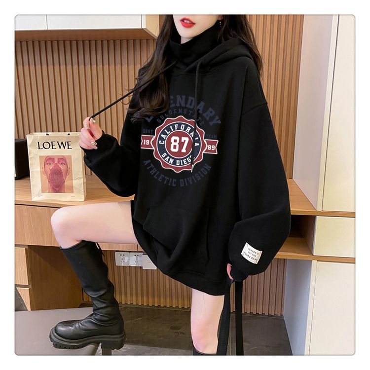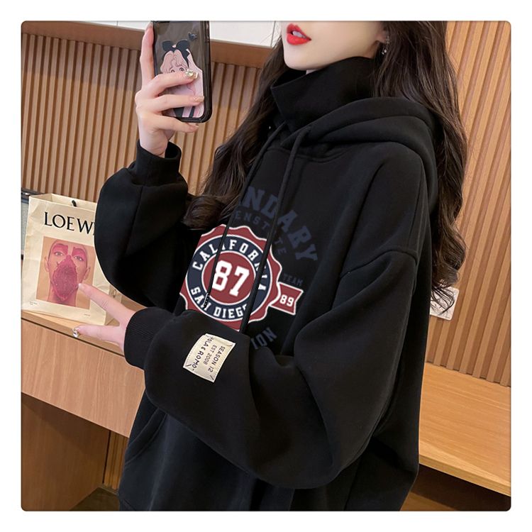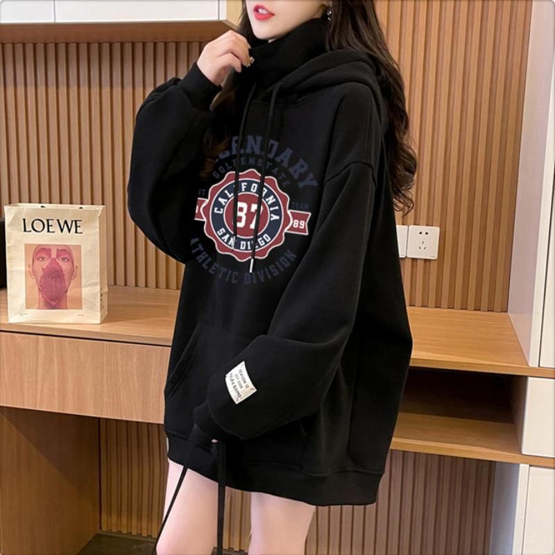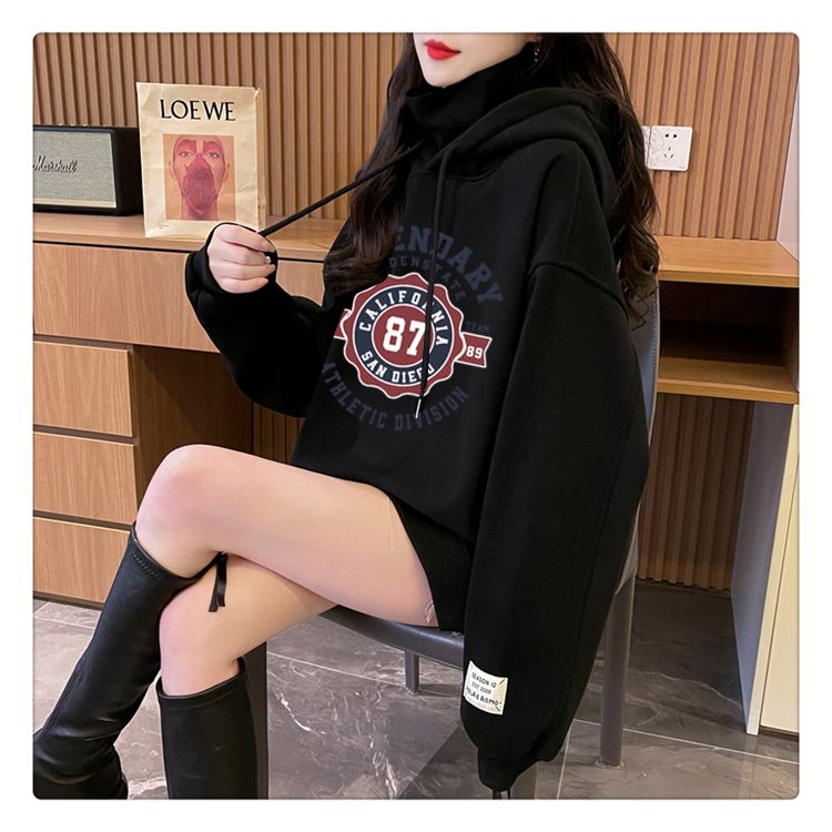 MY14479# 仿华棉复超柔/后包领/全件压线/加绒高领连帽卫衣女女裝貨源服裝批發