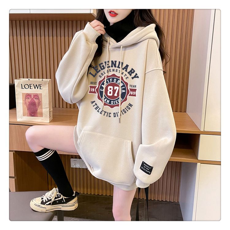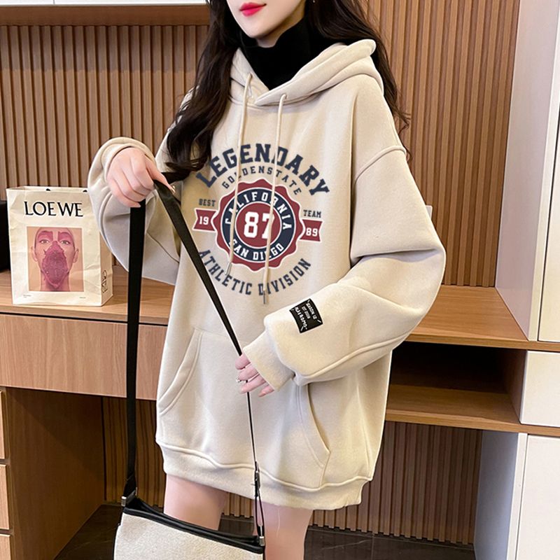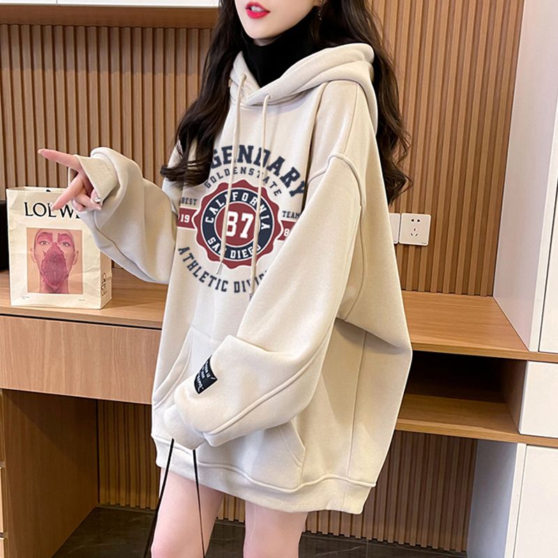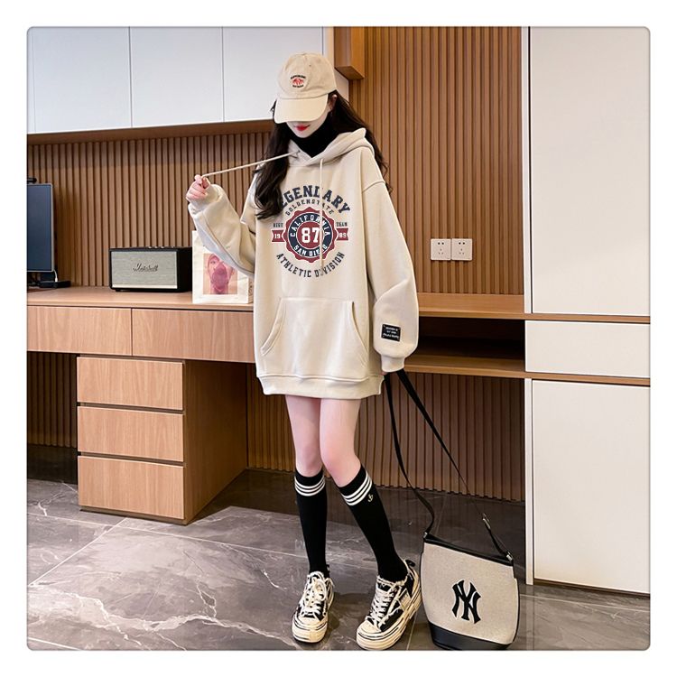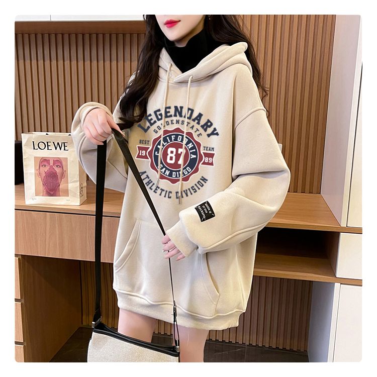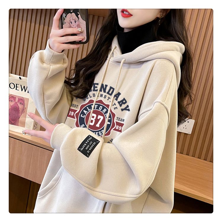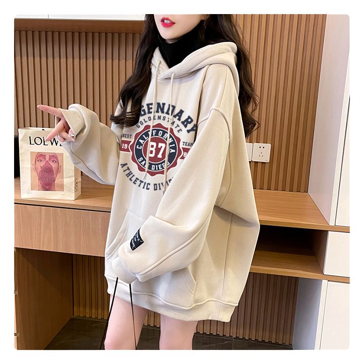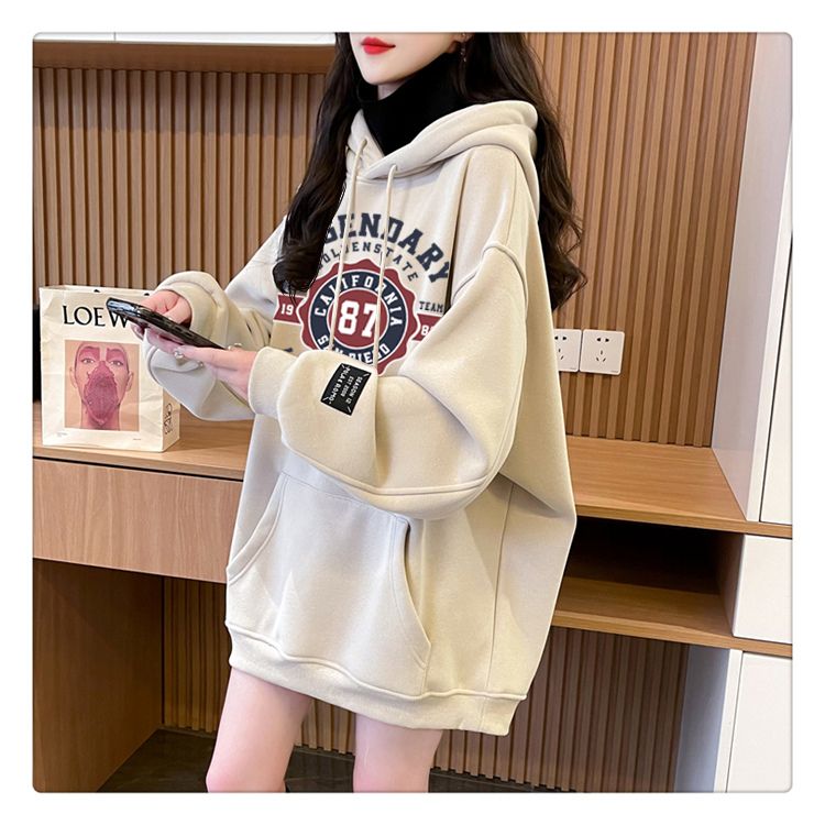 MY14479# 仿华棉复超柔/后包领/全件压线/加绒高领连帽卫衣女女裝貨源服裝批發