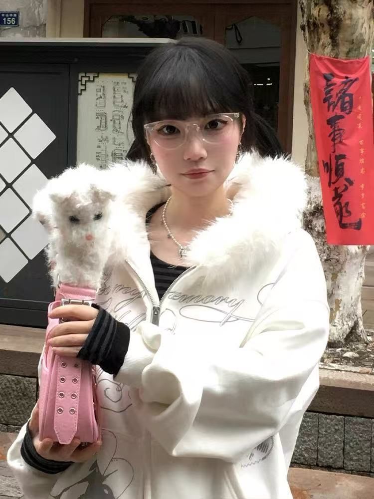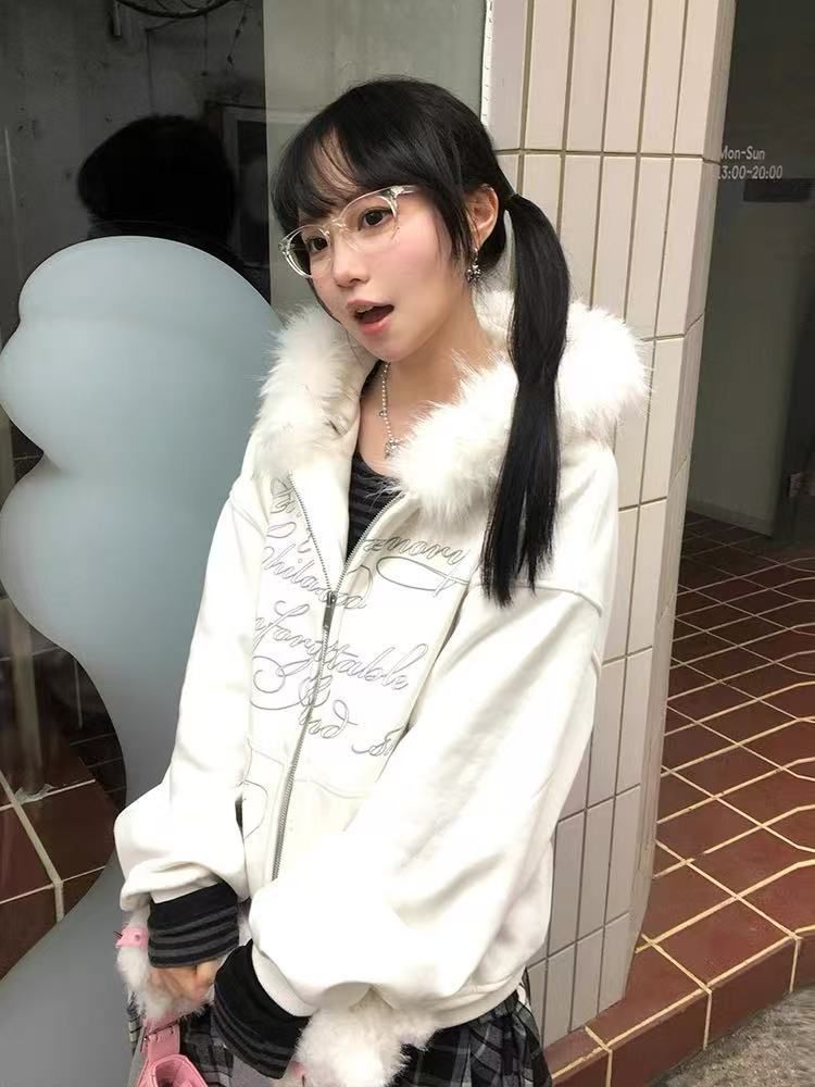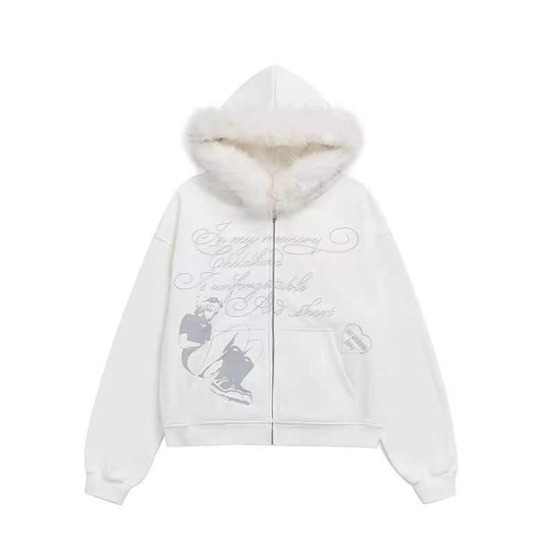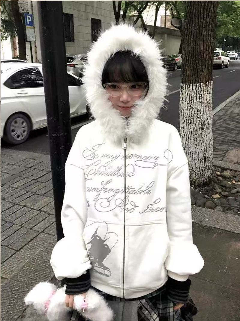 MY14485# 加绒加厚大毛领可拆卸纯棉华棉 毛领卫衣外套男女女裝貨源服裝批發
