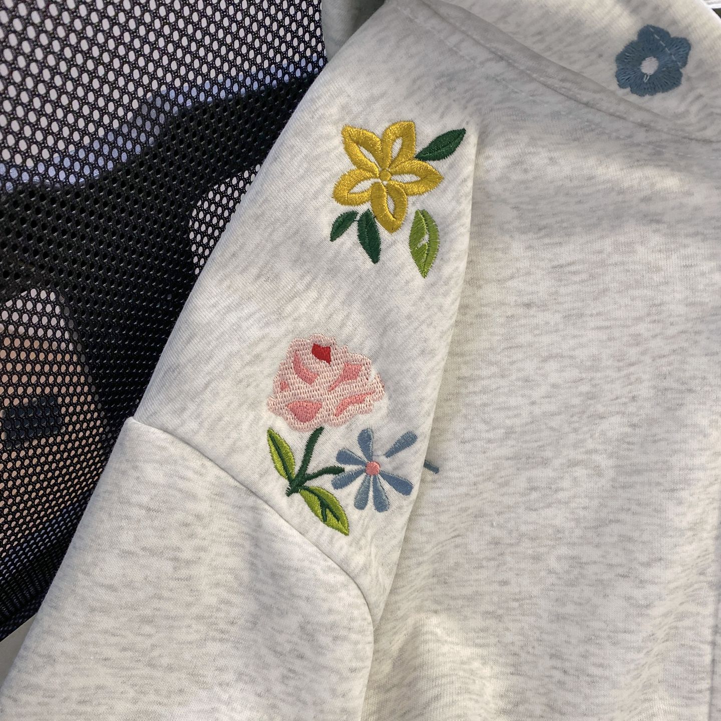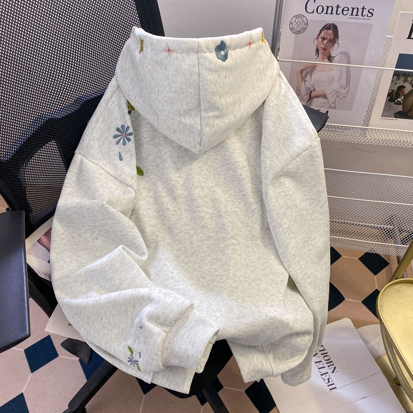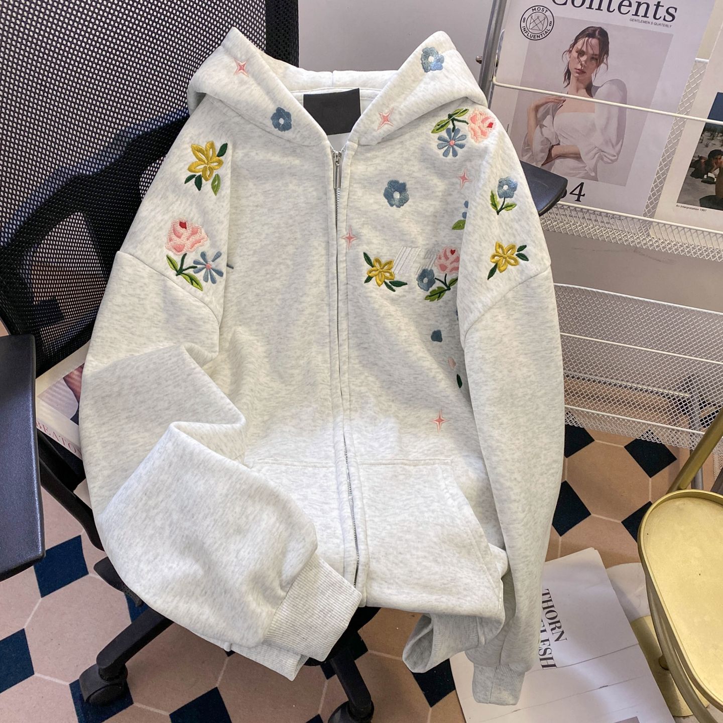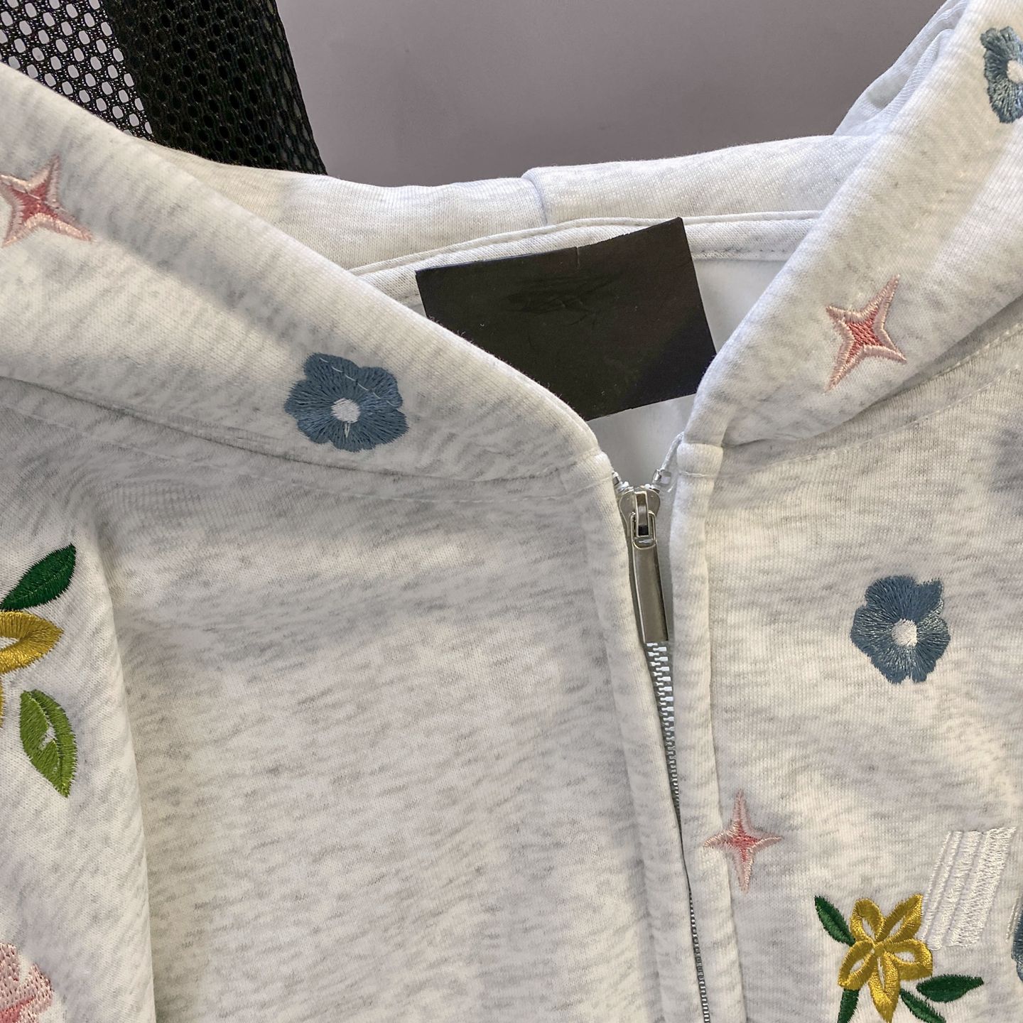 MY14495# 刺绣华棉纯棉复合银狐绒花卉开衫卫衣女裝貨源服裝批發