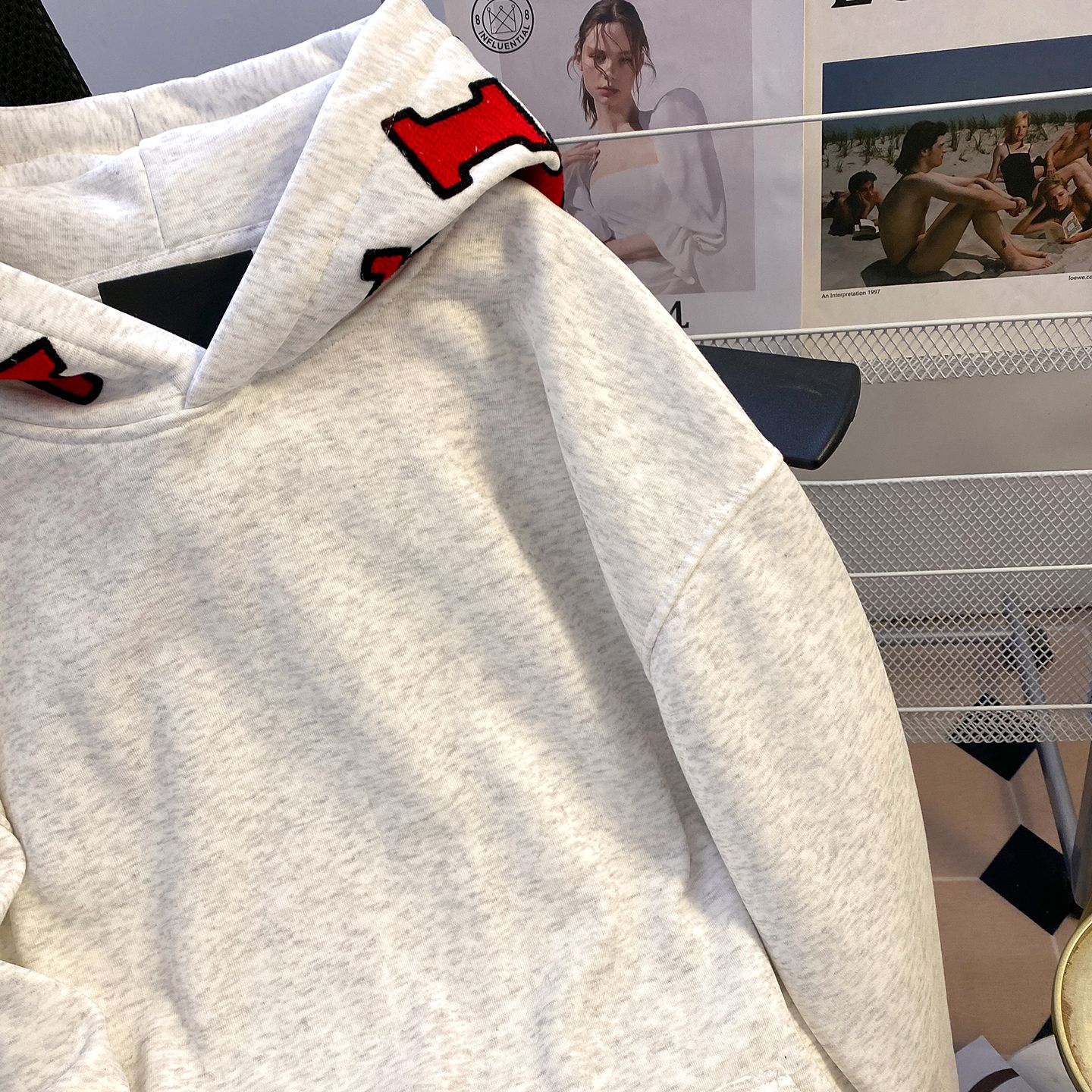 MY14496# 原版刺绣华棉纯棉复合银狐绒爆款慵懒卫衣女裝貨源服裝批發