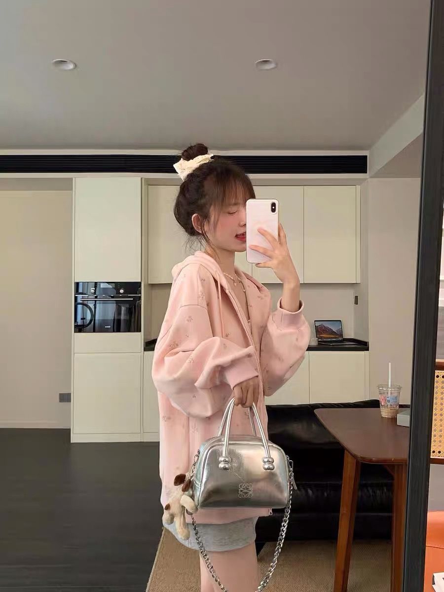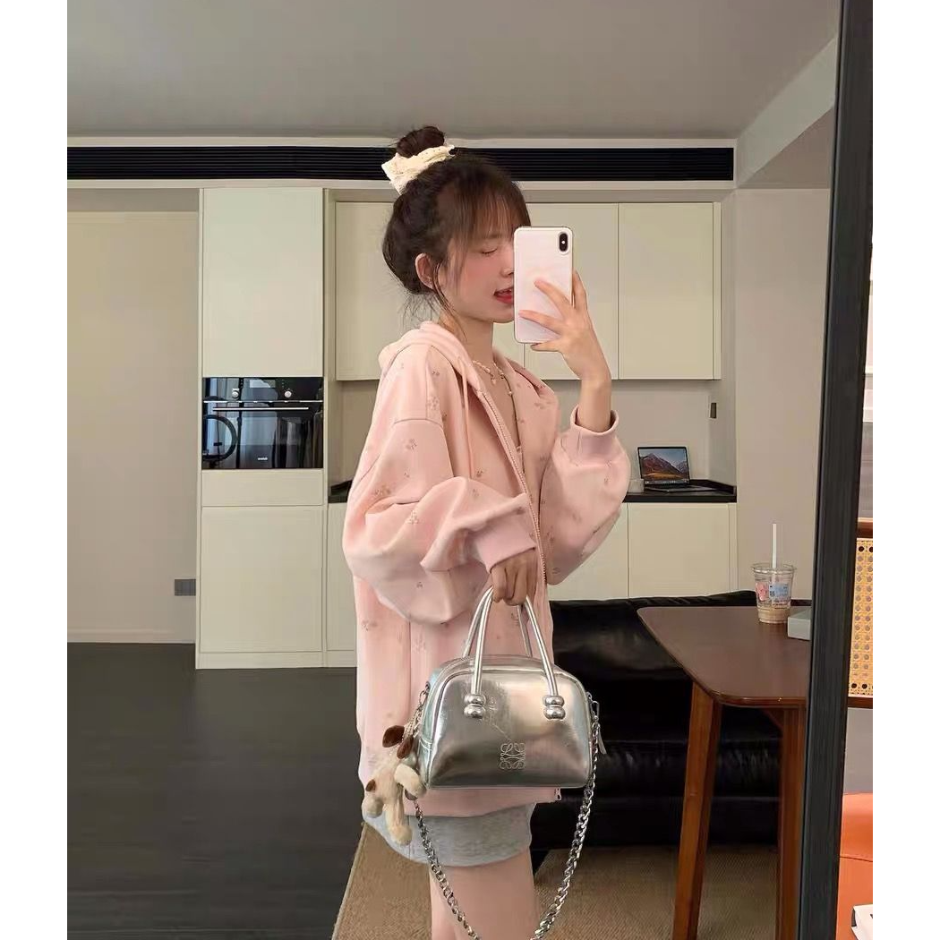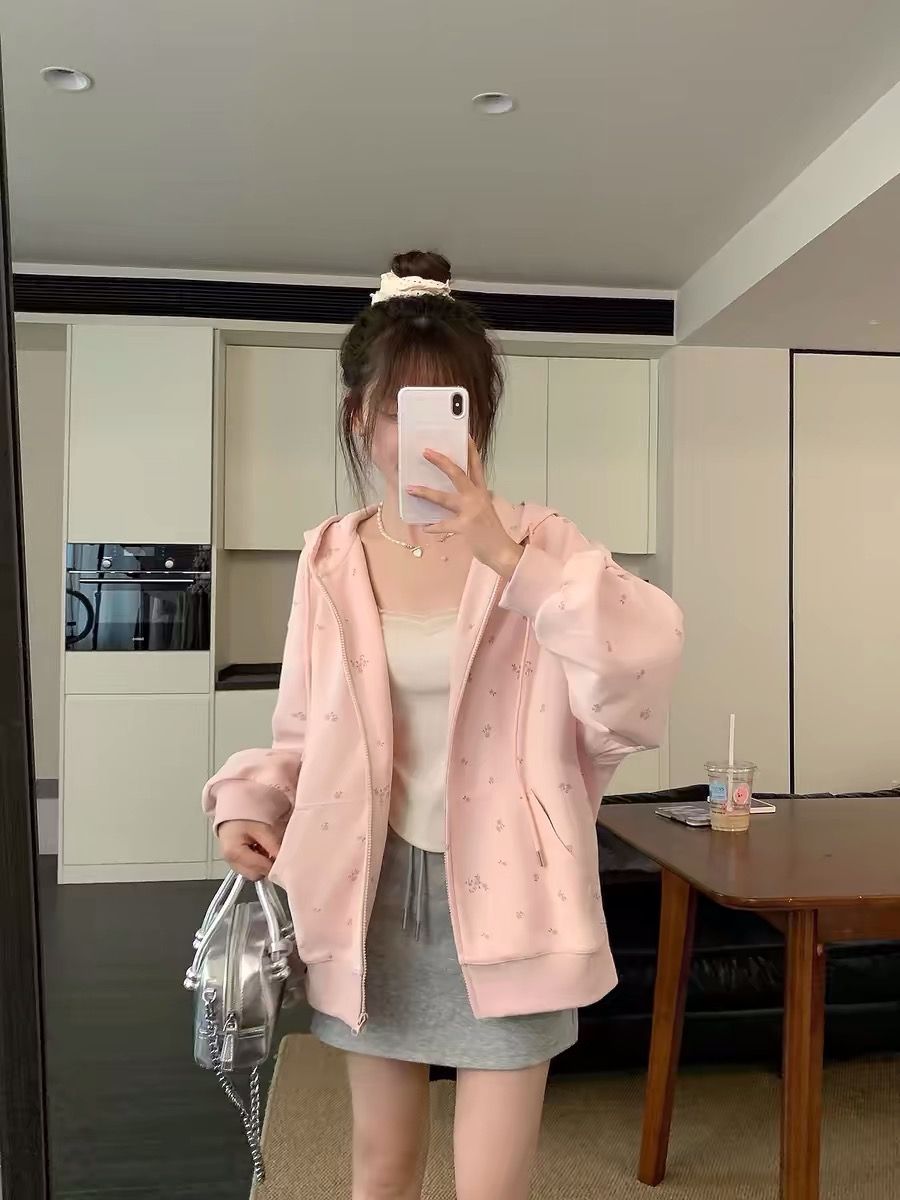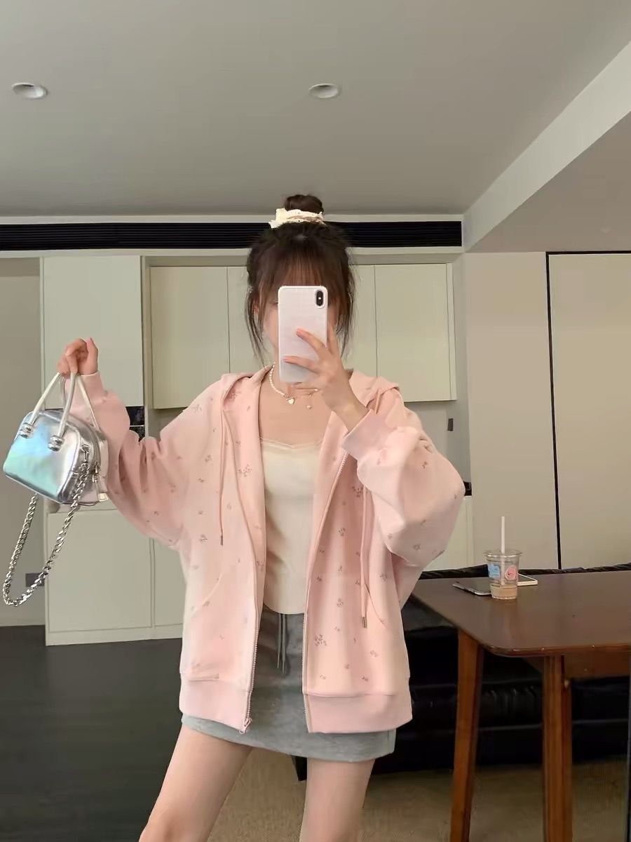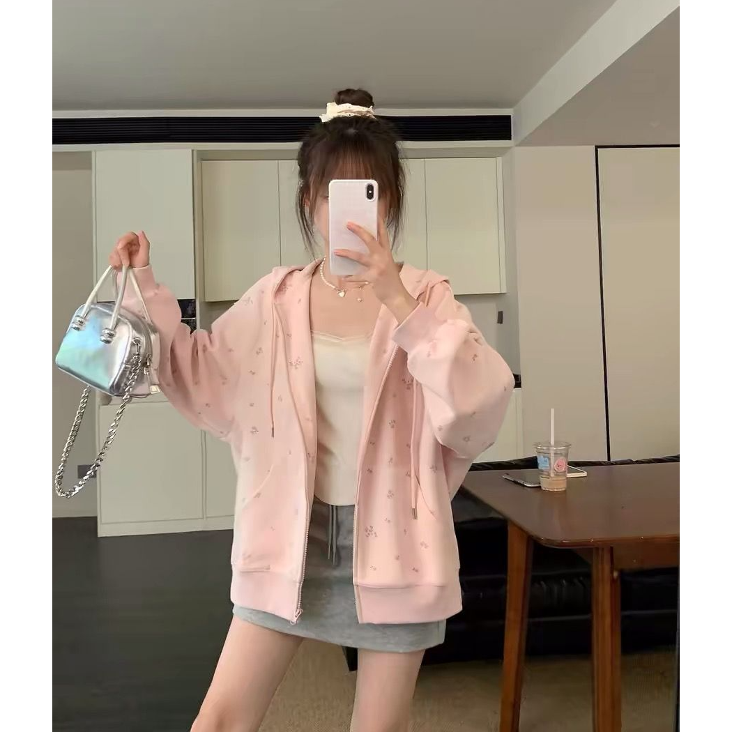 MY14594# 韩系甜懒风碎花连帽开衫女宽松oversize早秋慵懒穿搭女裝貨源服裝批發