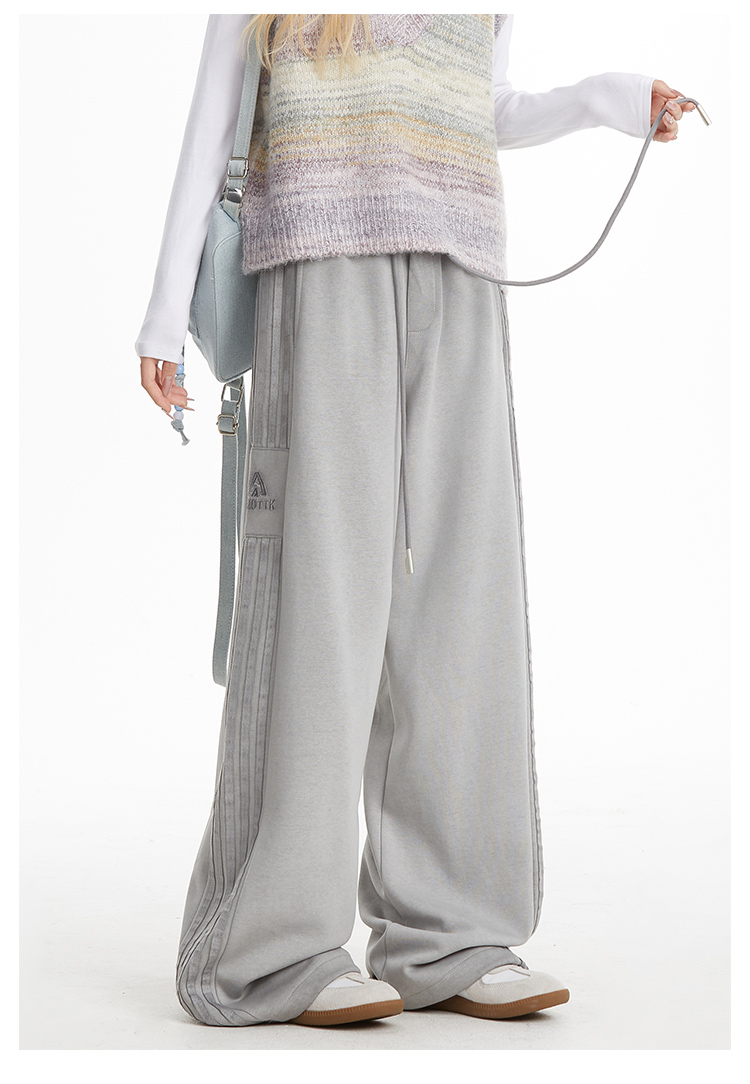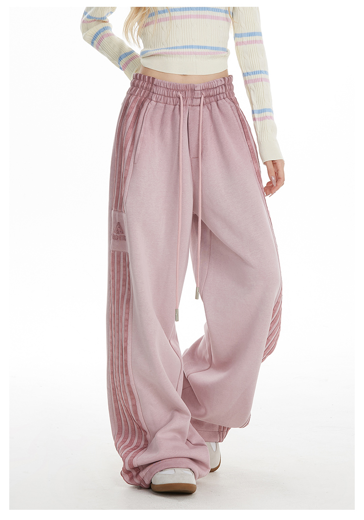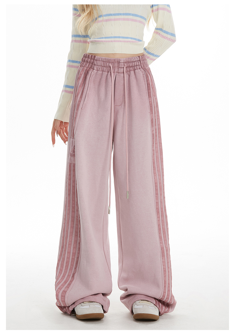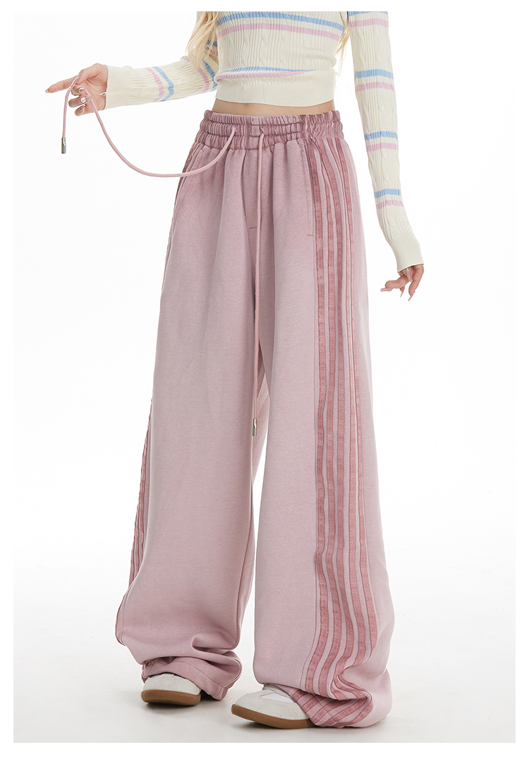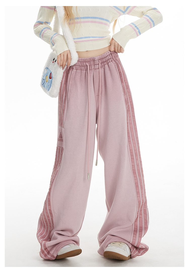 MY14603# 加绒 原版包边 条纹复古运动裤女秋季爵士舞阔腿直筒卫裤子女裝貨源服裝批發