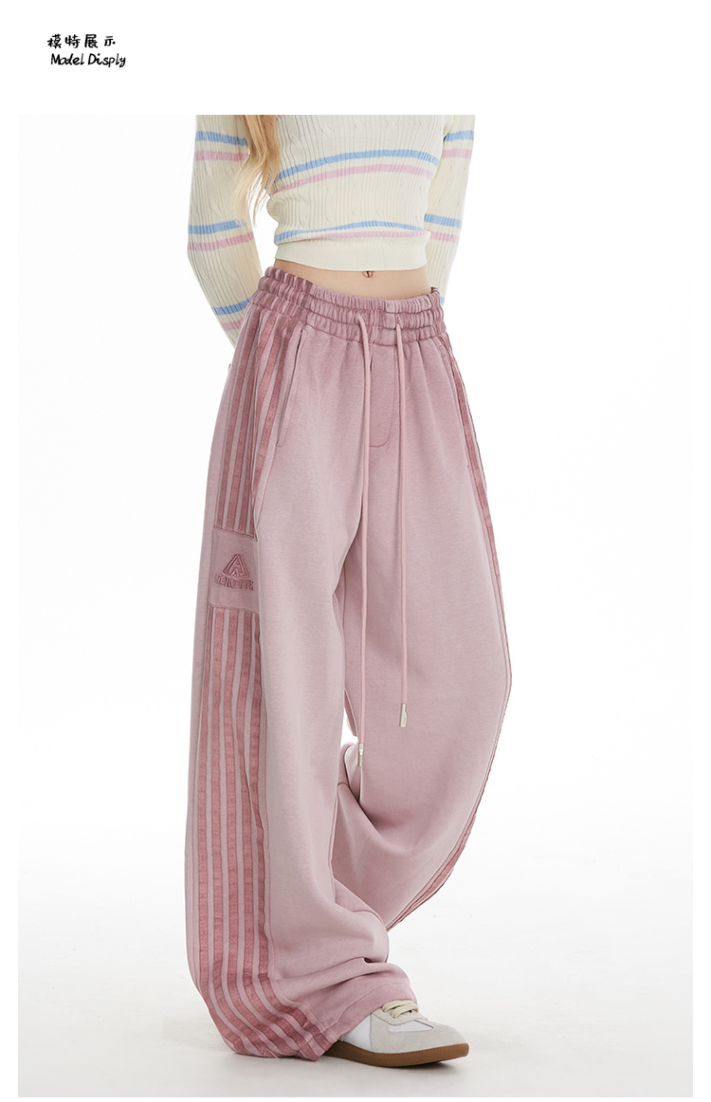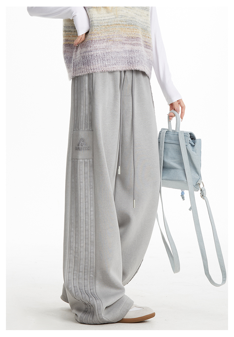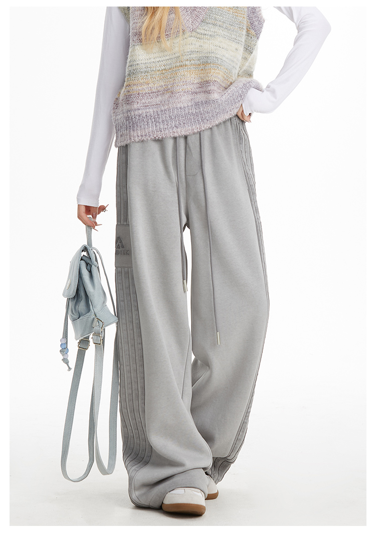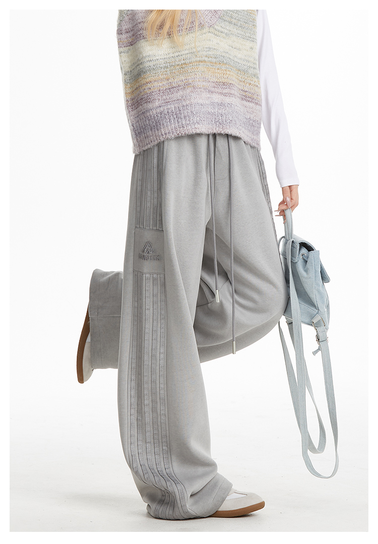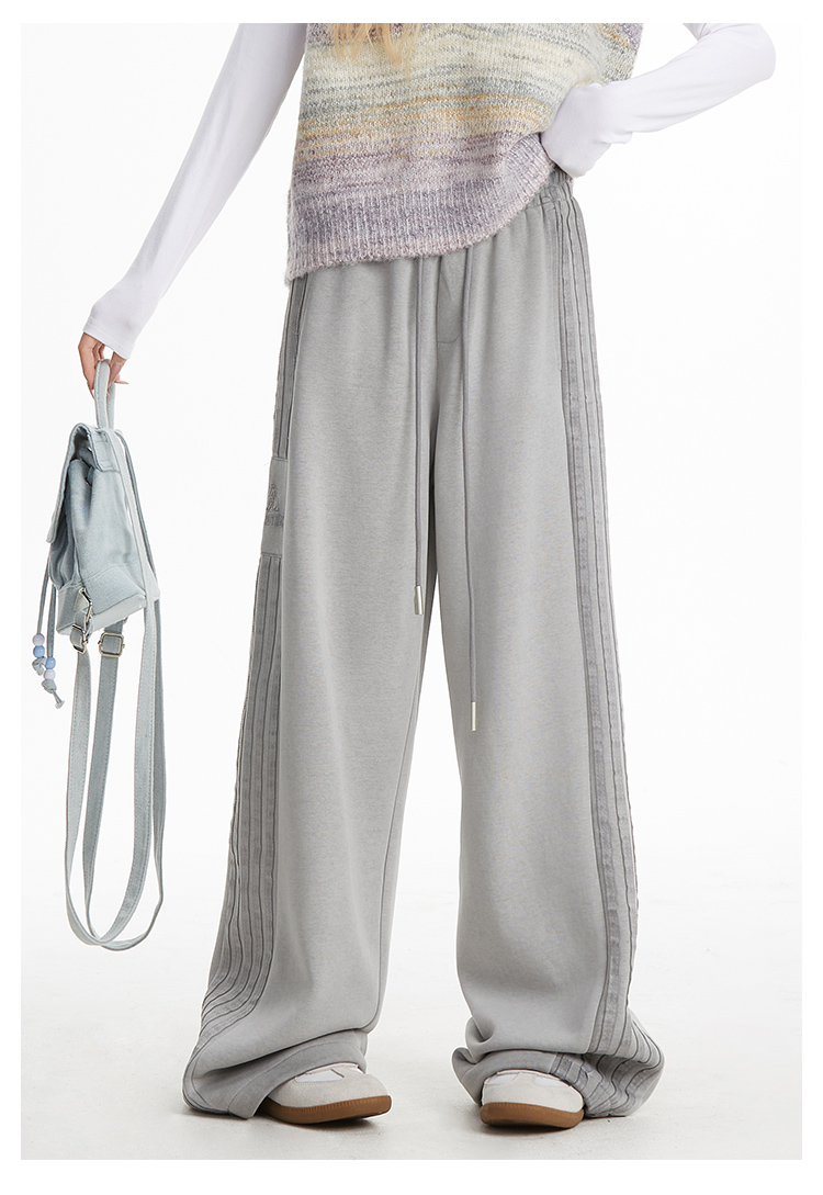 MY14603# 加绒 原版包边 条纹复古运动裤女秋季爵士舞阔腿直筒卫裤子女裝貨源服裝批發