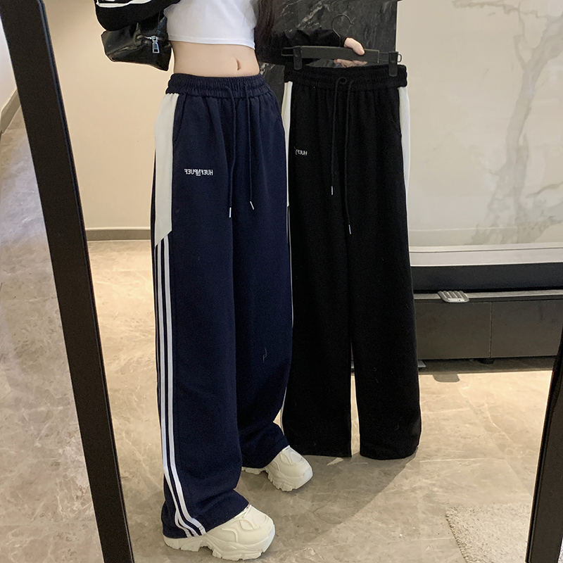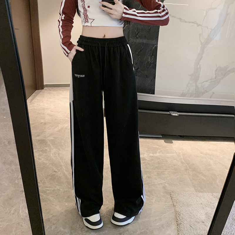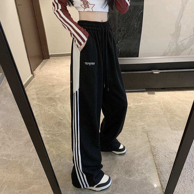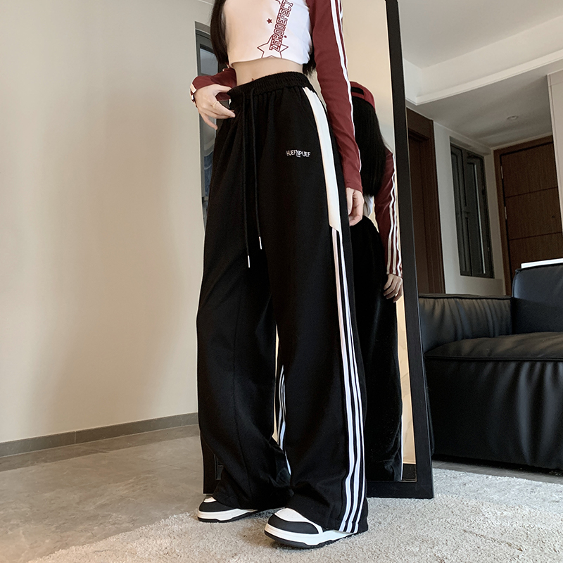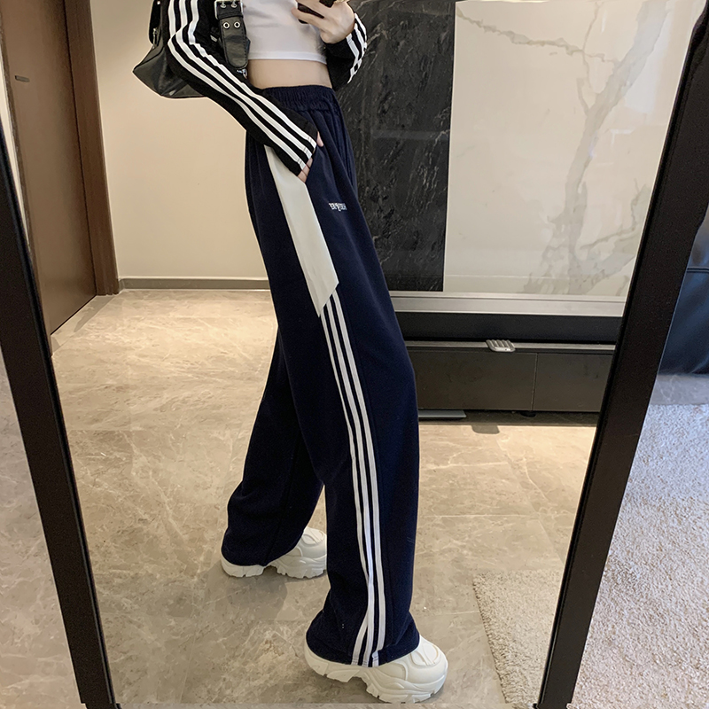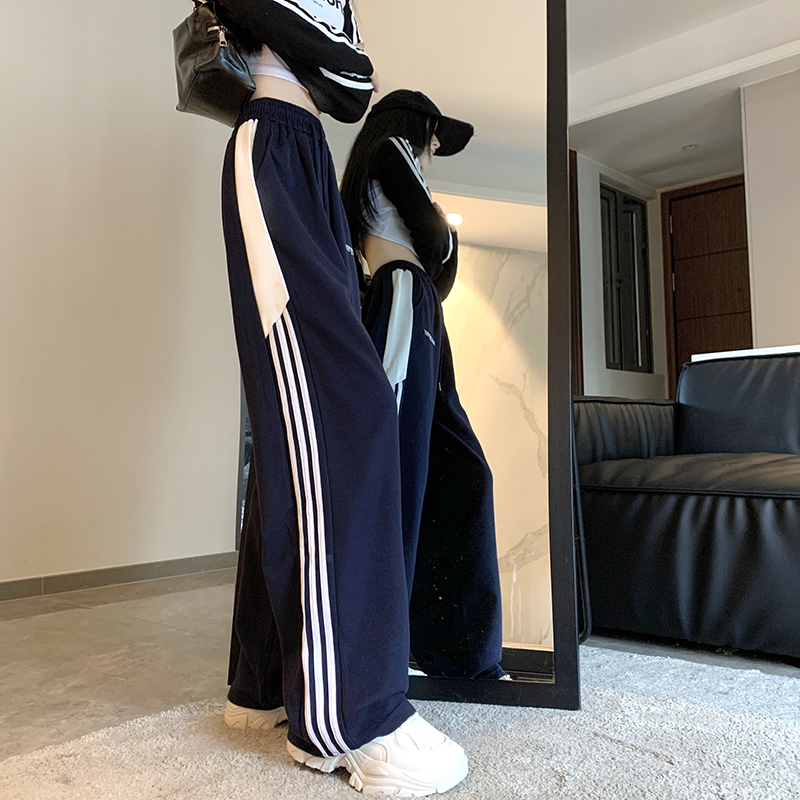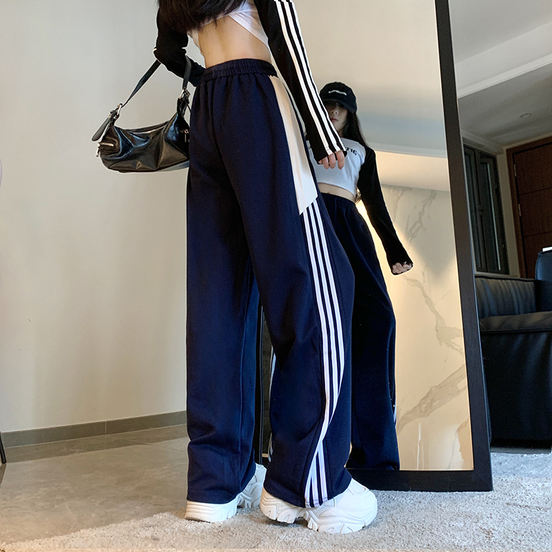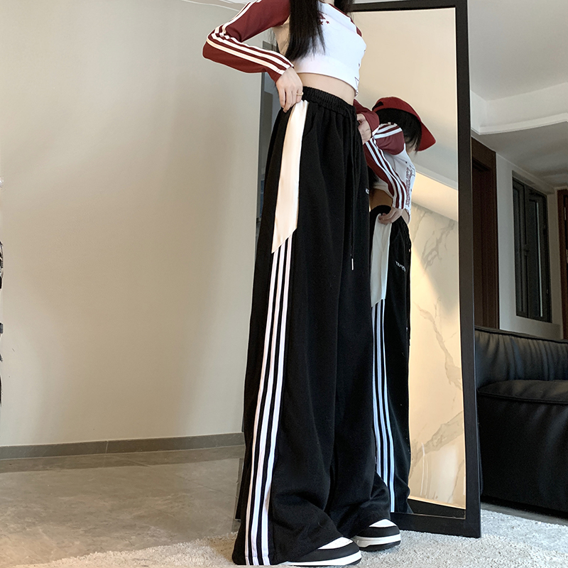 MY14604# 常规/加绒 美式休闲裤女秋季侧边三条杠条纹阔腿长裤女裝貨源服裝批發