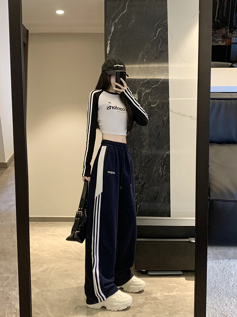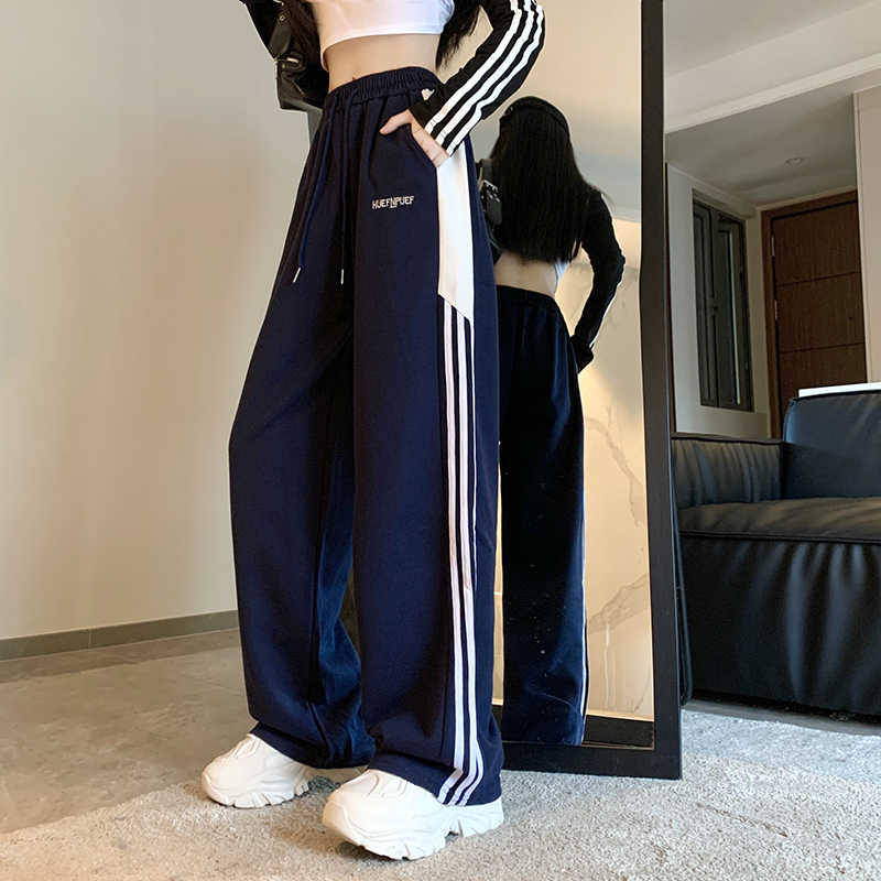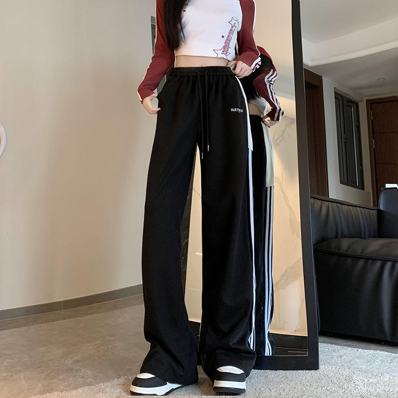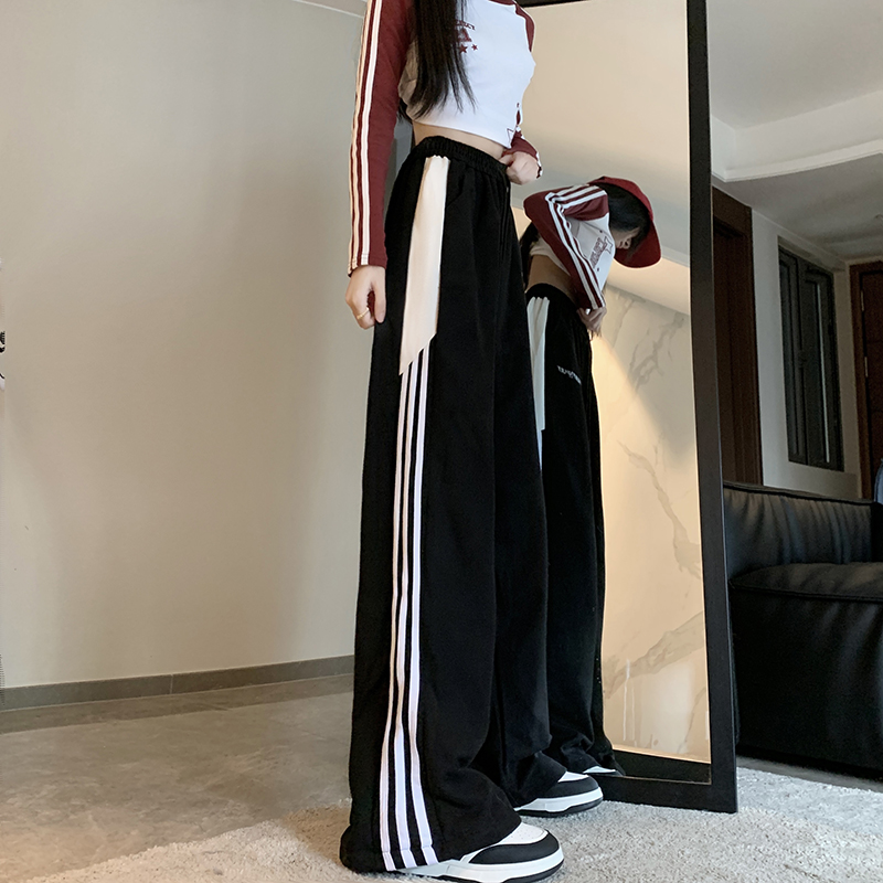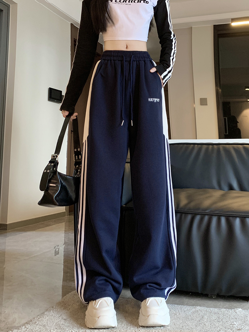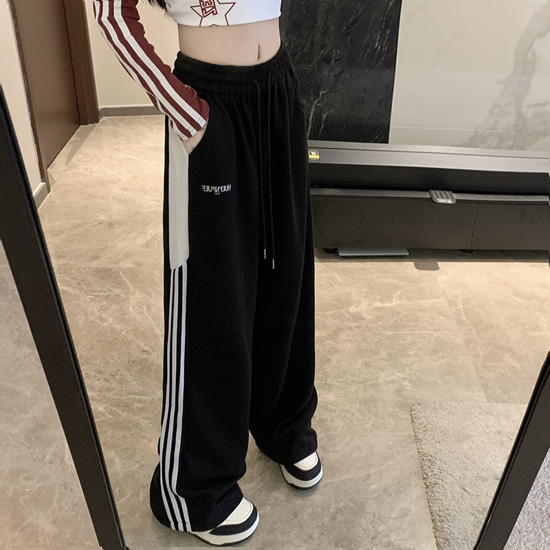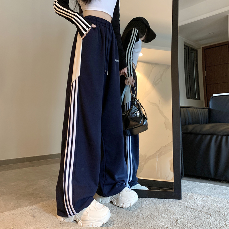 MY14604# 常规/加绒 美式休闲裤女秋季侧边三条杠条纹阔腿长裤女裝貨源服裝批發