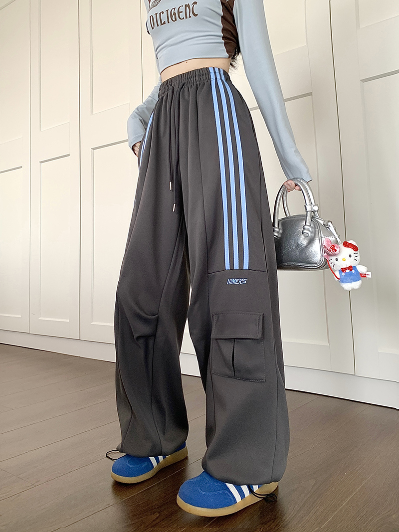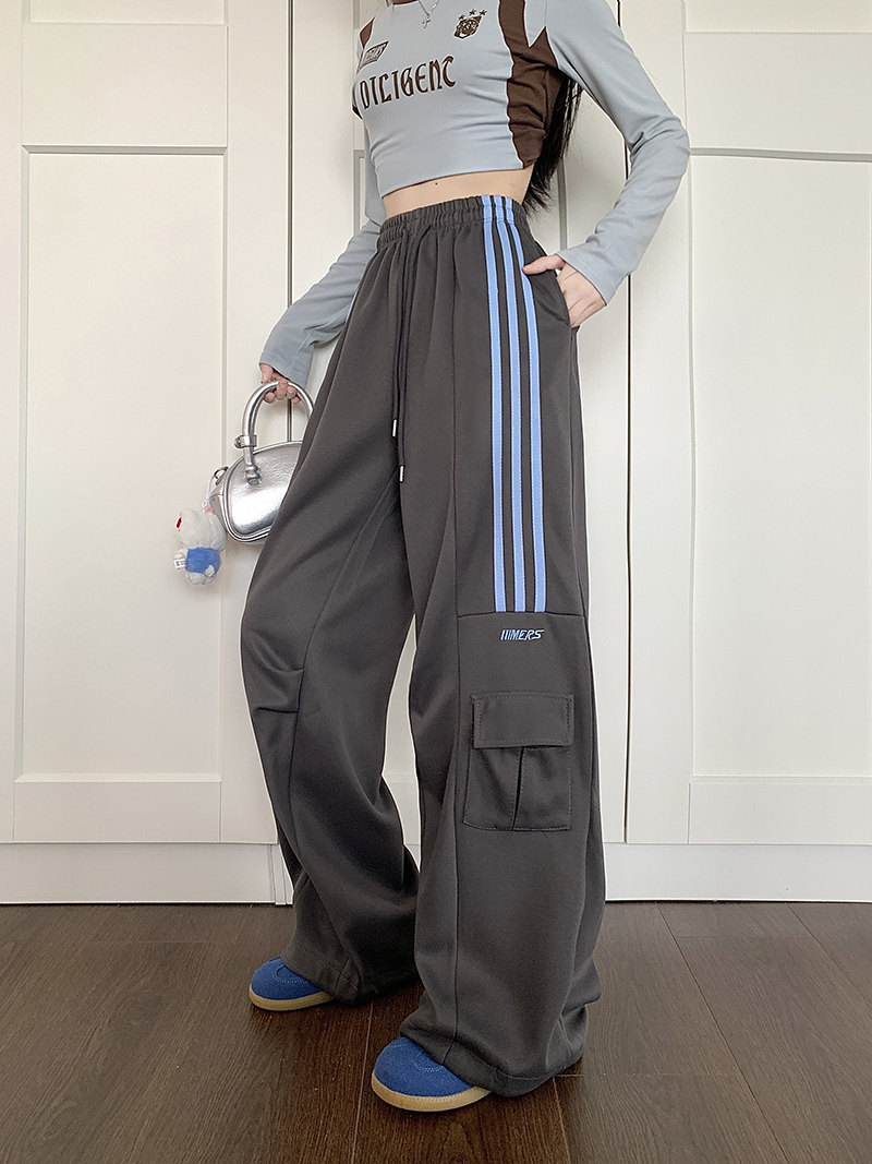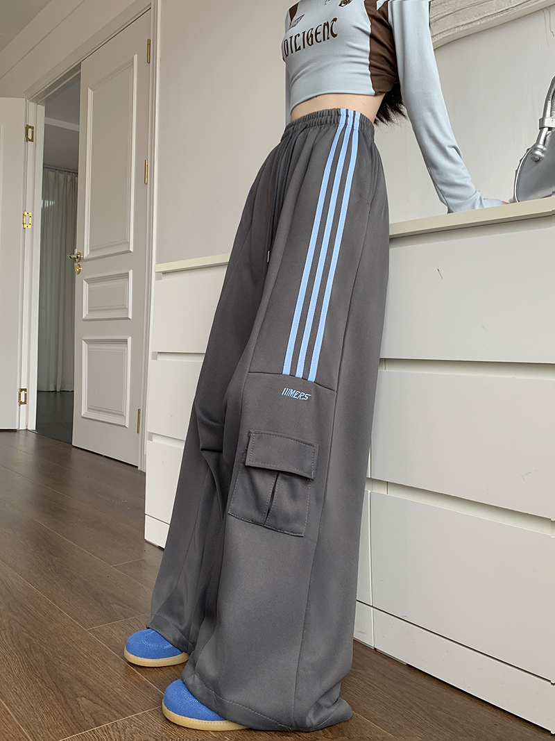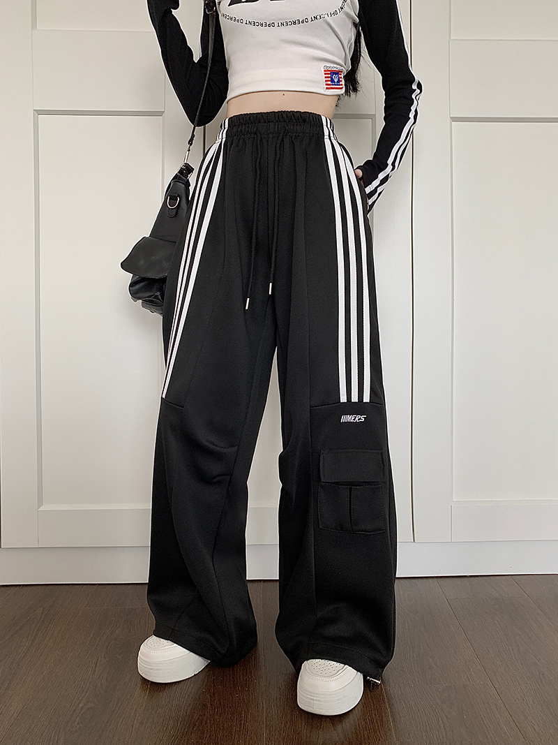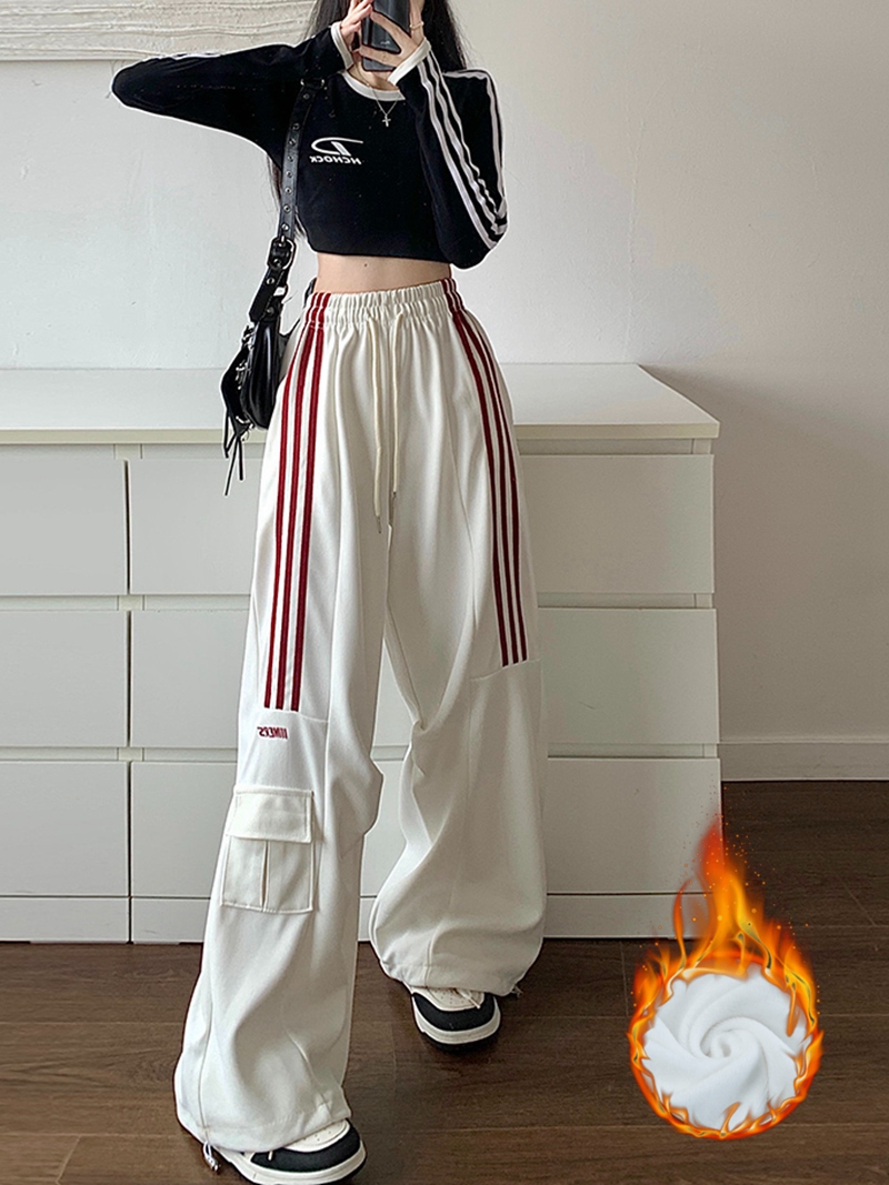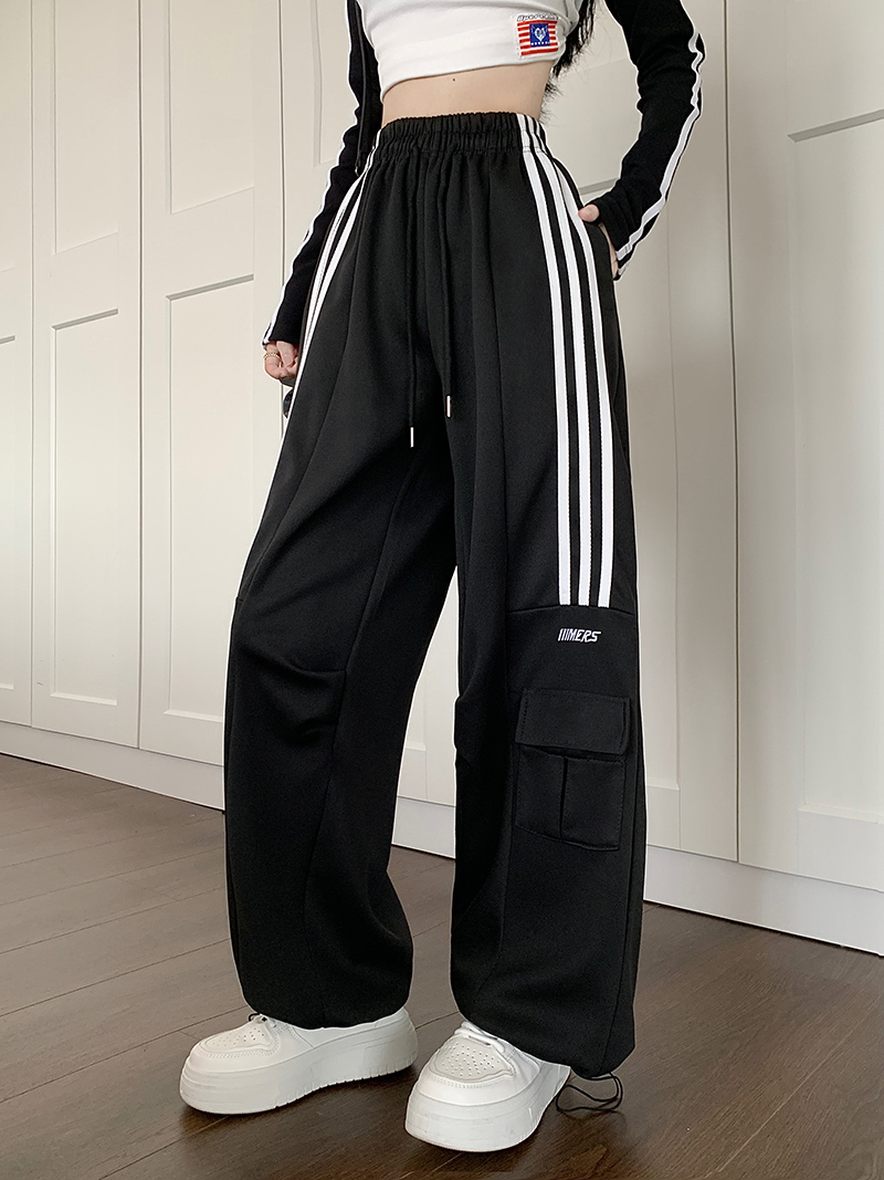 MY14605# 增色 常规/加绒 高街杠条工装裤女休闲运动卫裤宽松阔腿裤子女裝貨源服裝批發