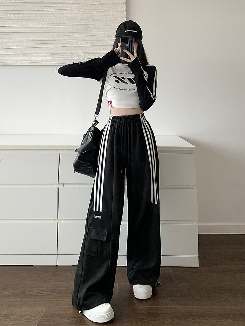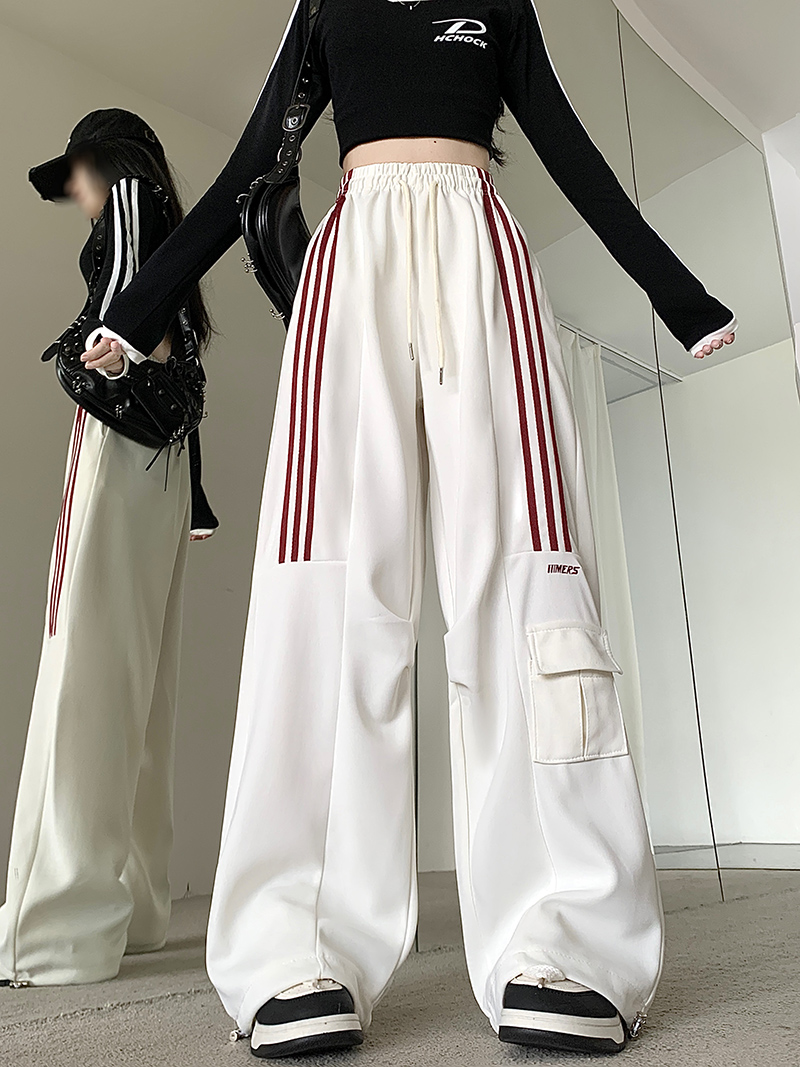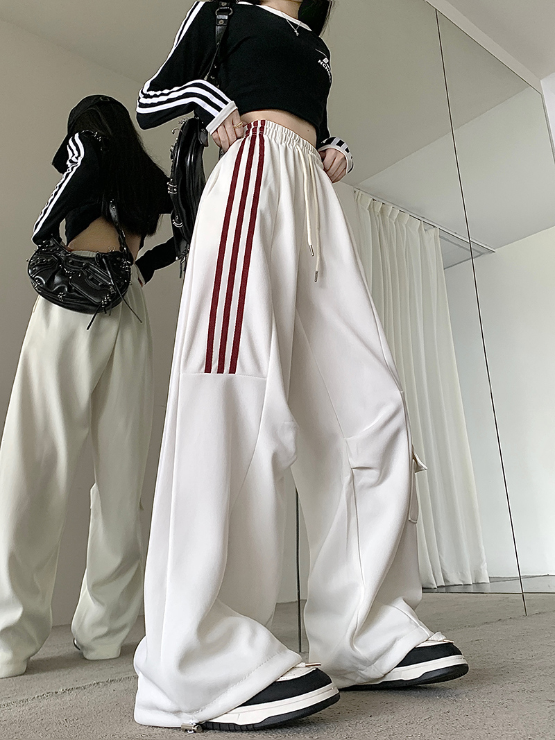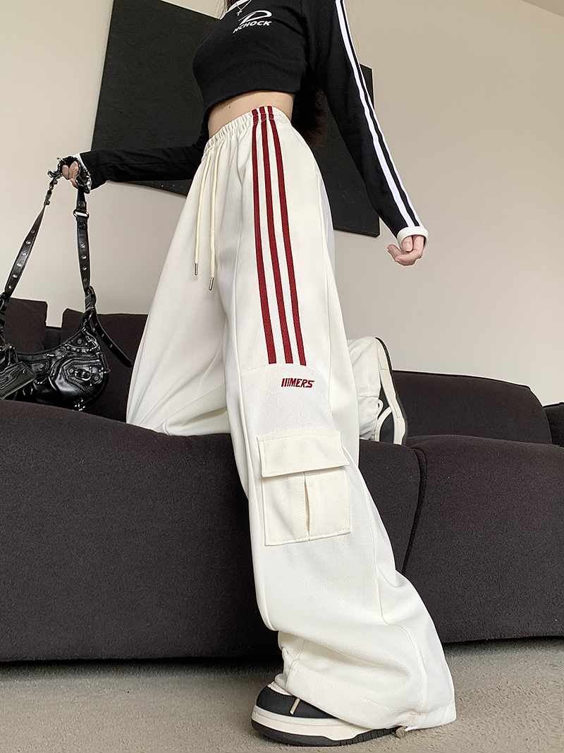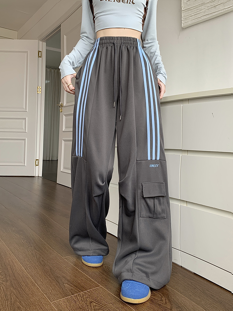MY14605# 增色 常规/加绒 高街杠条工装裤女休闲运动卫裤宽松阔腿裤子女裝貨源服裝批發