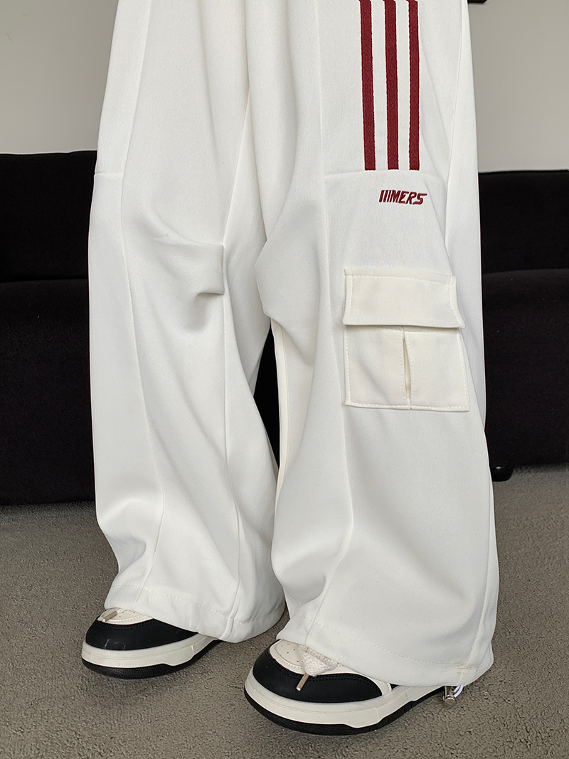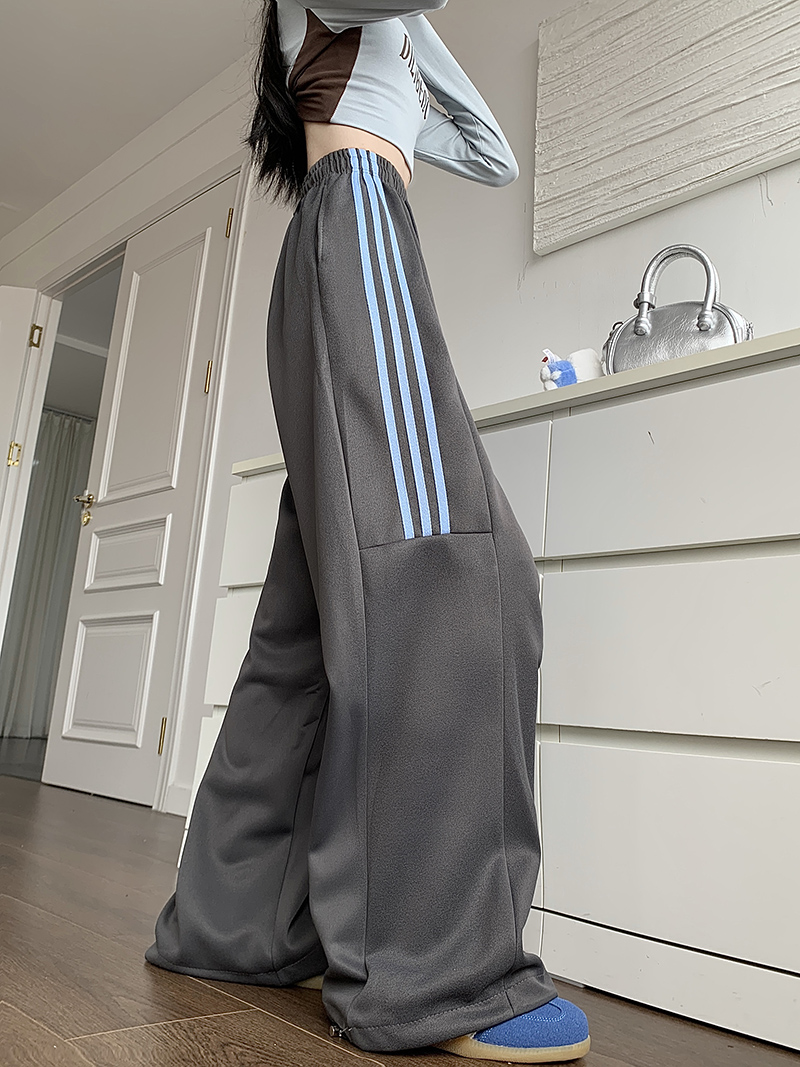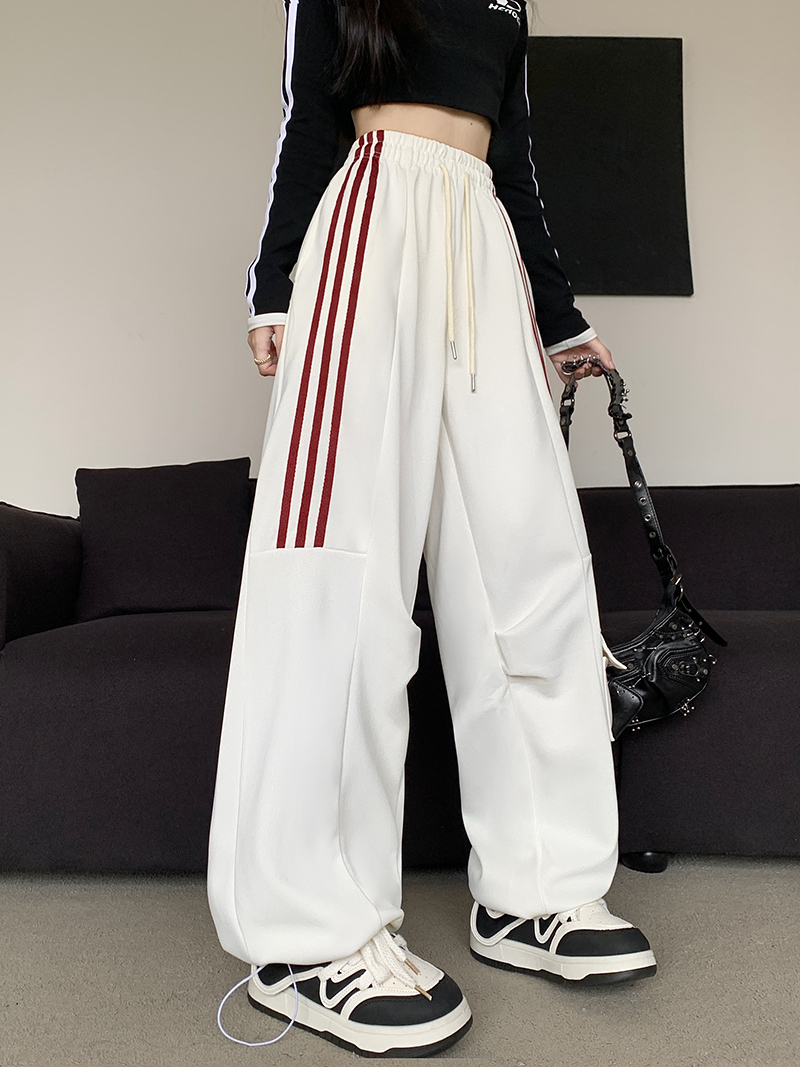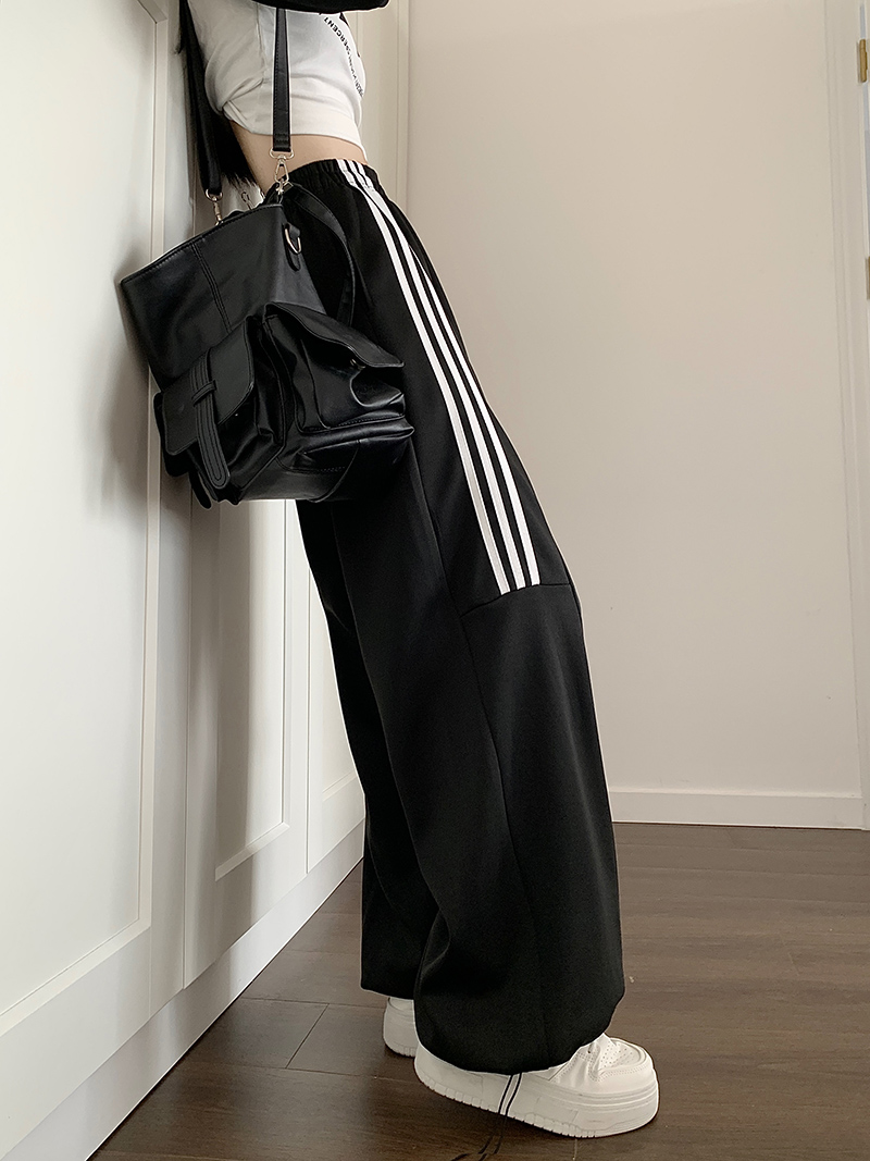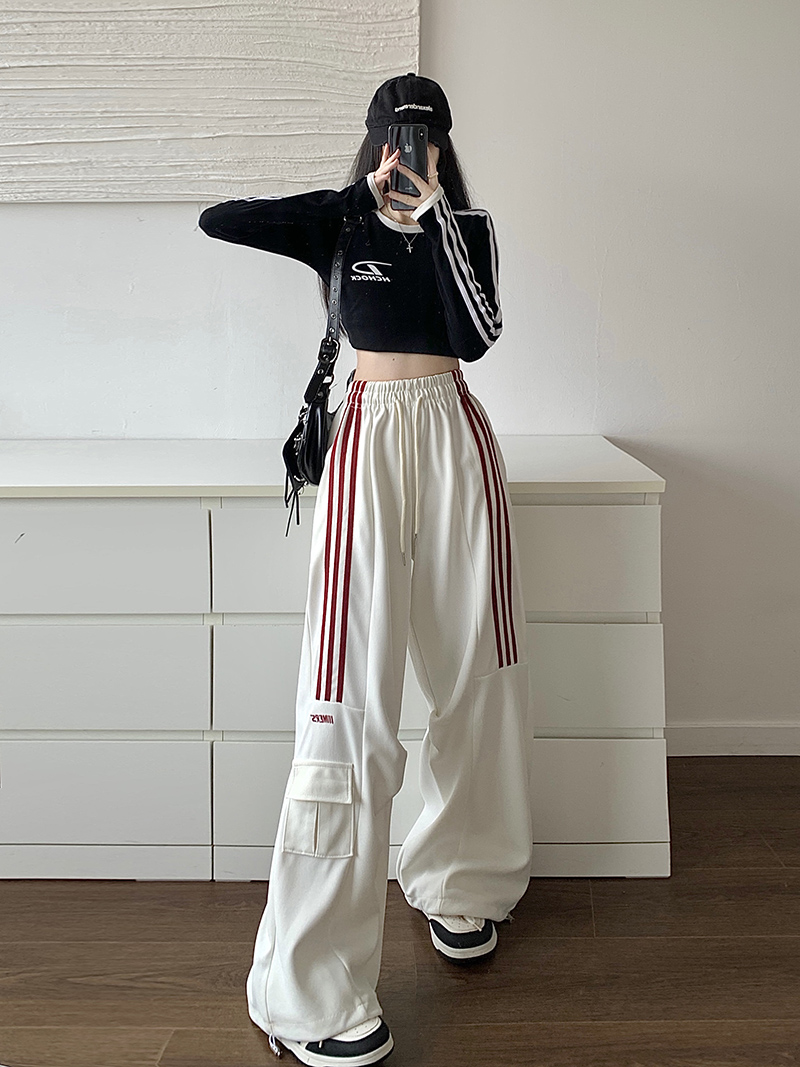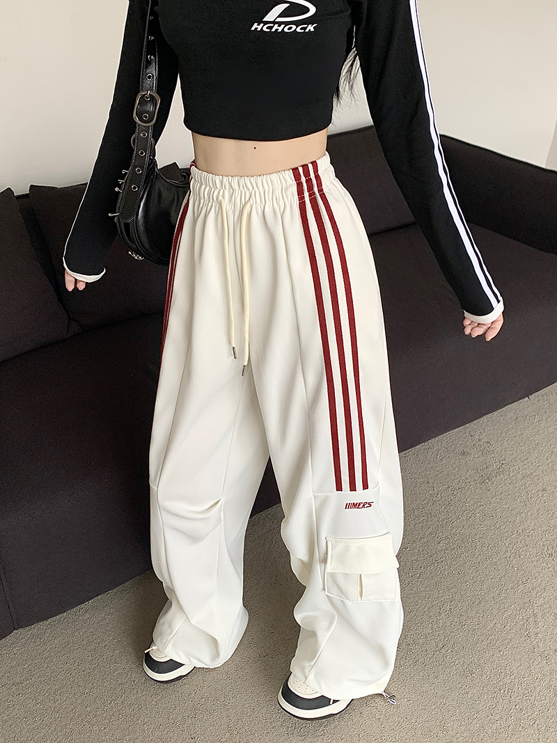 MY14605# 增色 常规/加绒 高街杠条工装裤女休闲运动卫裤宽松阔腿裤子女裝貨源服裝批發